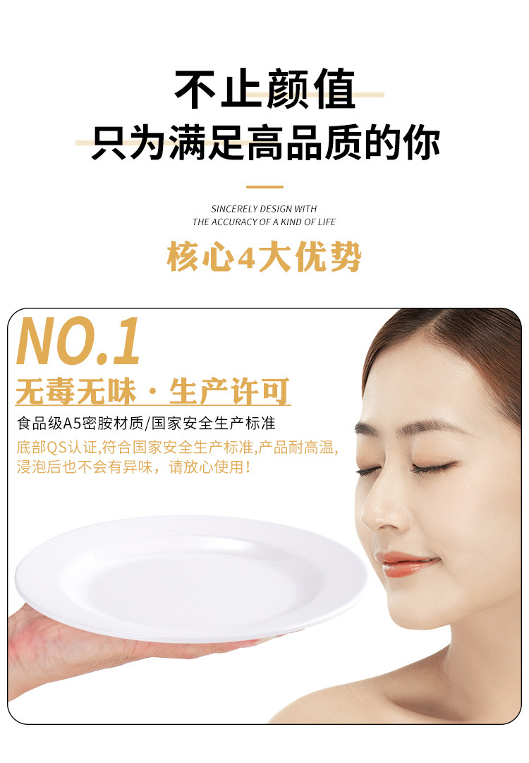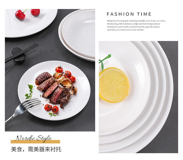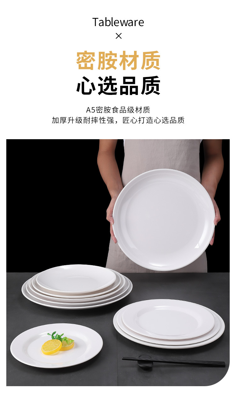 멜라민 식기 화이트 디스크 접시 시판 플라스틱 접시 디너 접시 호텔 접시 딥 플레이트 미용 요리스토어 가기