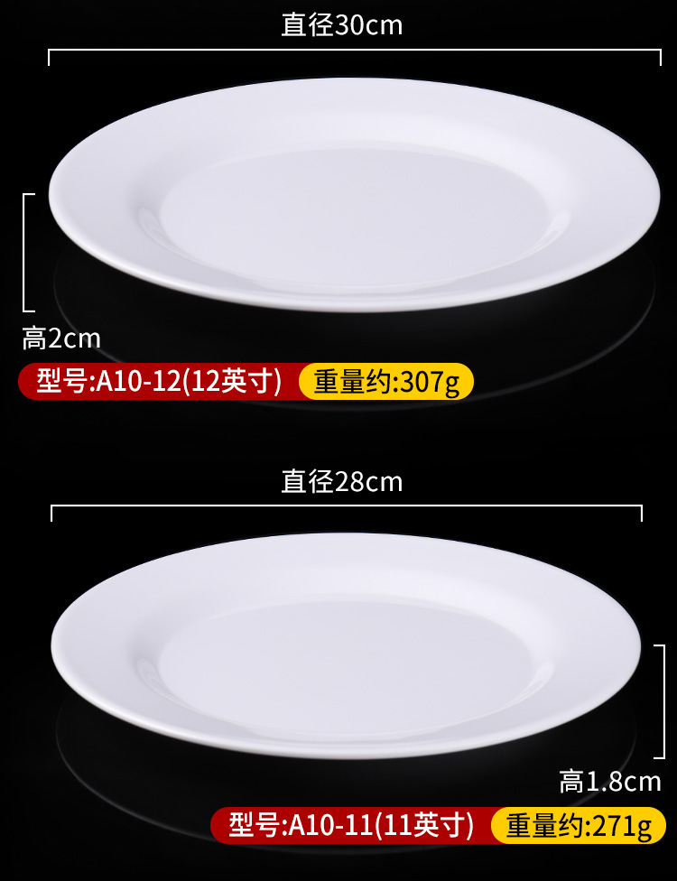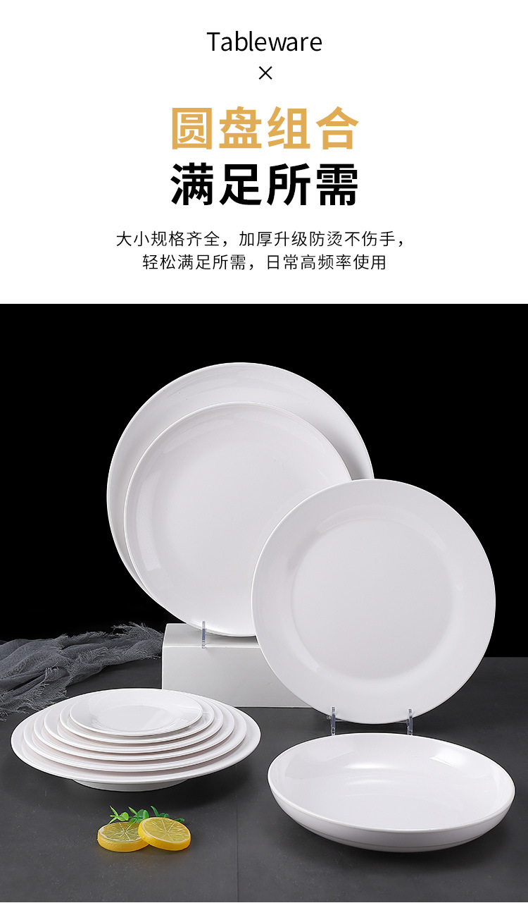 멜라민 식기 화이트 디스크 접시 시판 플라스틱 접시 디너 접시 호텔 접시 딥 플레이트 미용 요리