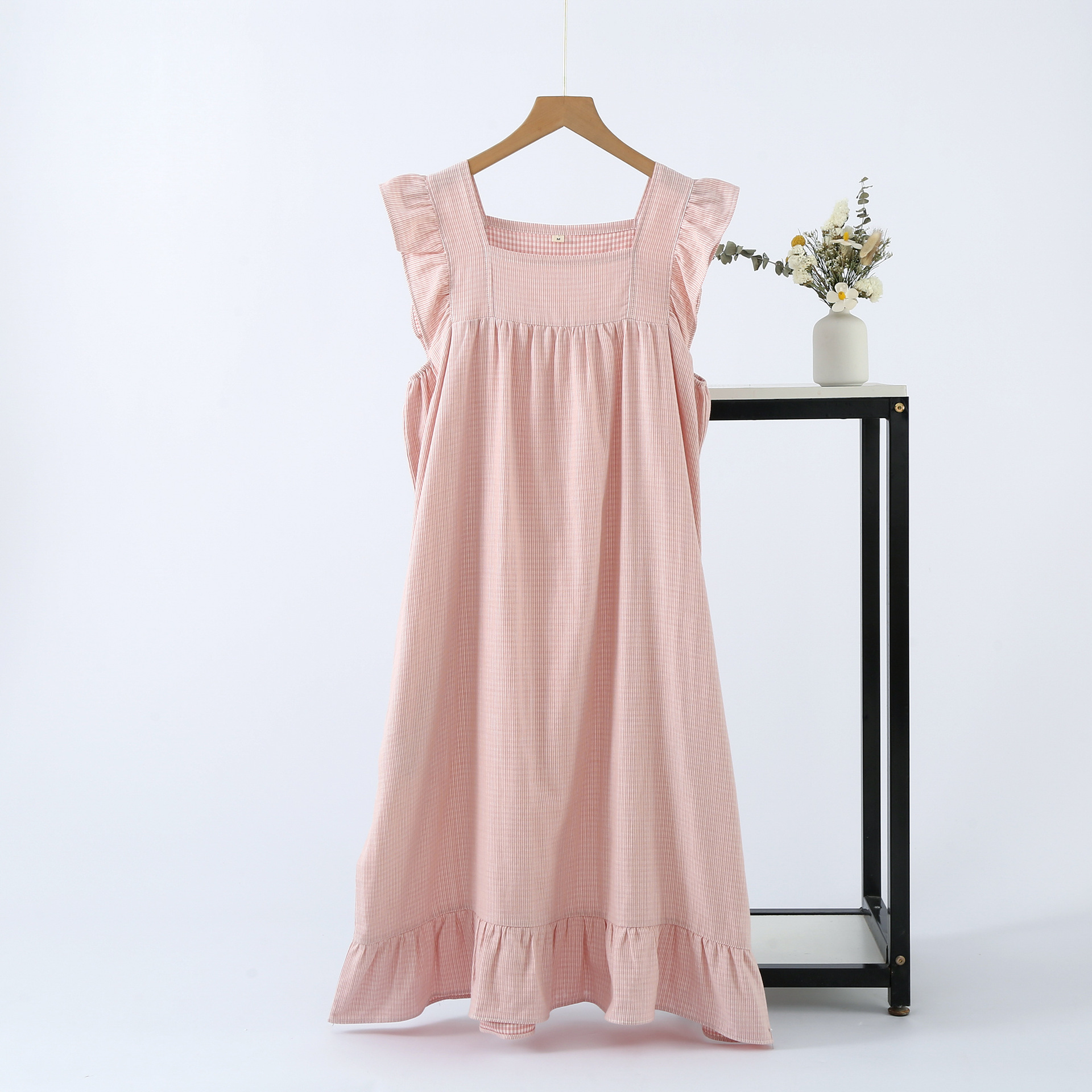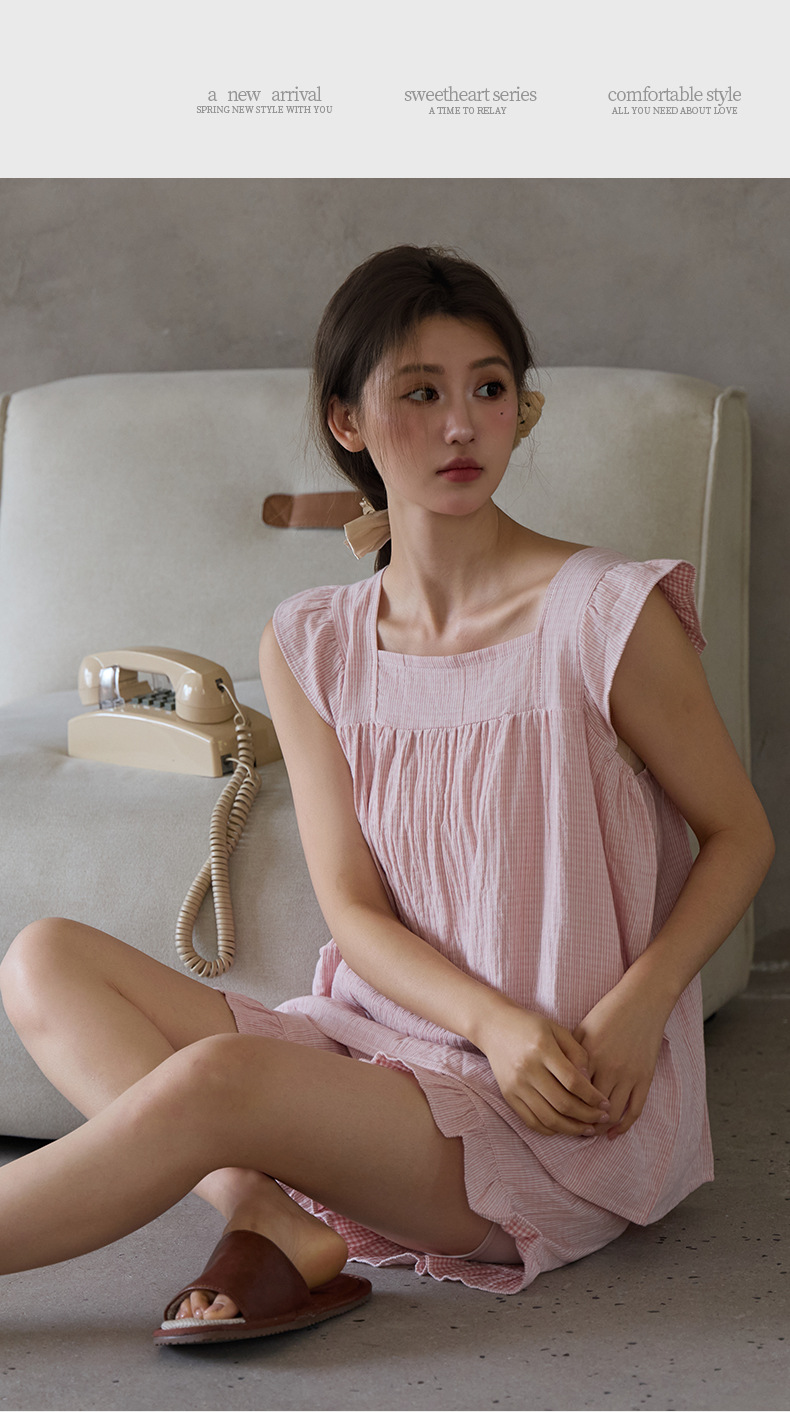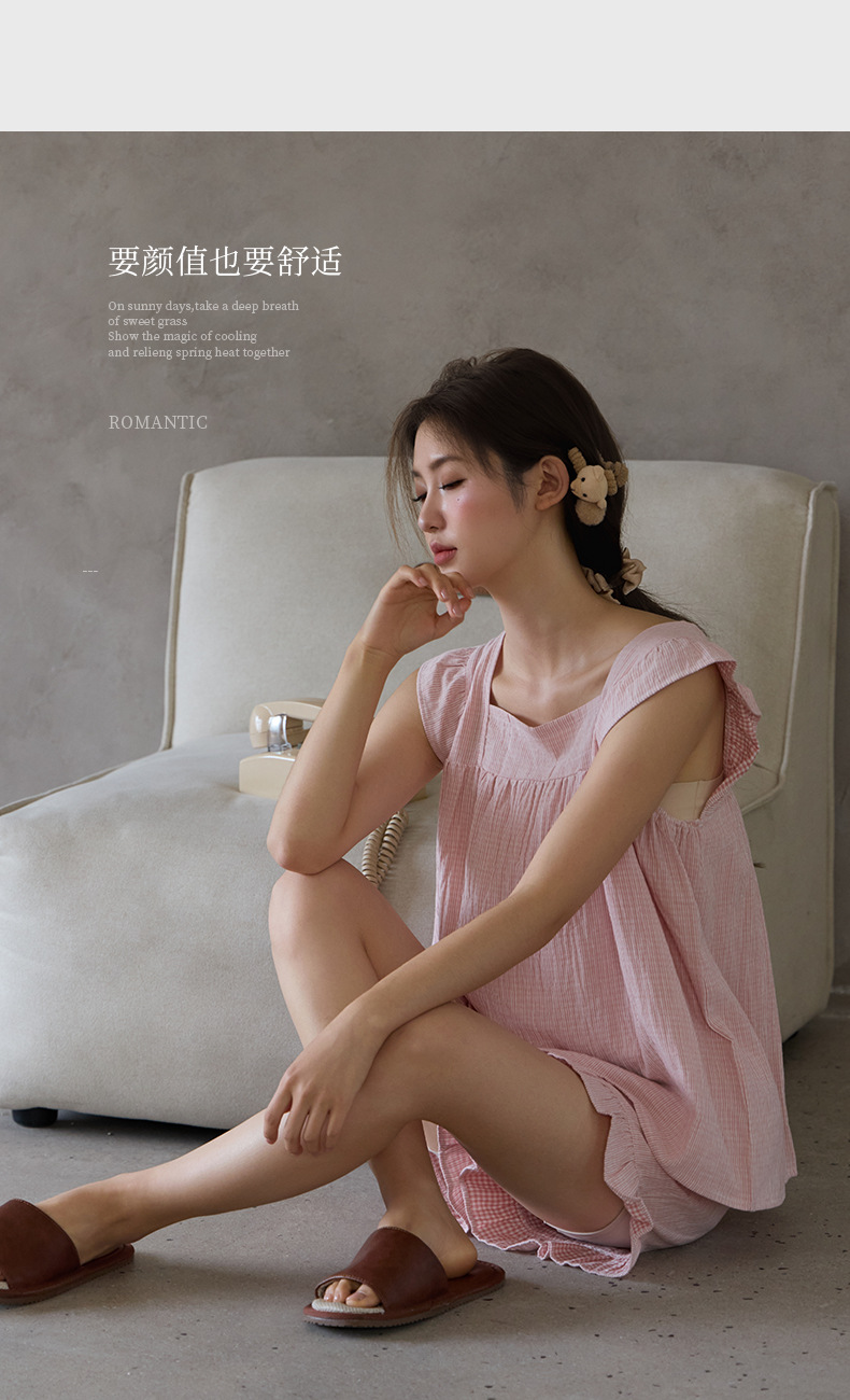 새로운 여름 순면 더블 레이어 거즈 여성용 잠옷 얇은 민소매 조끼 반바지 겉옷 가정복 세트