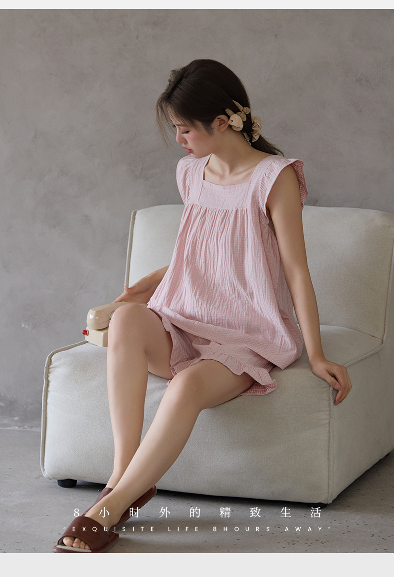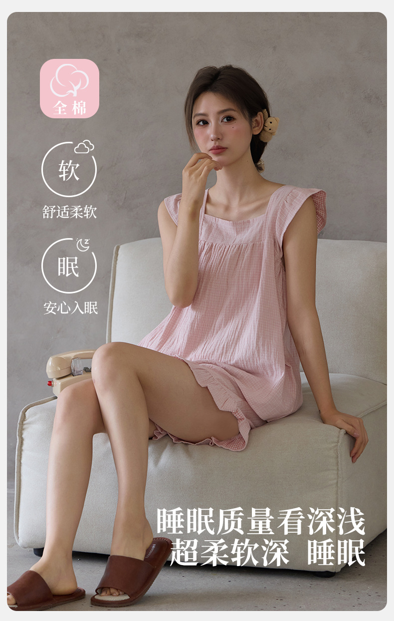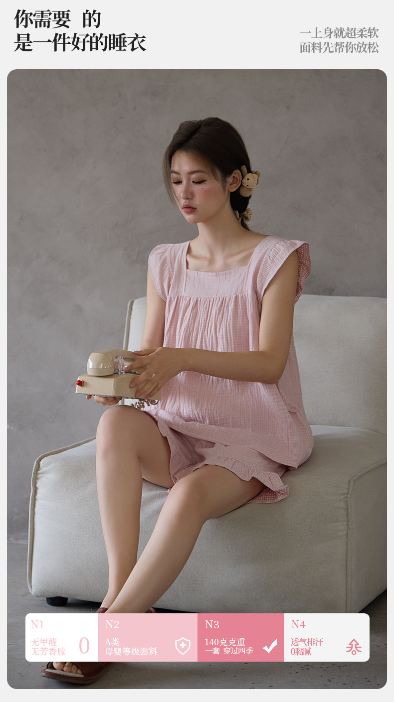 새로운 여름 순면 더블 레이어 거즈 여성용 잠옷 얇은 민소매 조끼 반바지 겉옷 가정복 세트스토어 가기