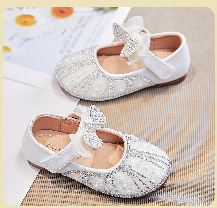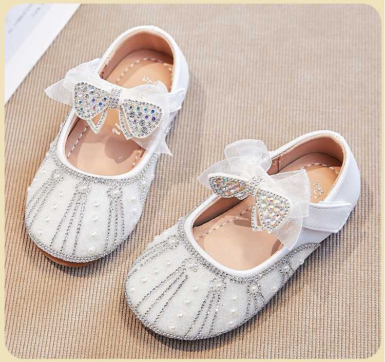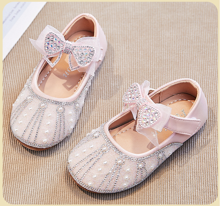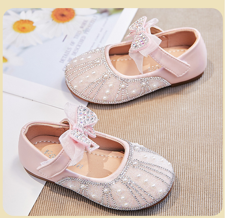 여아용 워터다이아몬드 공연화 2026년 봄 신상 아동용 메쉬 리본 플랫 슈즈 공주풍