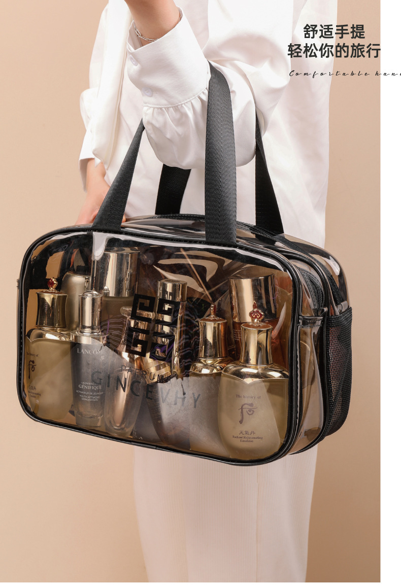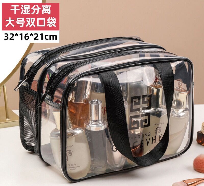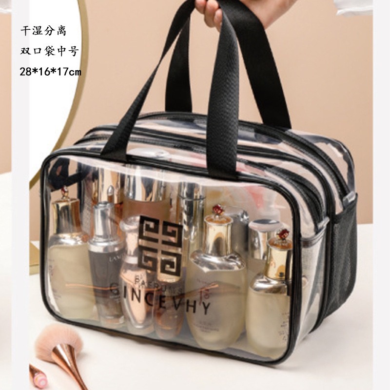 PVC 이중층 건식 및 습식 분리 여행 가방, 휴대용 세면도구 가방, 대용량 방수 투명 화장품 가방, 여행용 수납 가방스토어 가기