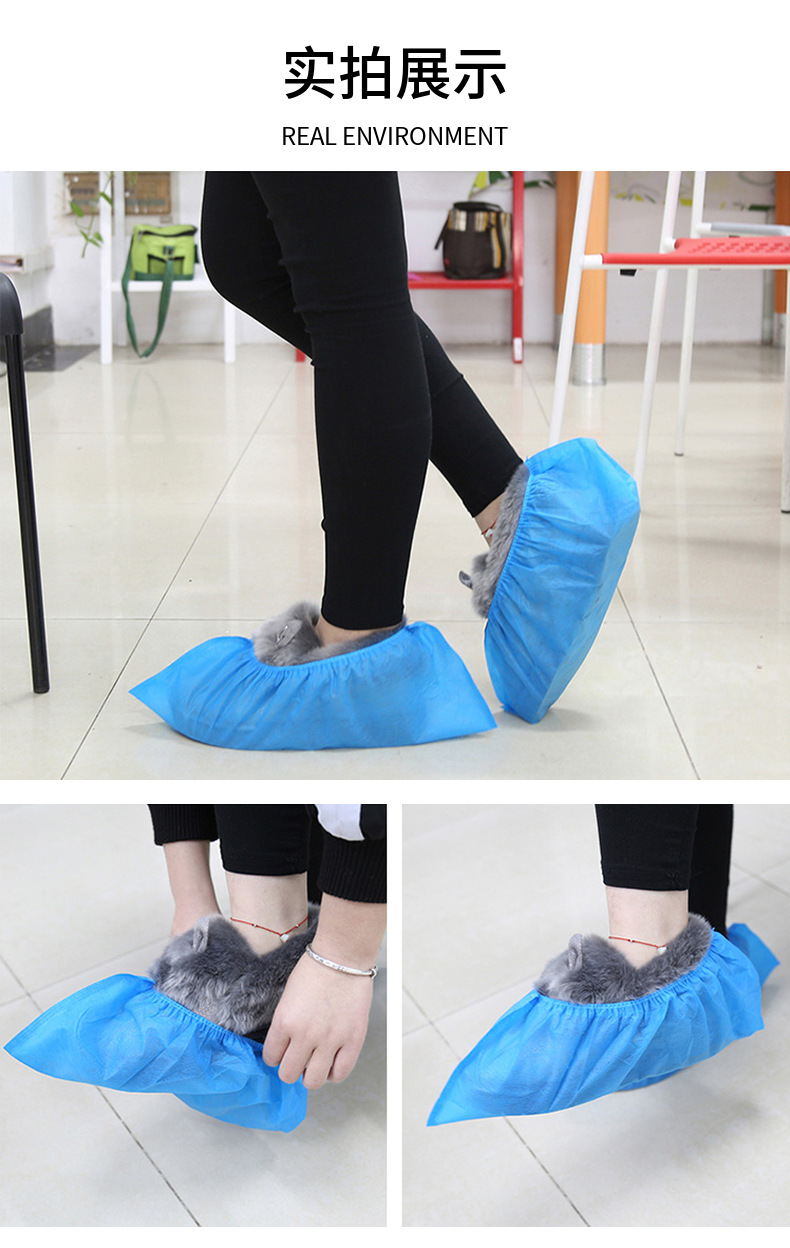 일회용 부직포 신발 커버, 실내용, 두꺼운, 내마모성, 방진, 통기성, 미끄럼 방지, 공장, 식품 작업장, 가정용