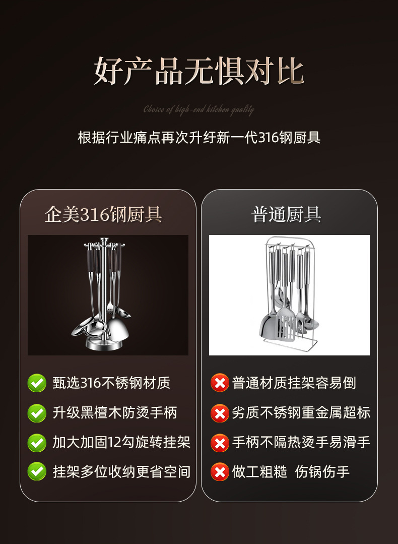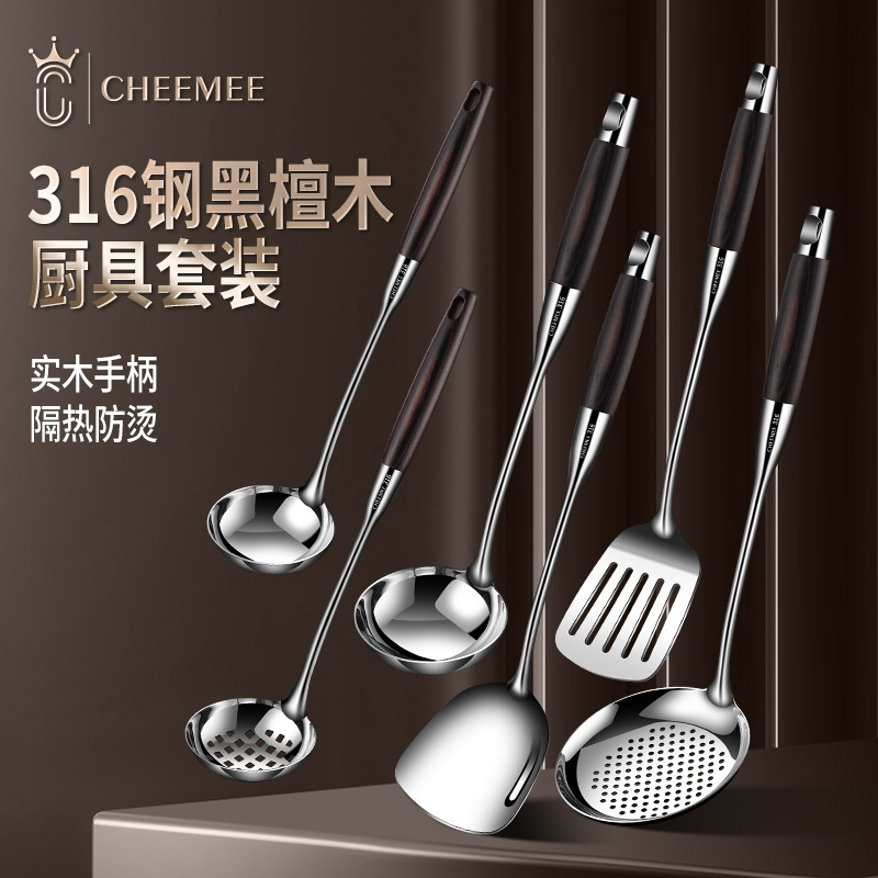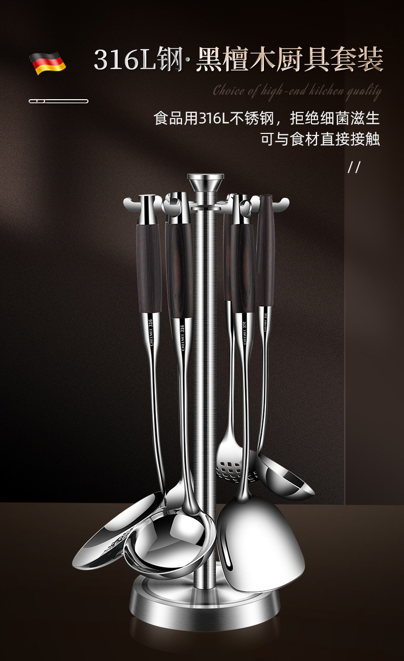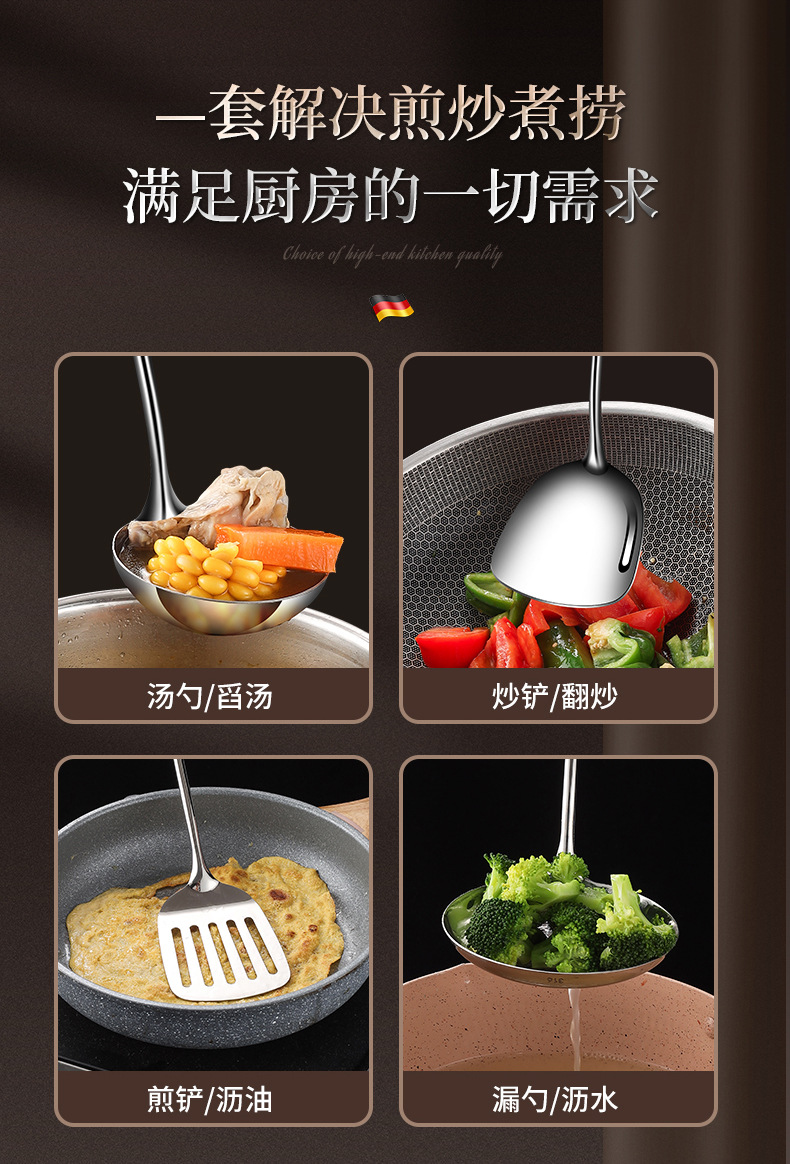 316 스테인레스 스틸 주걱 수프 스푼 세트 가정용 주방 요리 도구 가벼운 고급 조리기구 7 개 세트 주방 용품스토어 가기