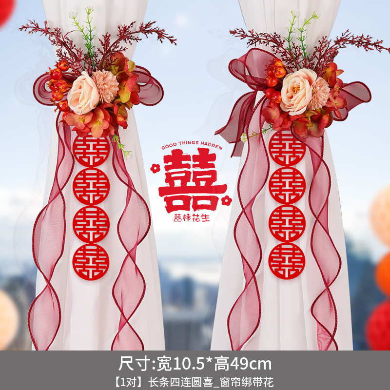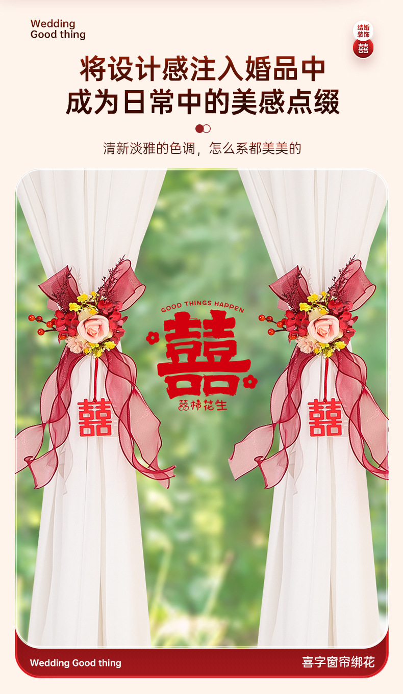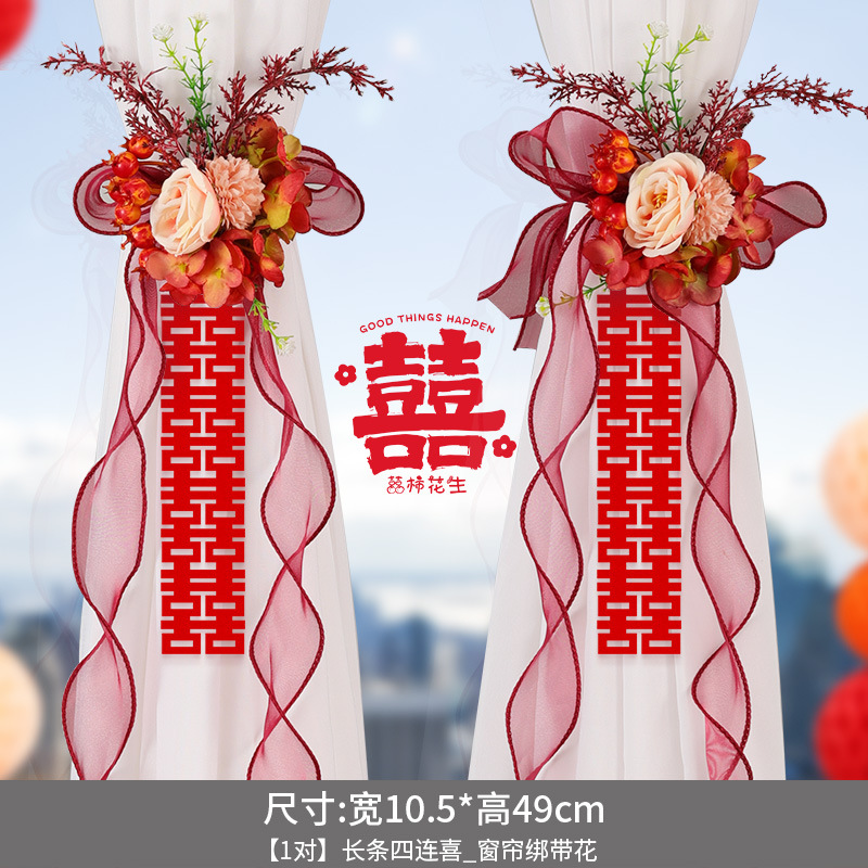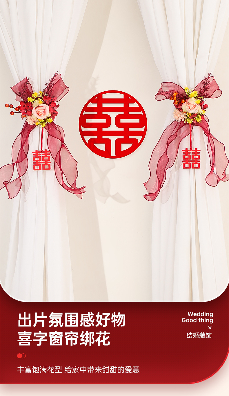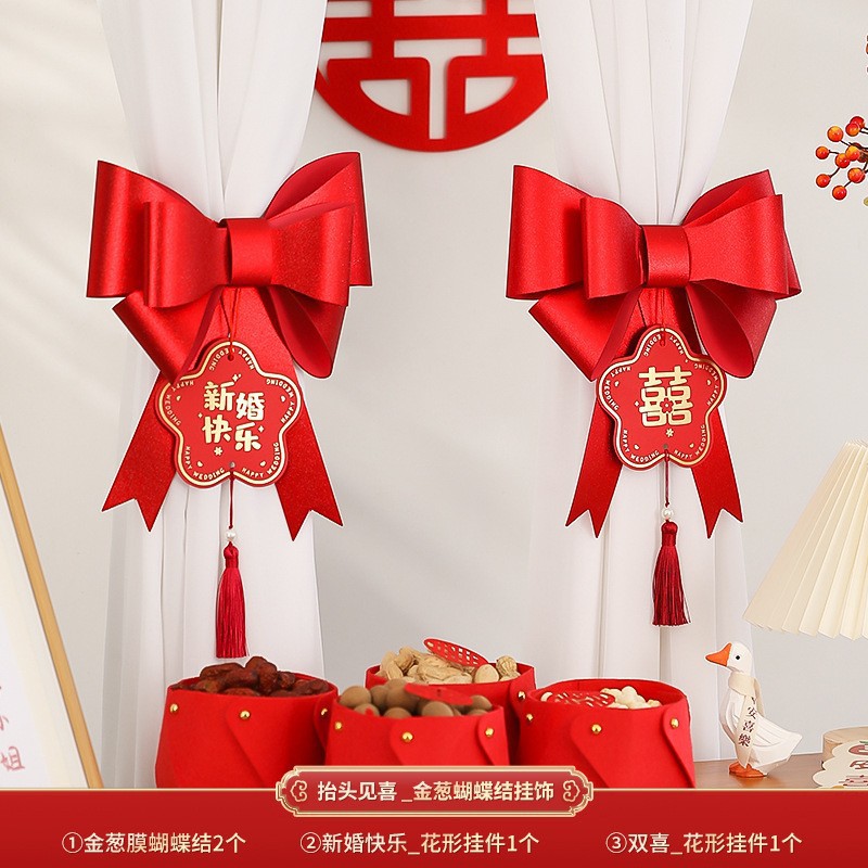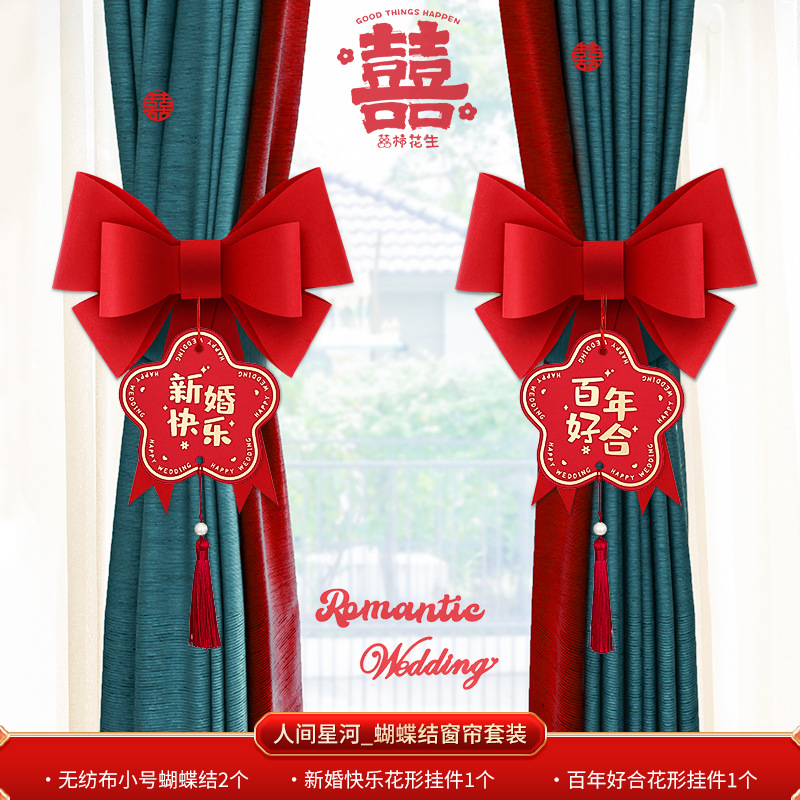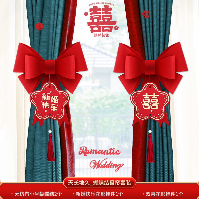 尚米特结婚新房窗帘喜字绑带婚房卧室客厅蝴蝶结装饰布置备婚