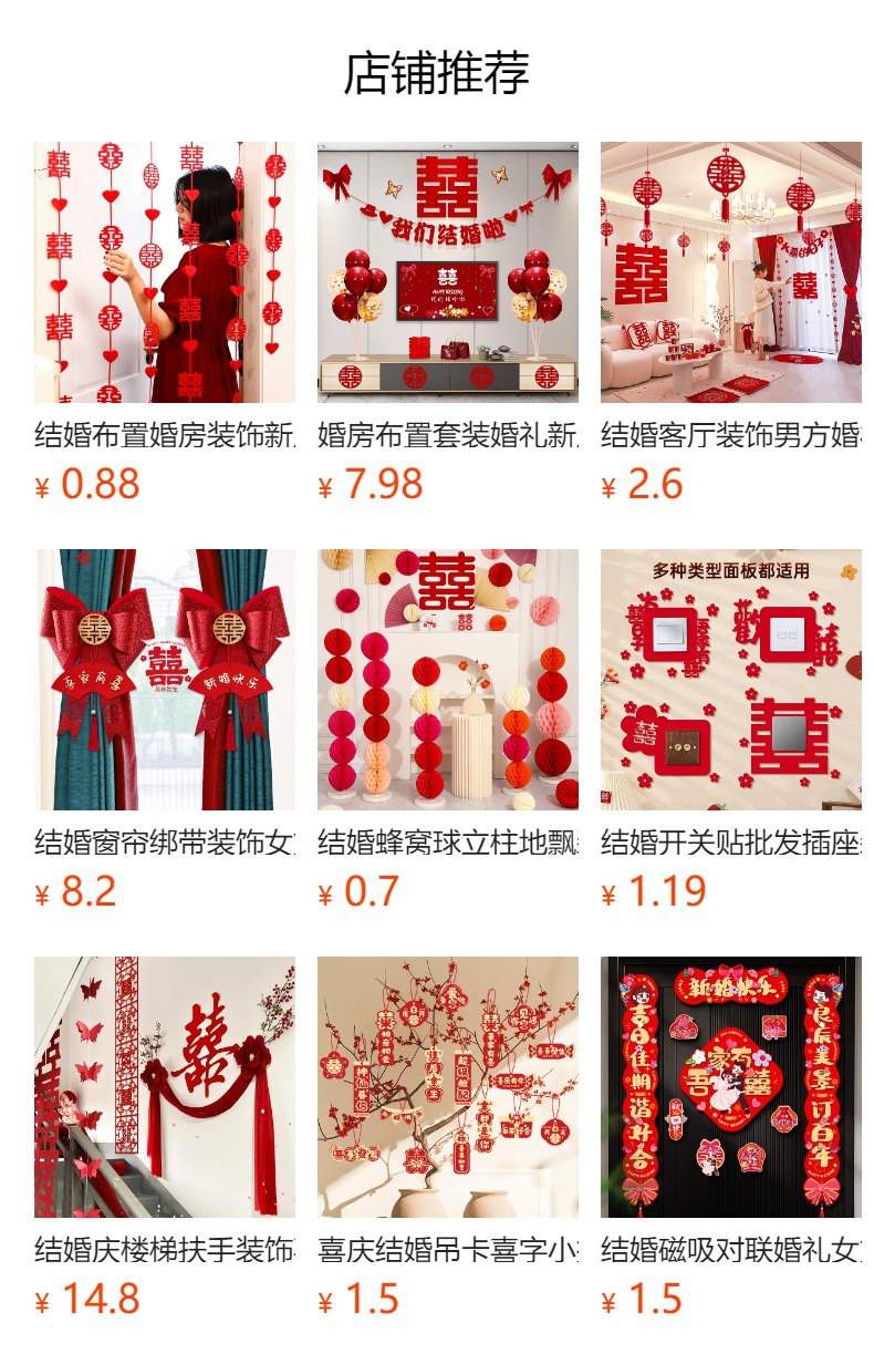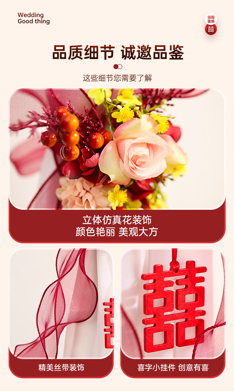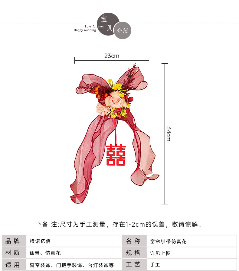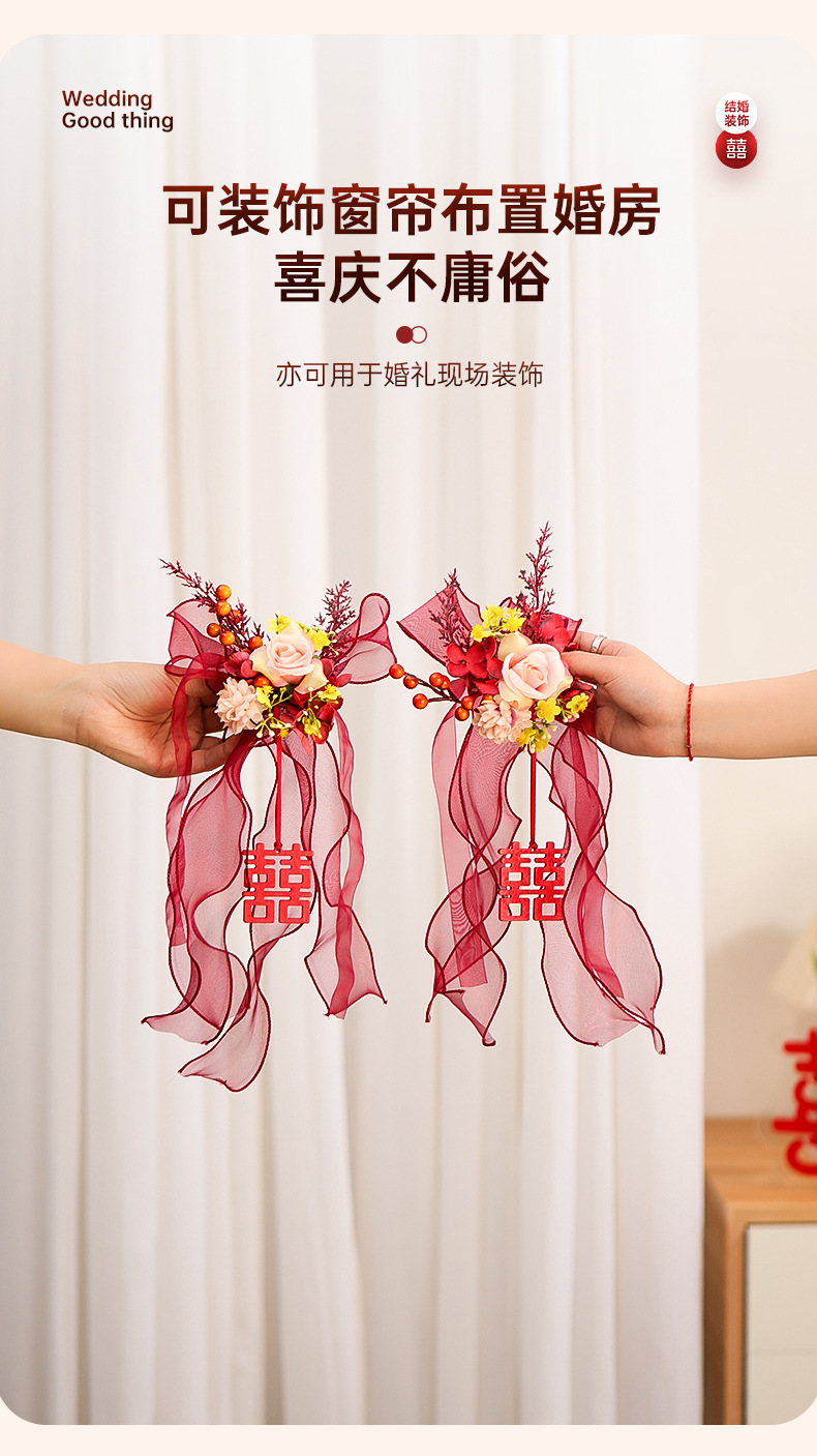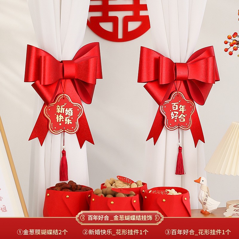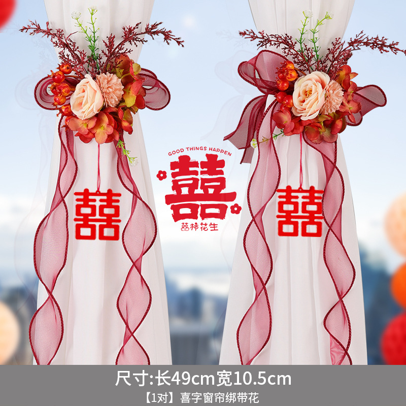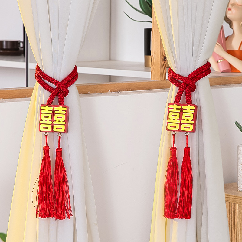 尚米特结婚新房窗帘喜字绑带婚房卧室客厅蝴蝶结装饰布置备婚