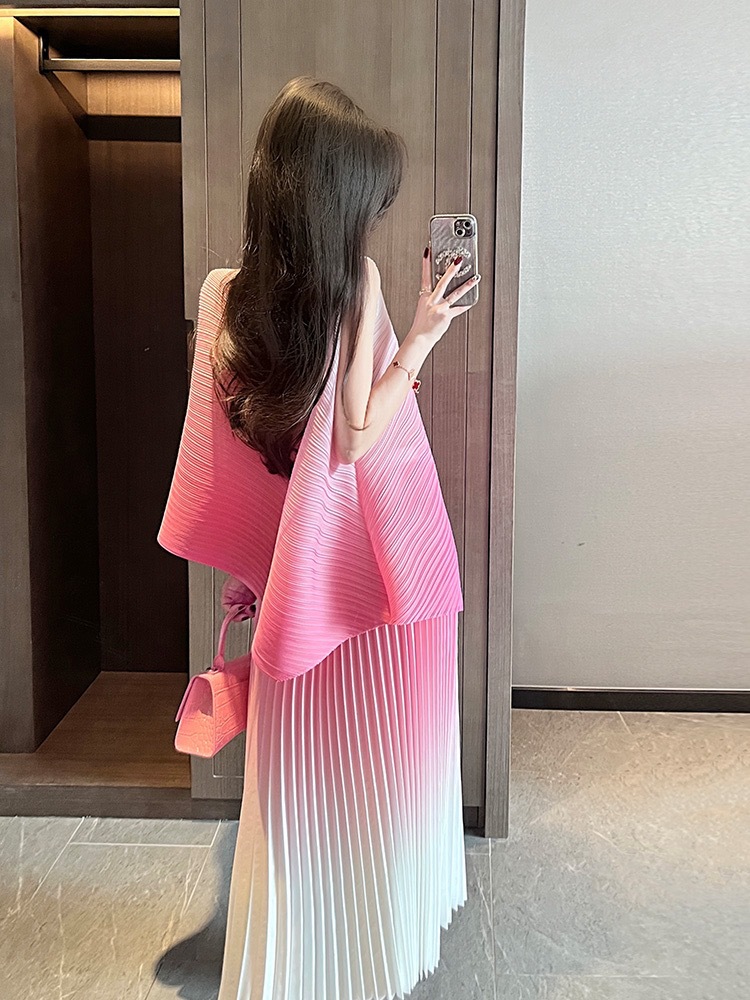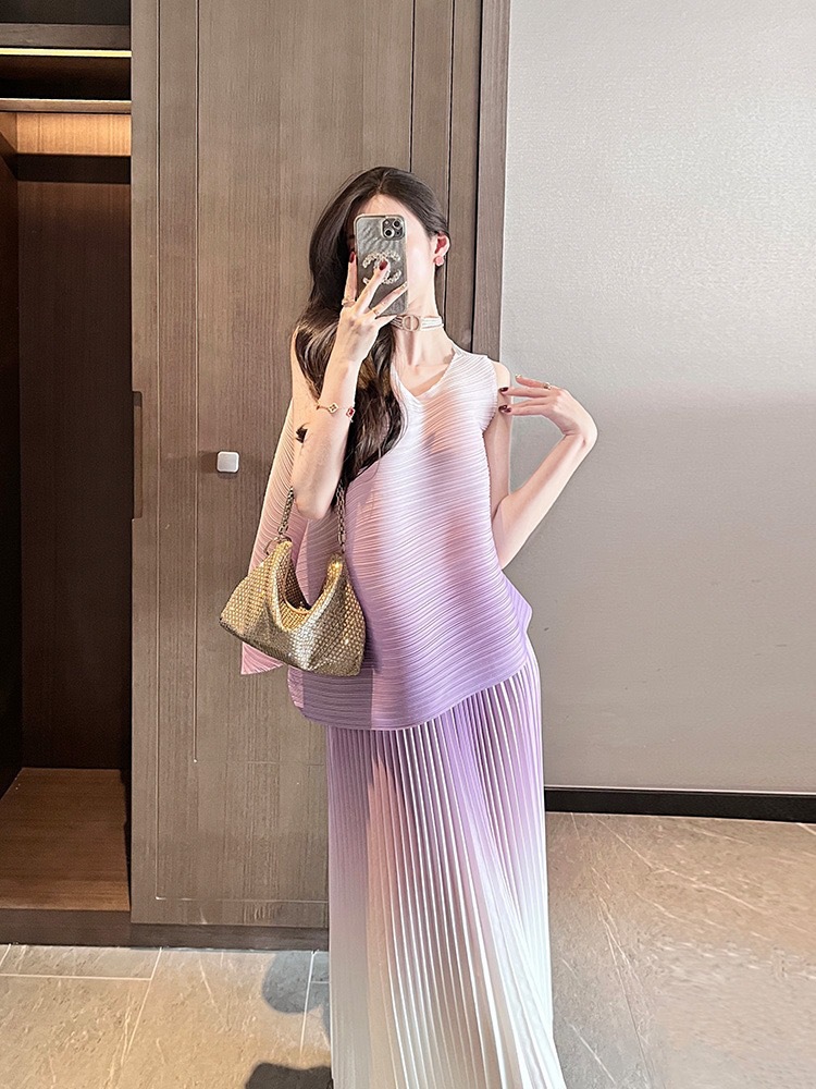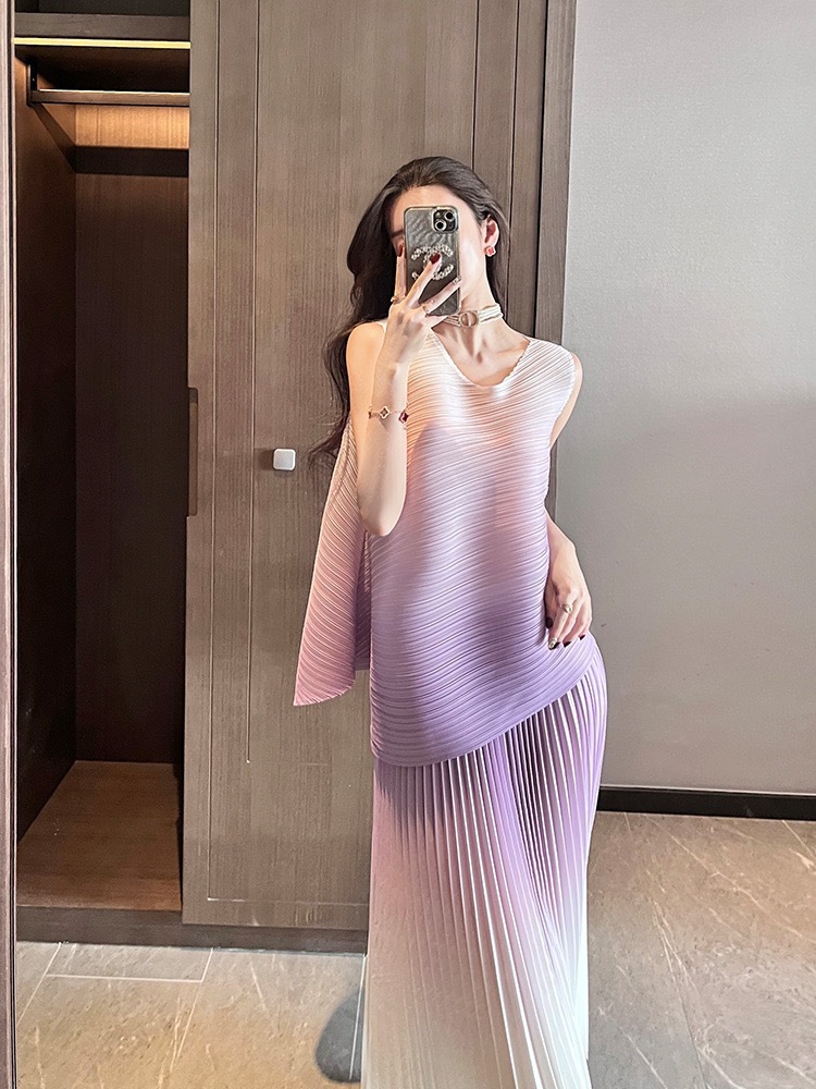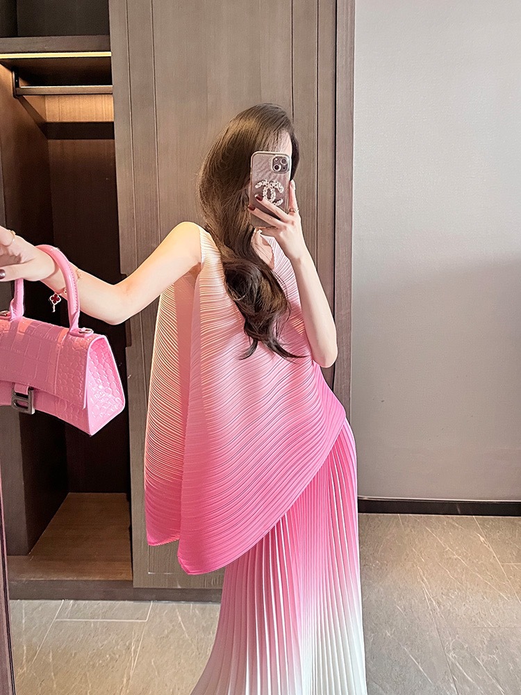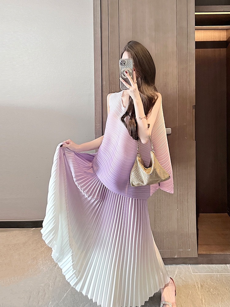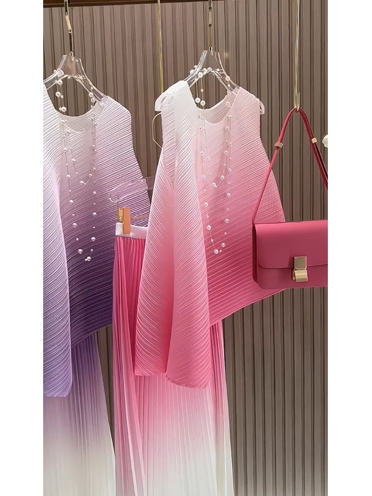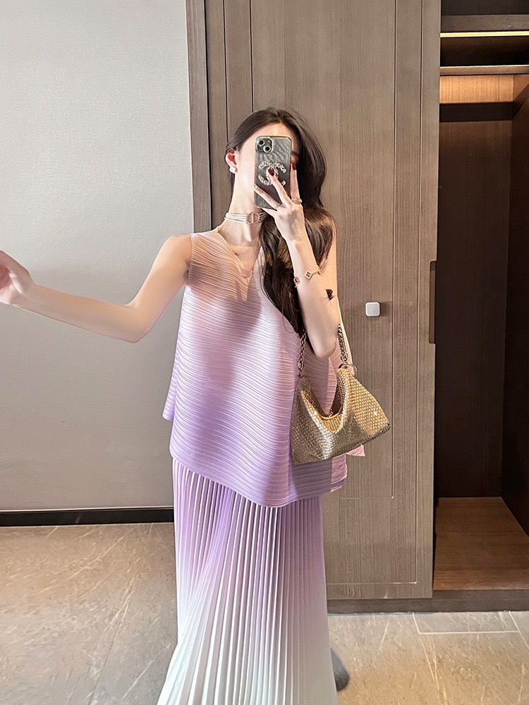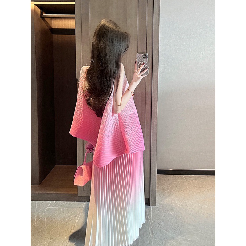 미야케 패션 플리츠 스타일의 여성용 페어리 슈트 드레스, 2026년 여름 신상 심플 스커트 투피스 세트