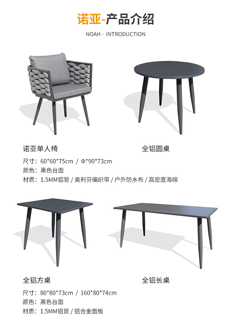 • 노아 의자 4개 + 160*80cm 올알루미늄 롱 테이블 디럭스 버전