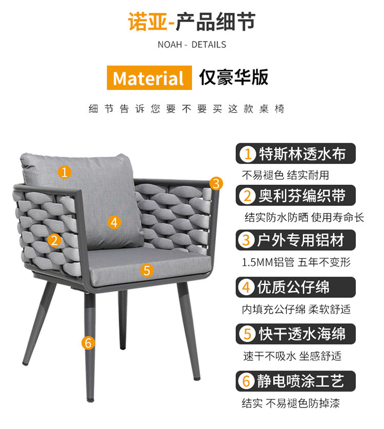 • 노아 의자 6개 + 160*80cm 올알루미늄 롱 테이블 디럭스 버전