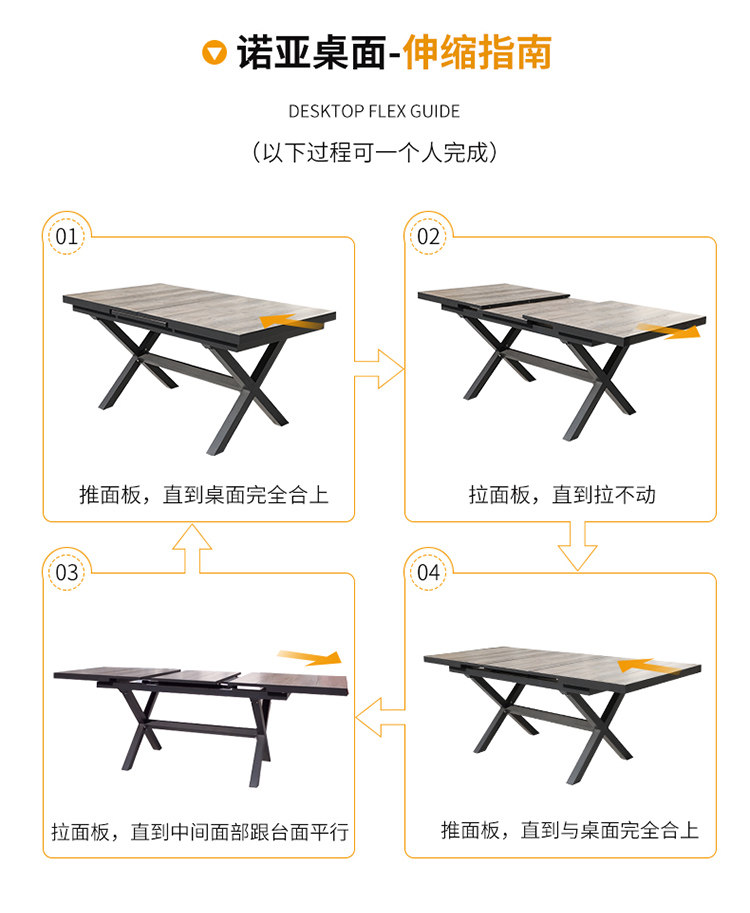 • 노아 8인용 의자 + 160/210*90cm 길쭉한 테이블 디럭스 버전