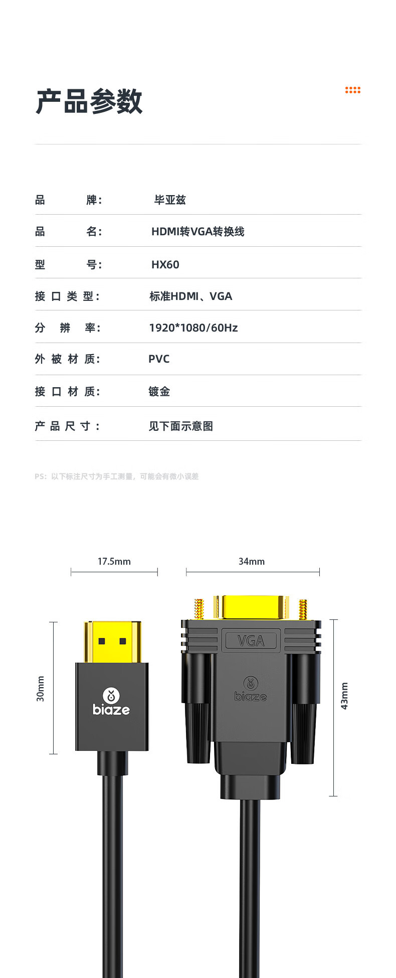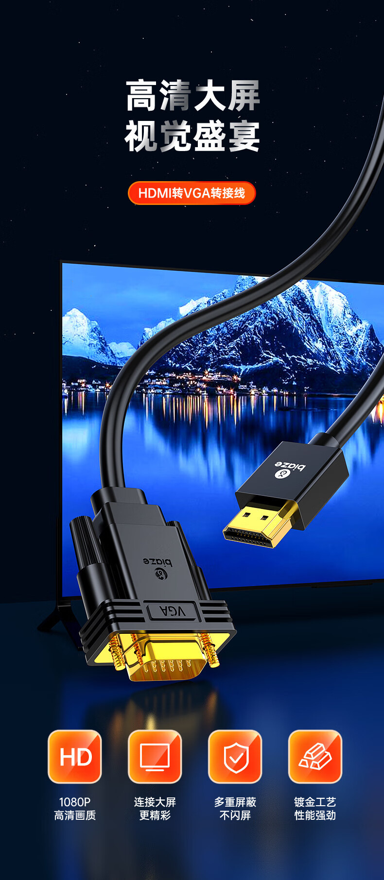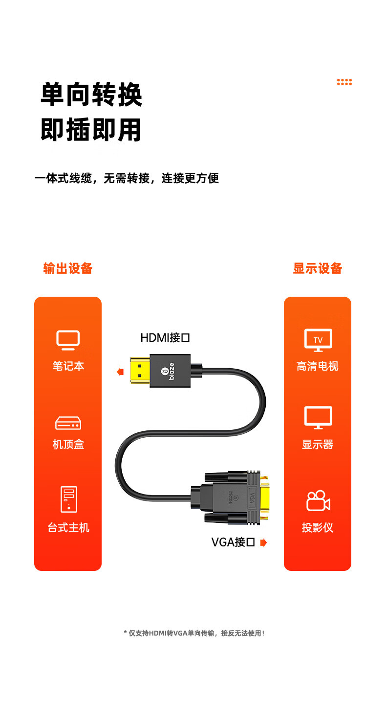 비아즈 HDMI-VGA 변환 케이블 컴퓨터 TV 모니터 연결 변환기 HX60 고화질 변환