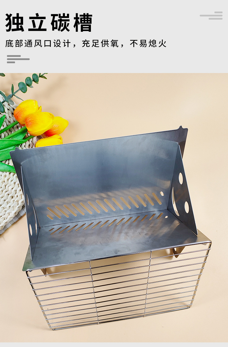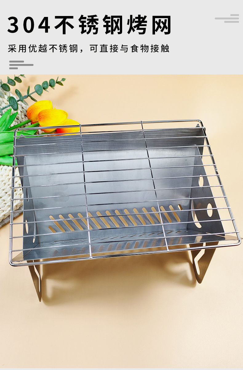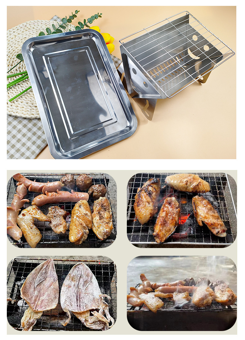 스테인레스 스틸 야외 휴대용 접이식 304 바베큐 오븐 이동식 바베큐 그릴 가정용 숯 둘러싸인 차 그릴