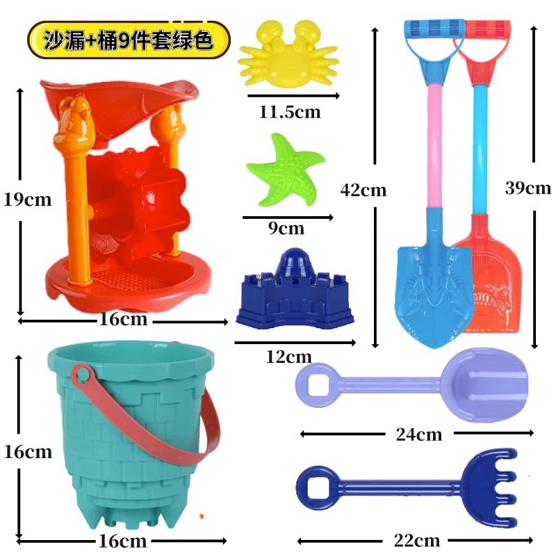 • 모래 시계 + 배럴 9 개 세트 녹색