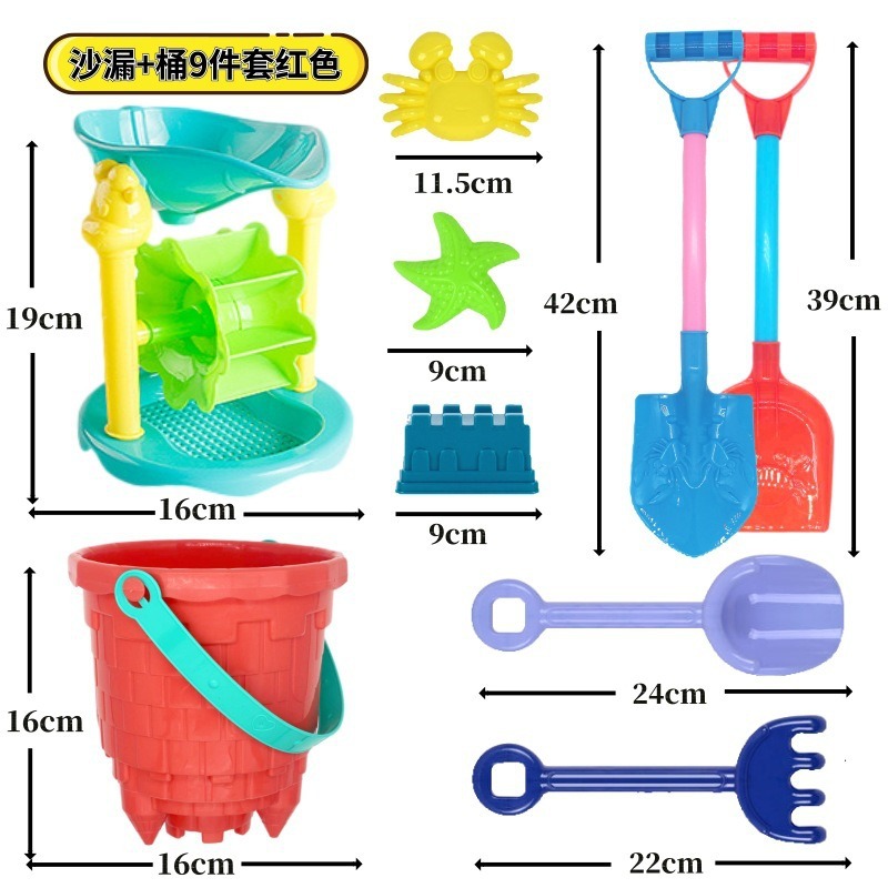 • 모래 시계 + 배럴 9 피스 세트 레드