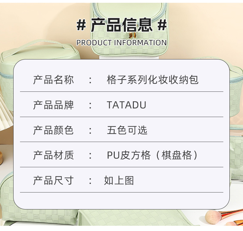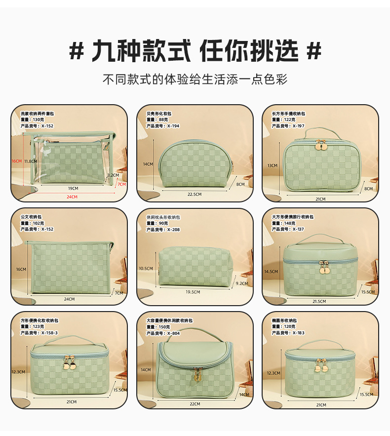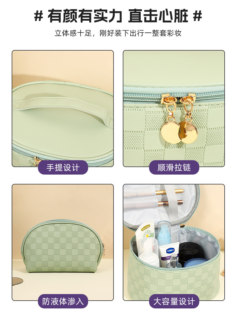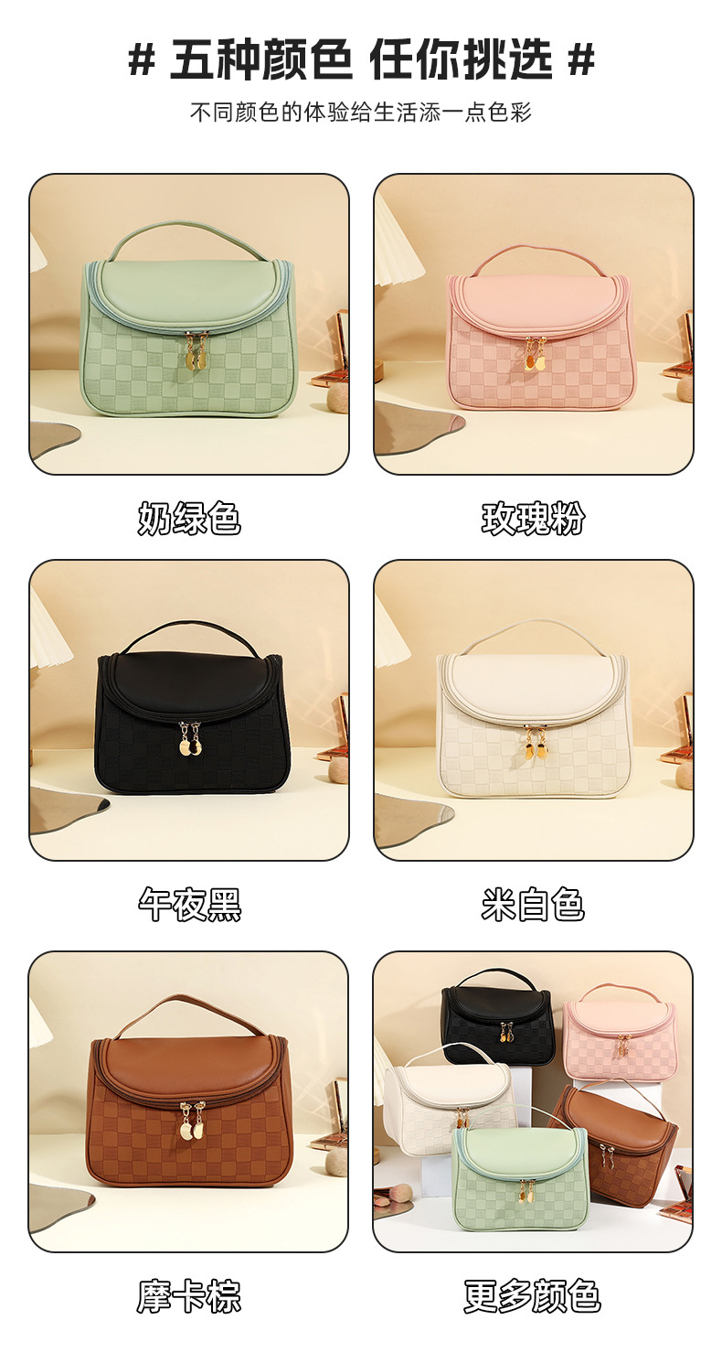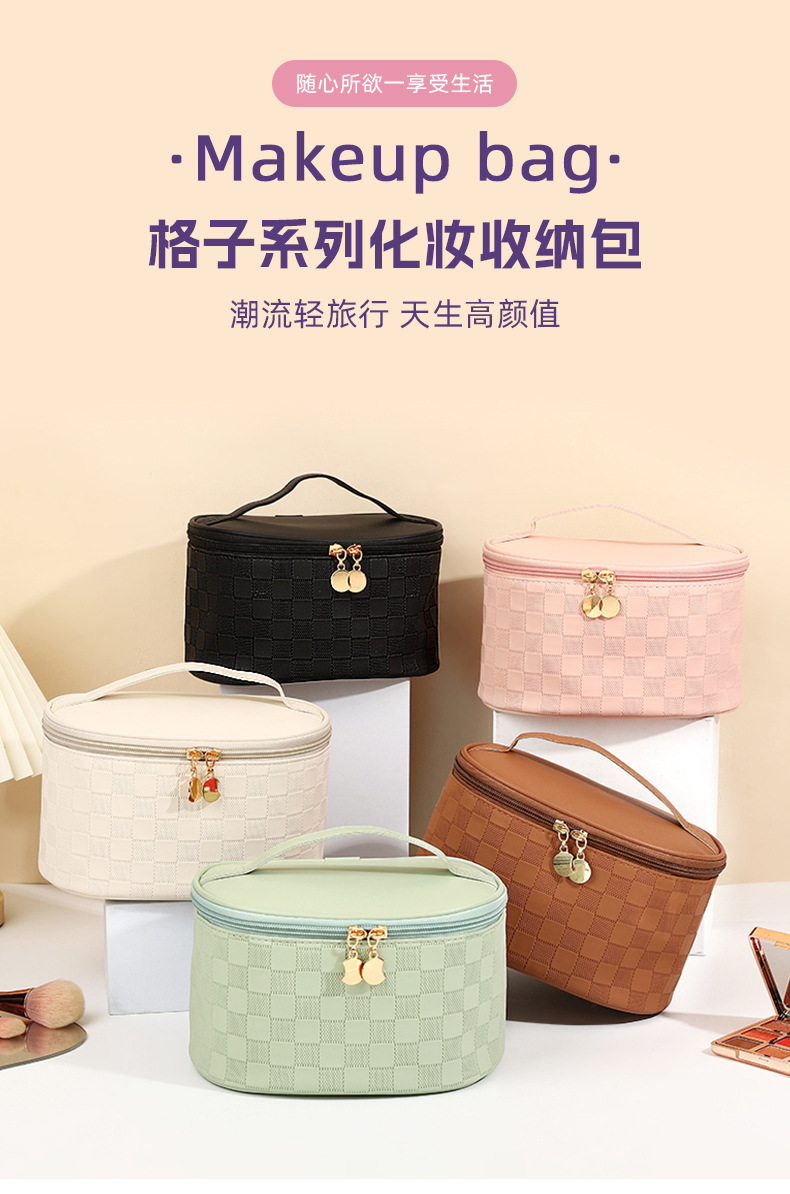 심플한 체커보드 무늬 화장품 가방 여성용 고급 대용량 수납 가방 방수 휴대용 여행 세면도구 가방스토어 가기