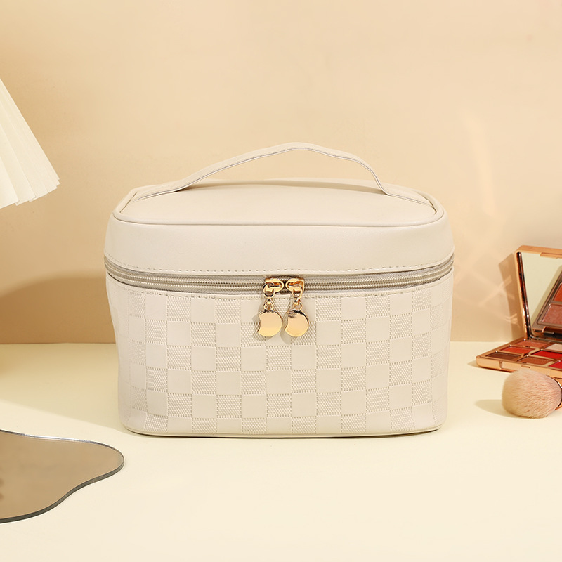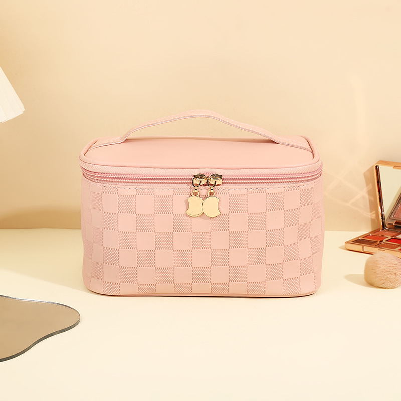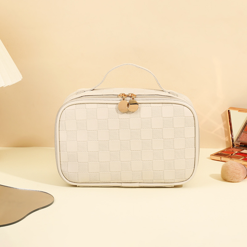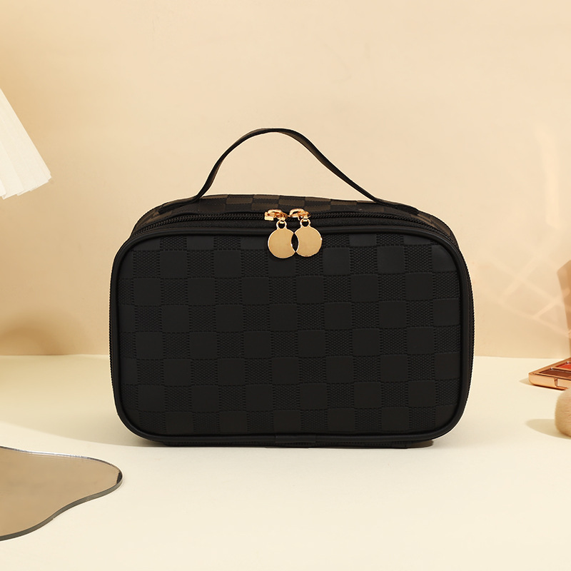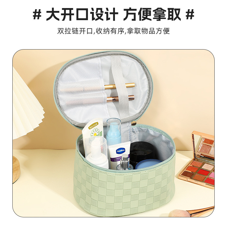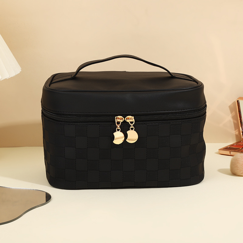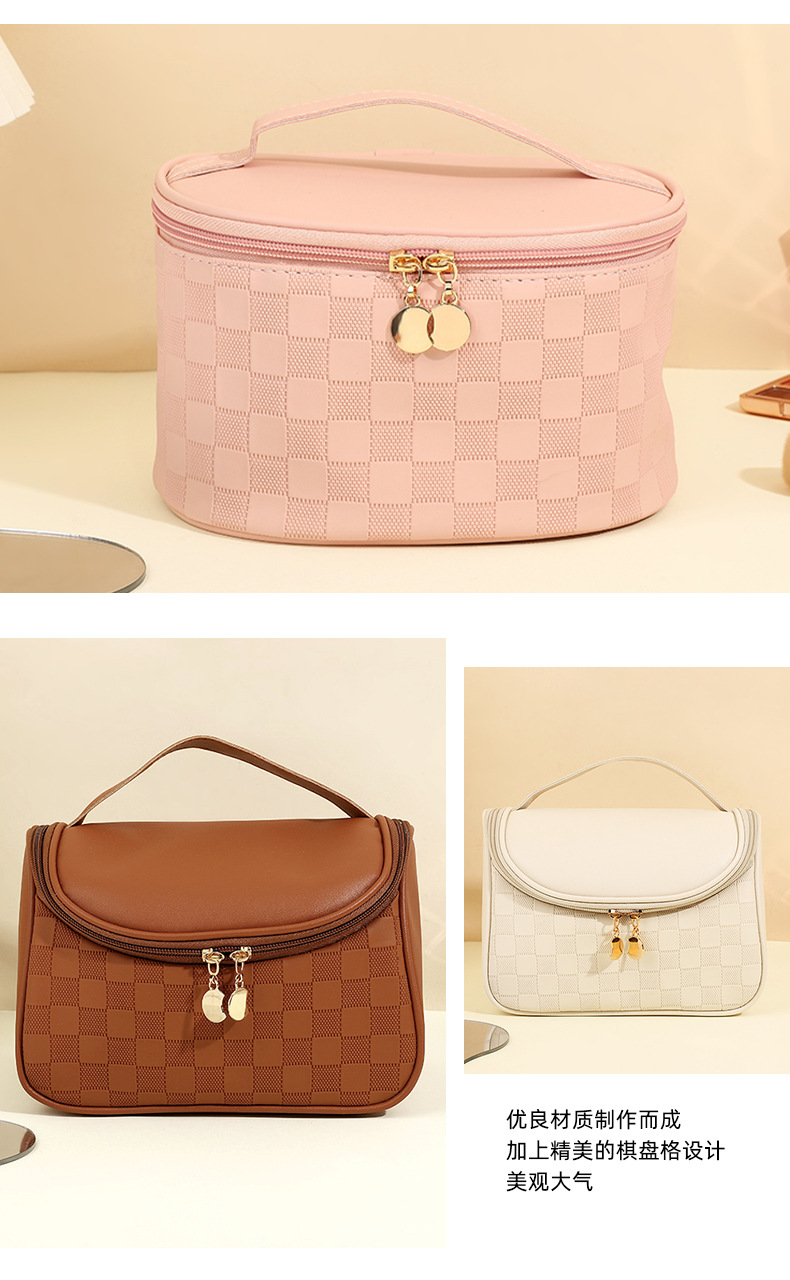 심플한 체커보드 무늬 화장품 가방 여성용 고급 대용량 수납 가방 방수 휴대용 여행 세면도구 가방