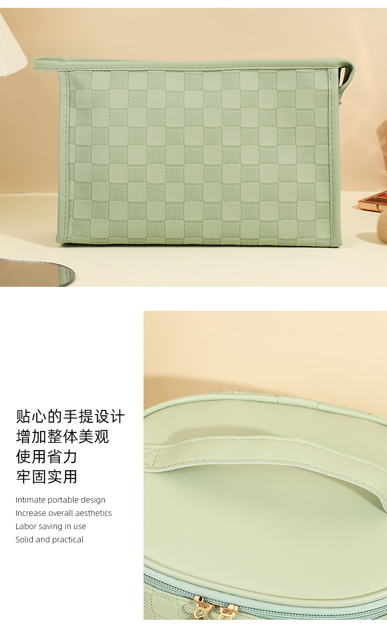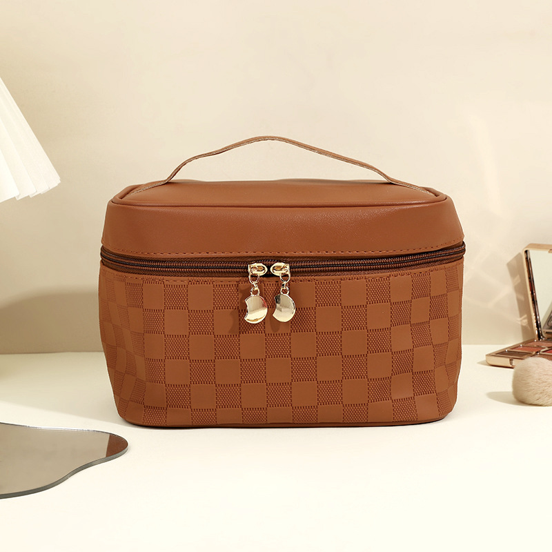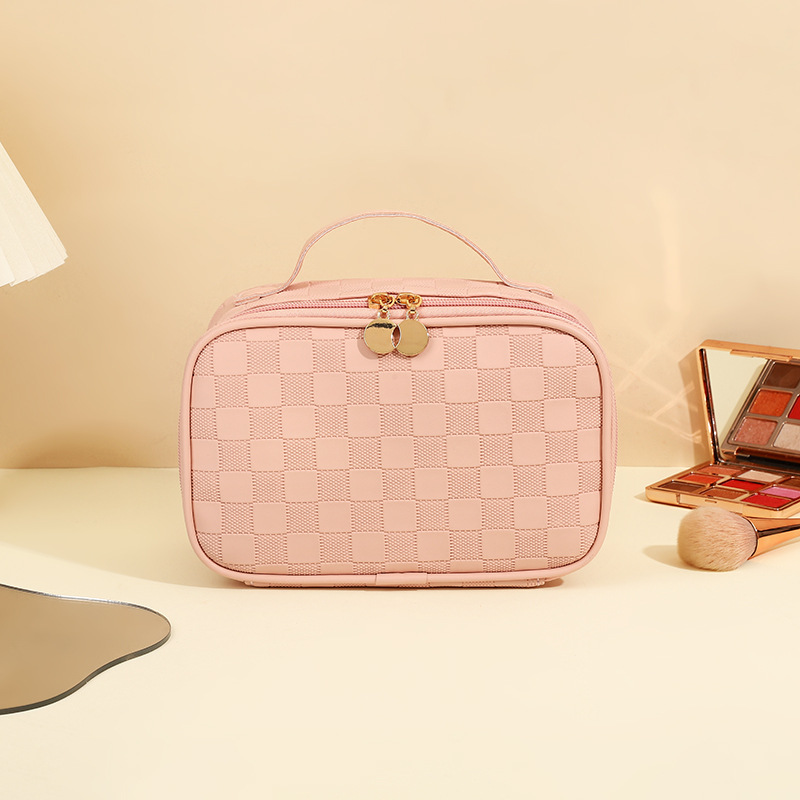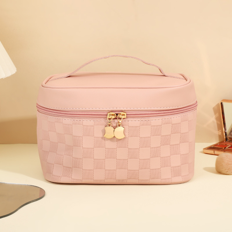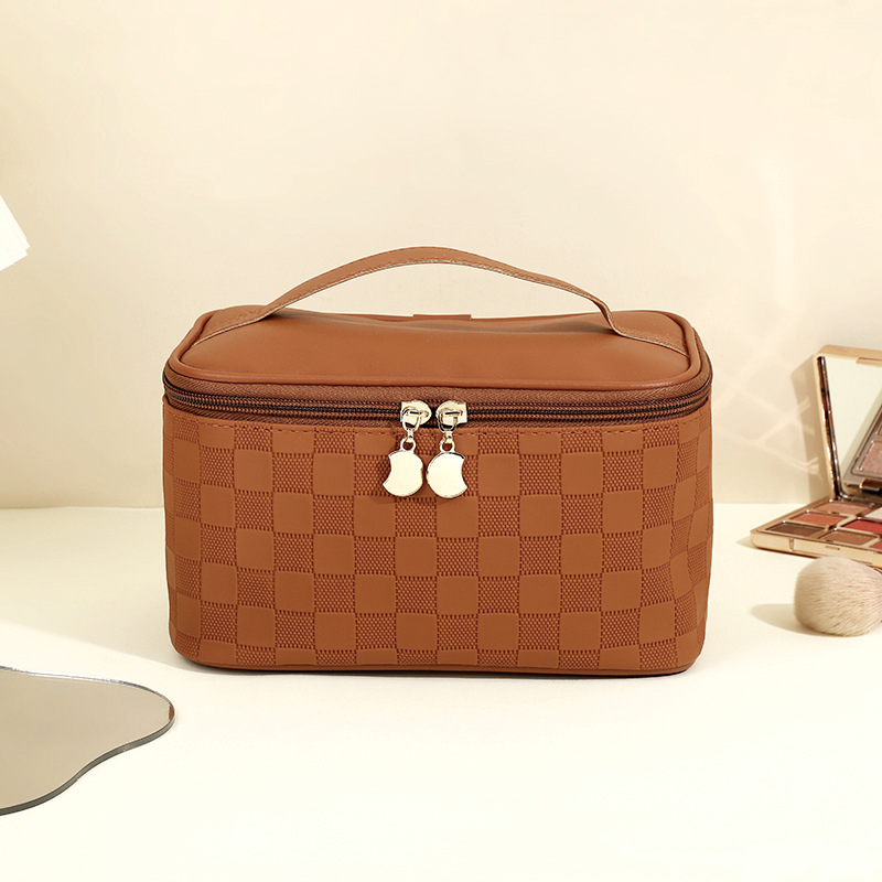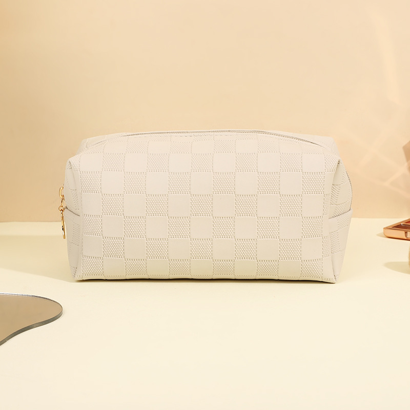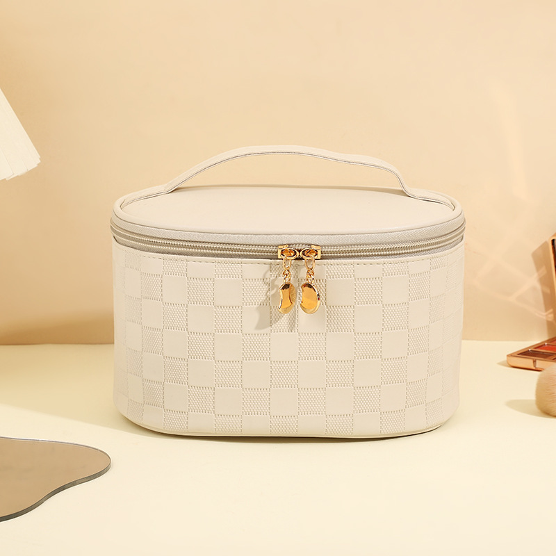 심플한 체커보드 무늬 화장품 가방 여성용 고급 대용량 수납 가방 방수 휴대용 여행 세면도구 가방