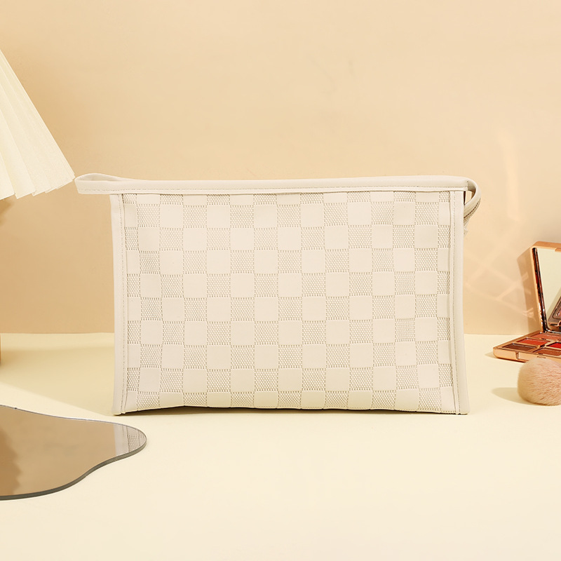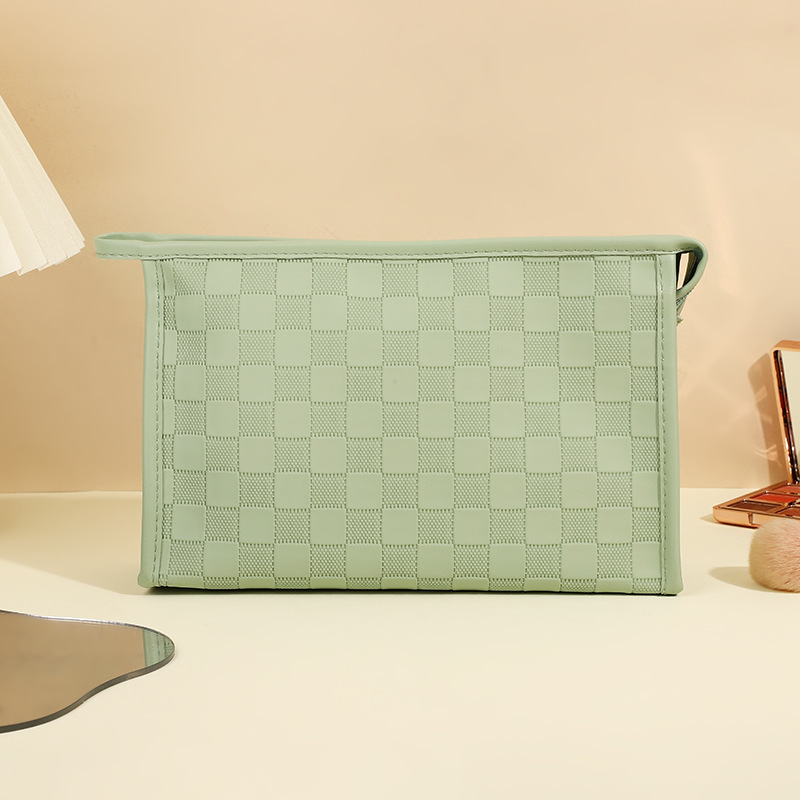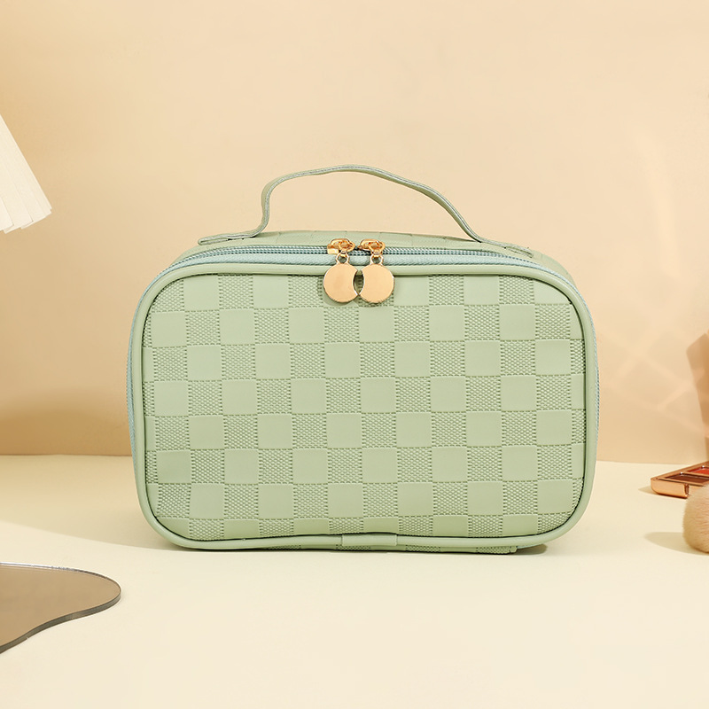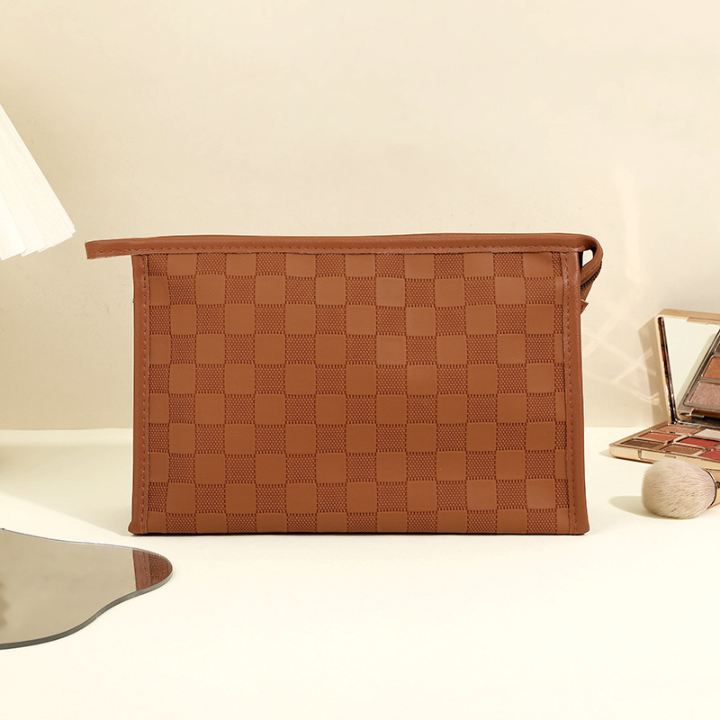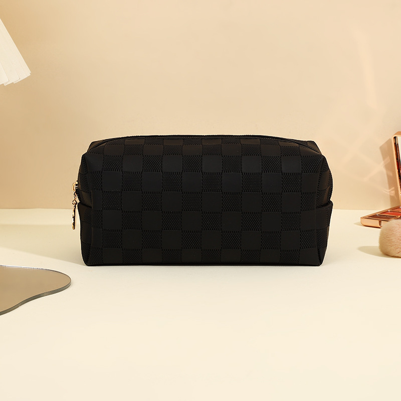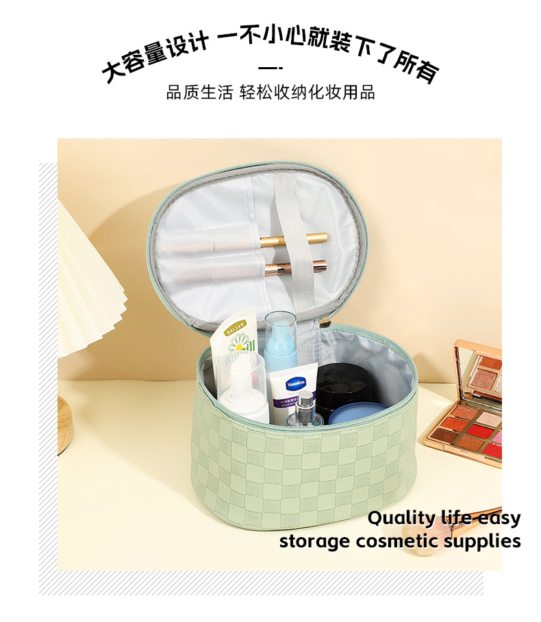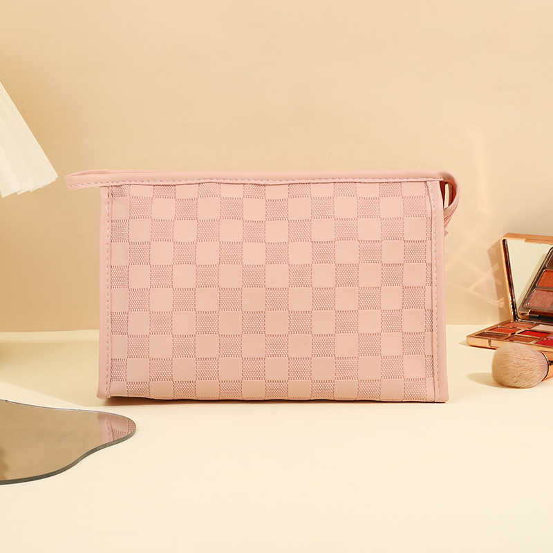 심플한 체커보드 무늬 화장품 가방 여성용 고급 대용량 수납 가방 방수 휴대용 여행 세면도구 가방