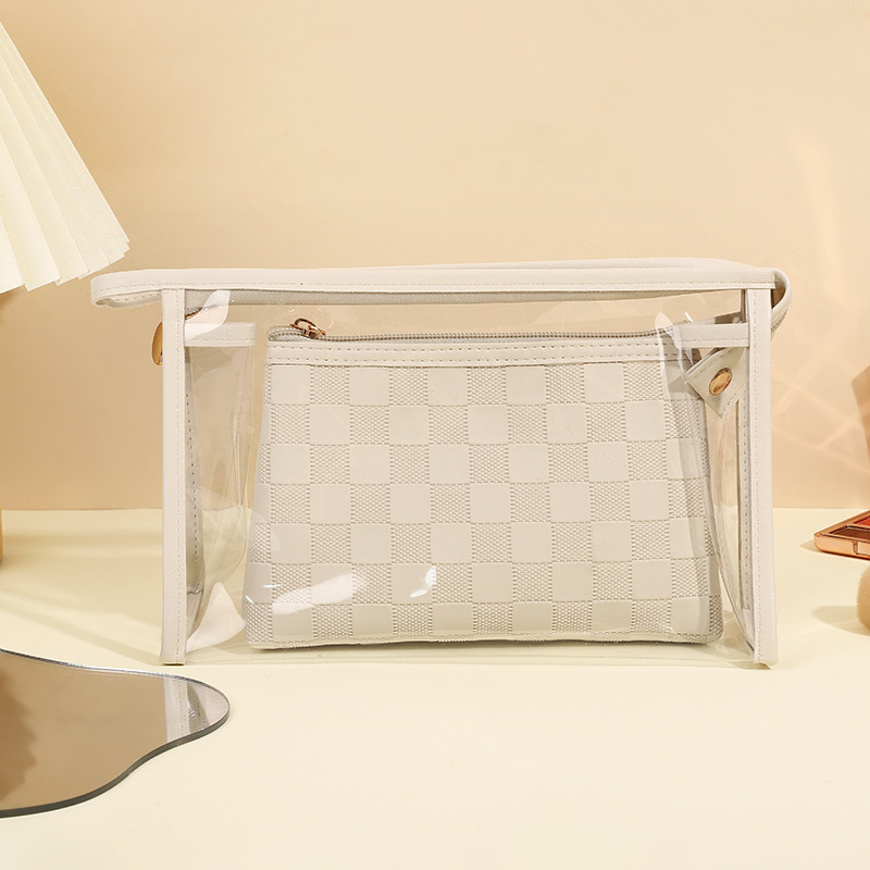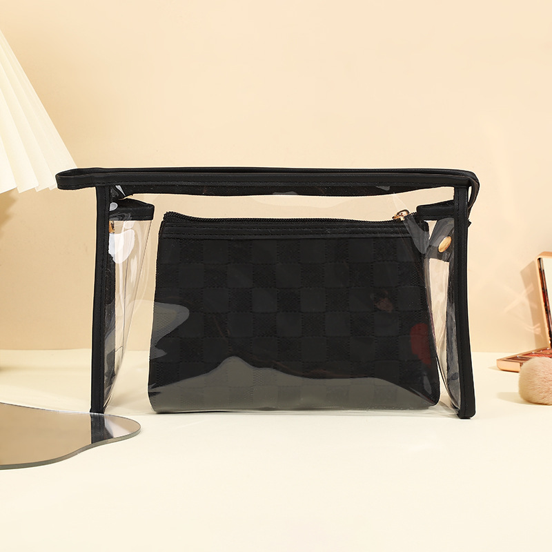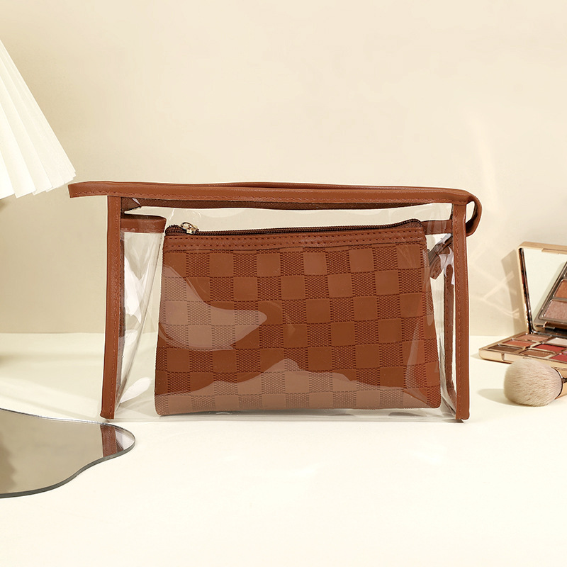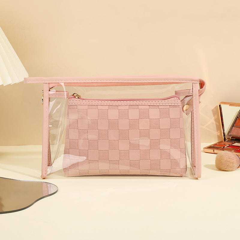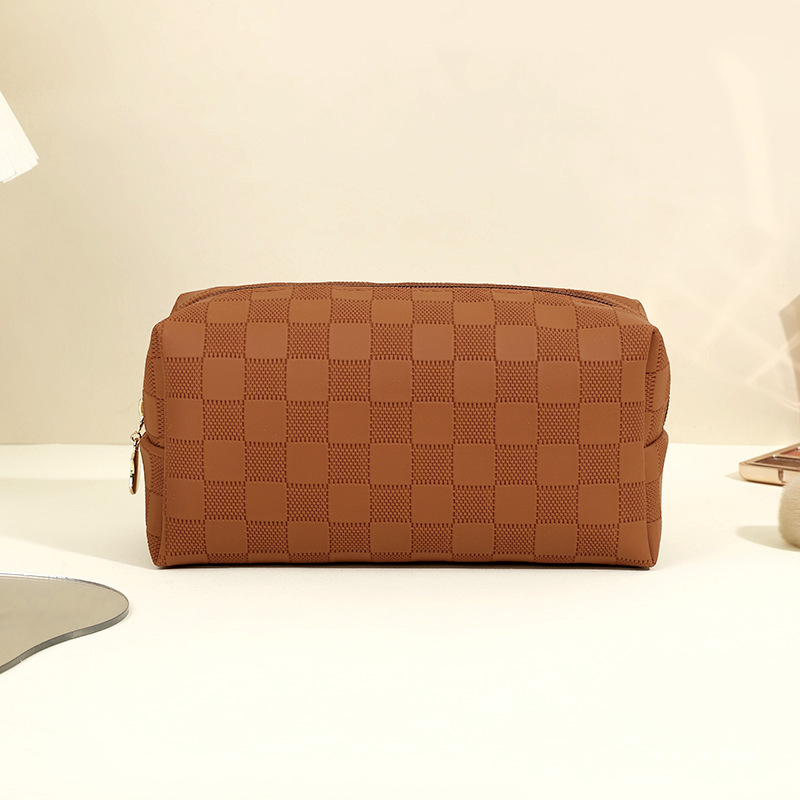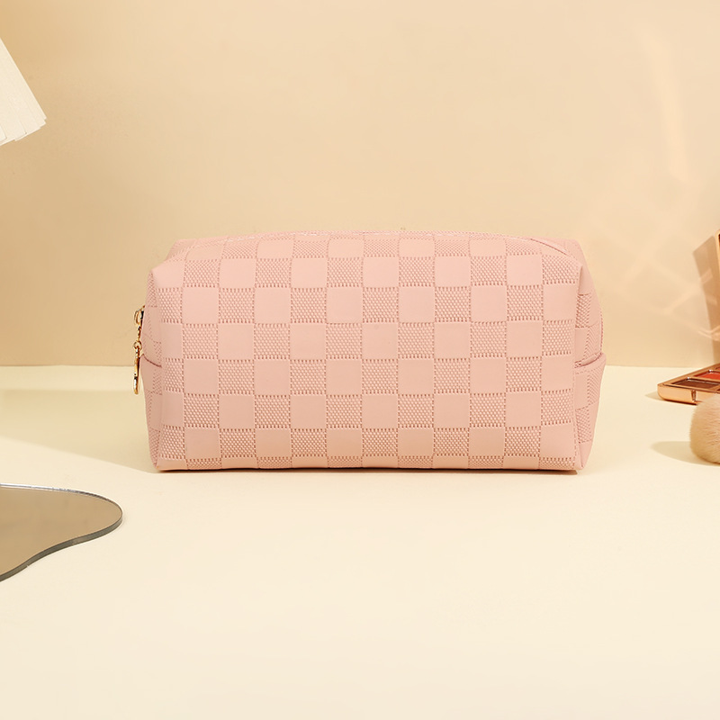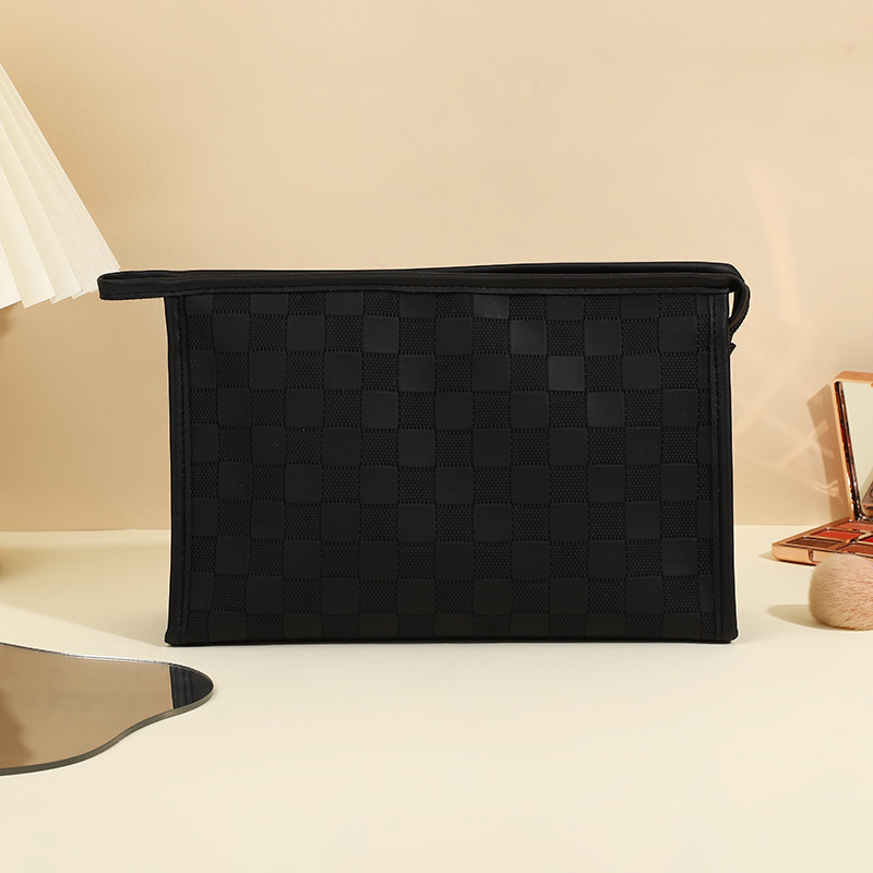 심플한 체커보드 무늬 화장품 가방 여성용 고급 대용량 수납 가방 방수 휴대용 여행 세면도구 가방