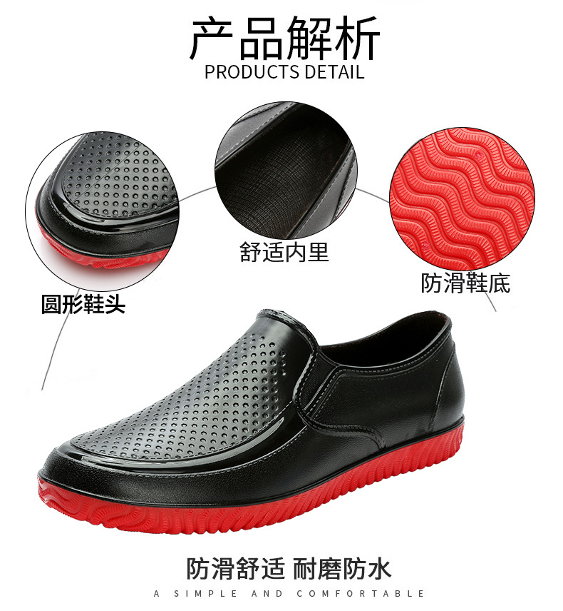 패션 짧은 비 신발 남자의 사계절 신발 로우 탑 미끄럼 방지 주방 작업 신발 세차 낚시 고무 신발 남성용 방수 신발