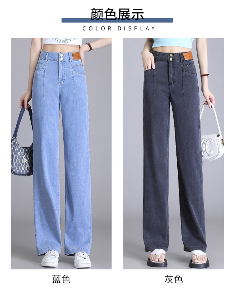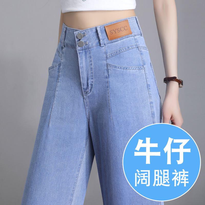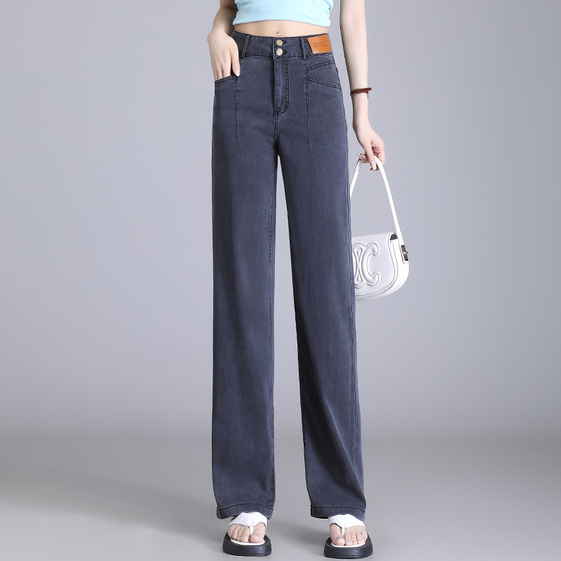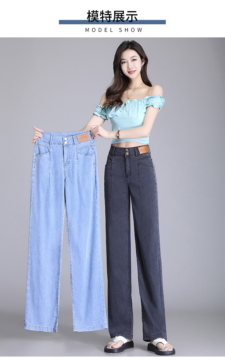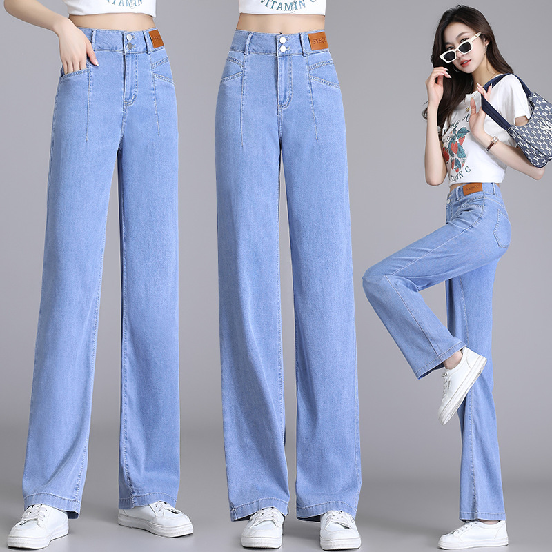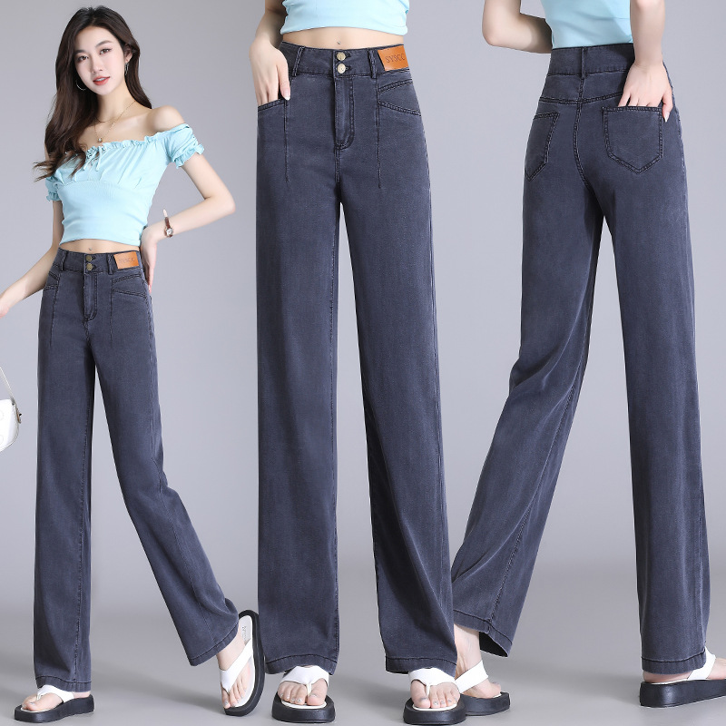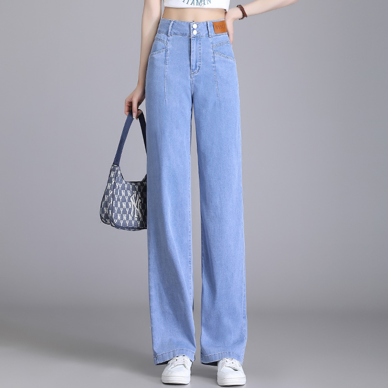 텐셀 청바지 여성용 여름 얇은 넓은 다리 바지 높은 허리 여성용 스트레이트 패션 데님 긴 바지스토어 가기