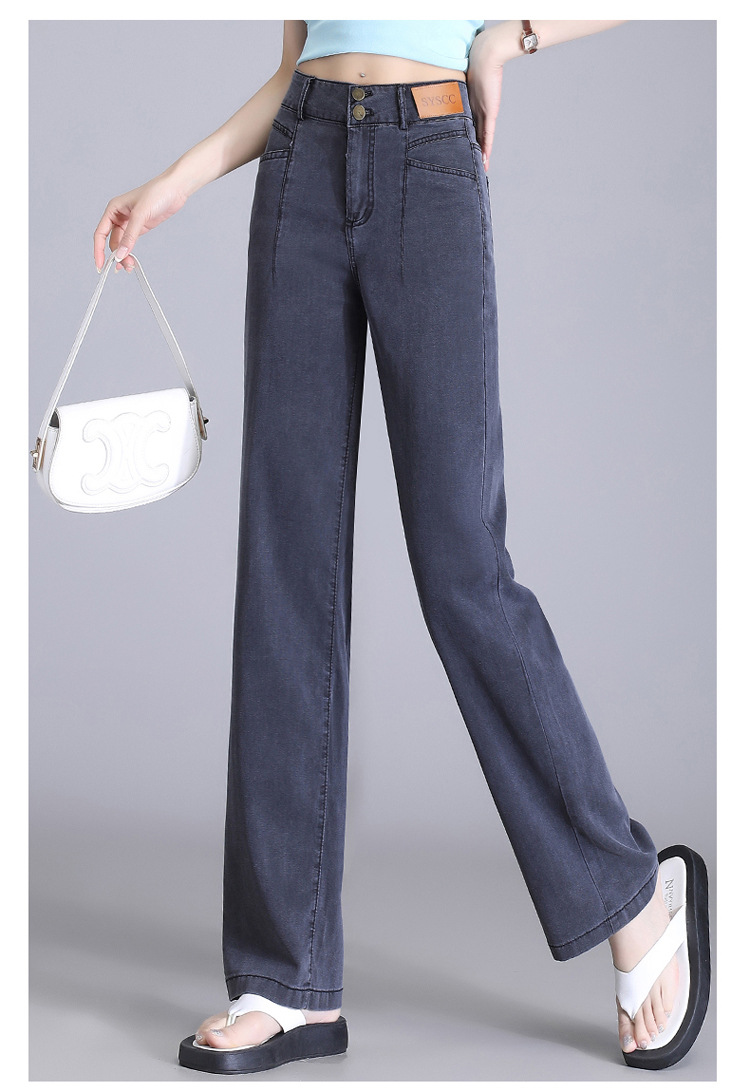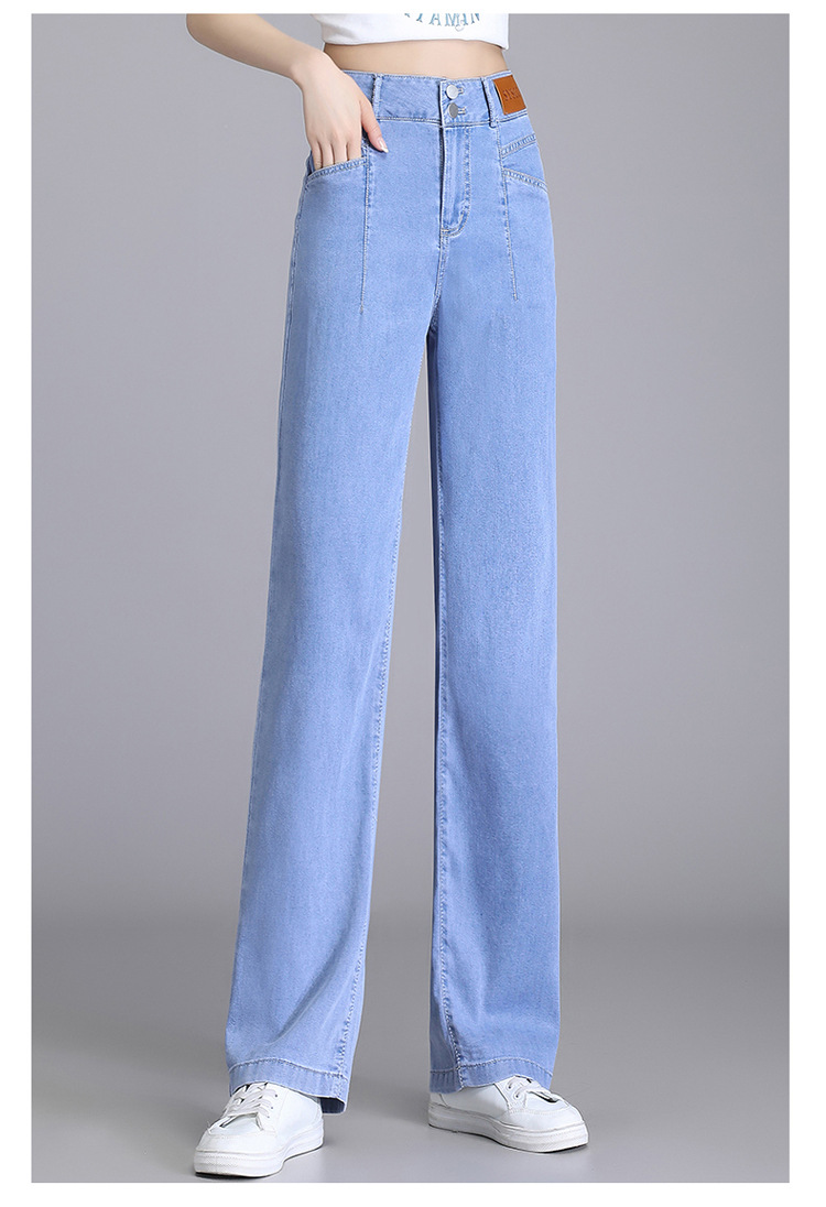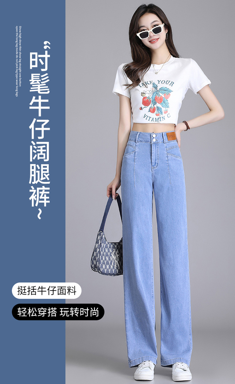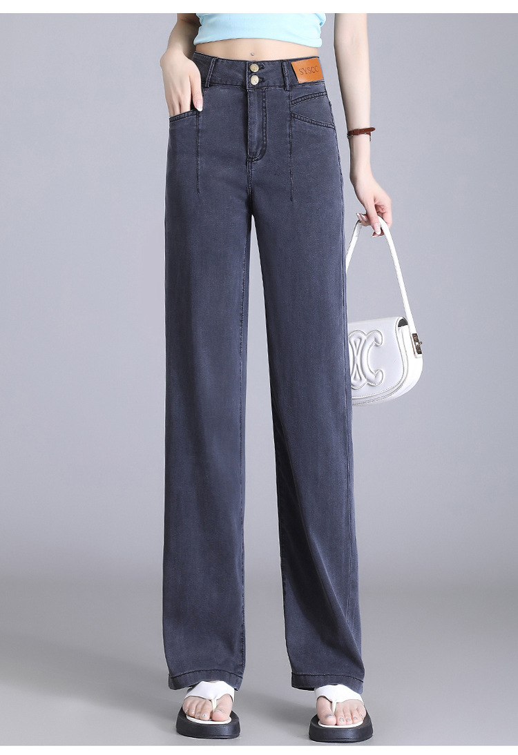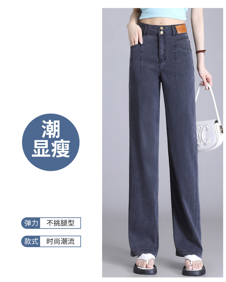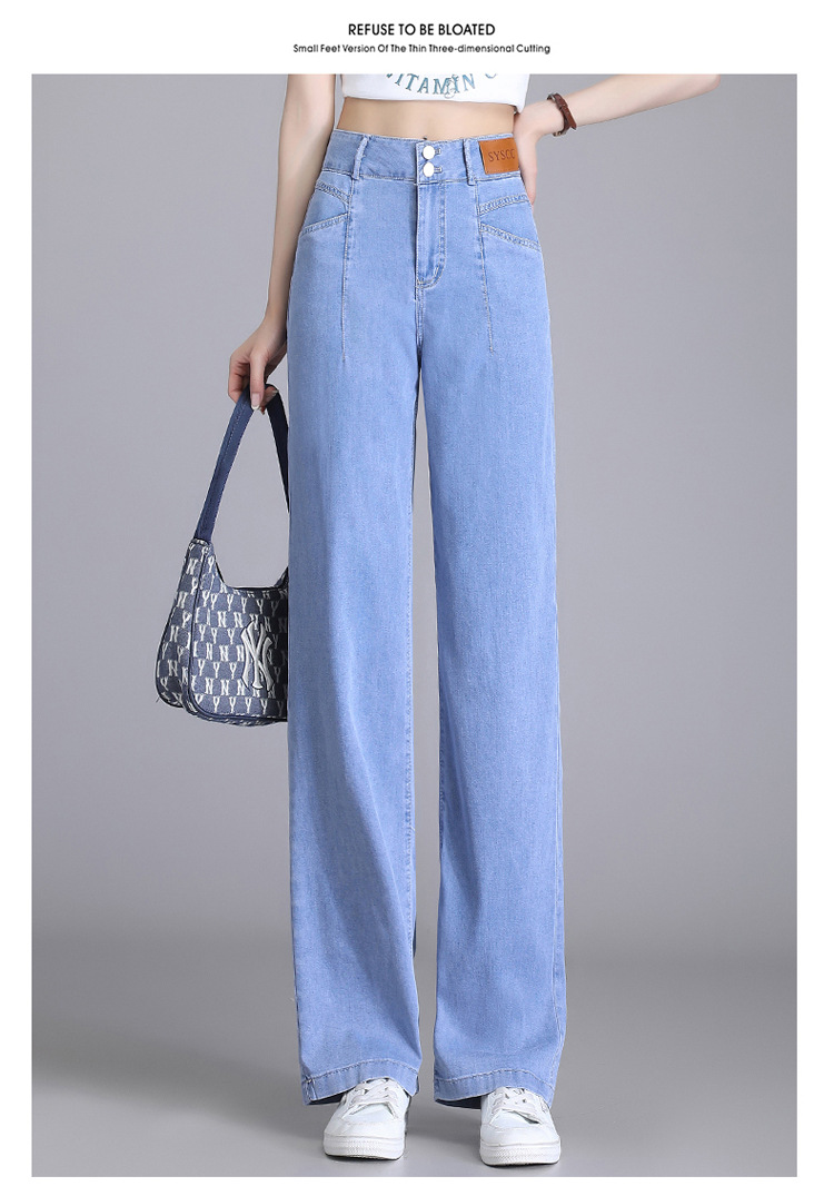텐셀 청바지 여성용 여름 얇은 넓은 다리 바지 높은 허리 여성용 스트레이트 패션 데님 긴 바지스토어 가기