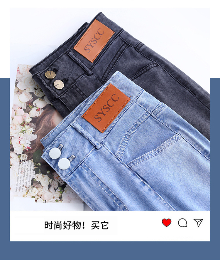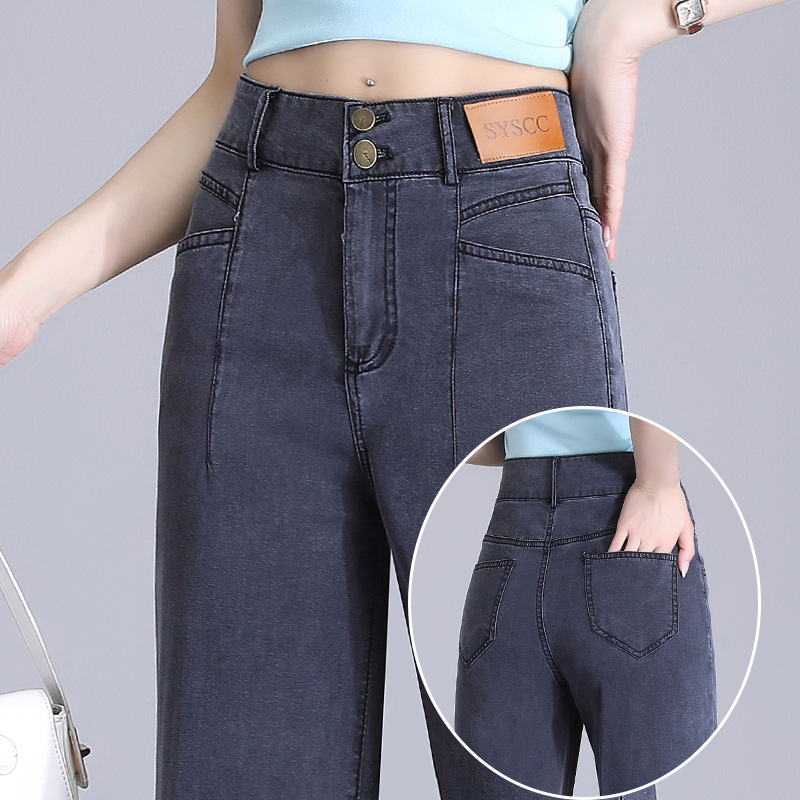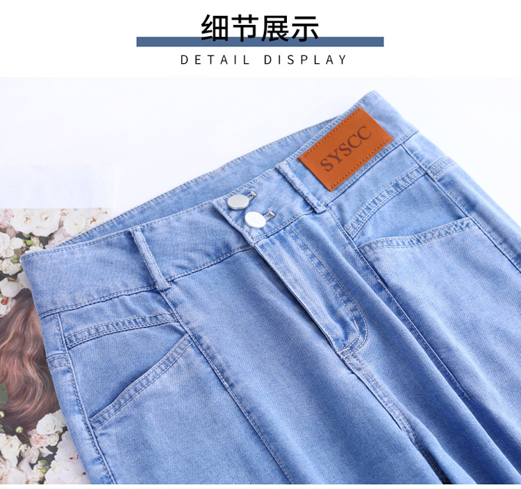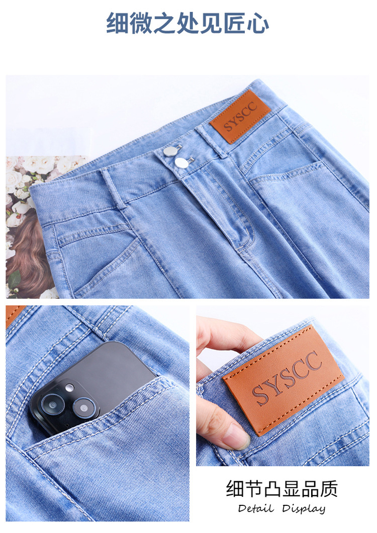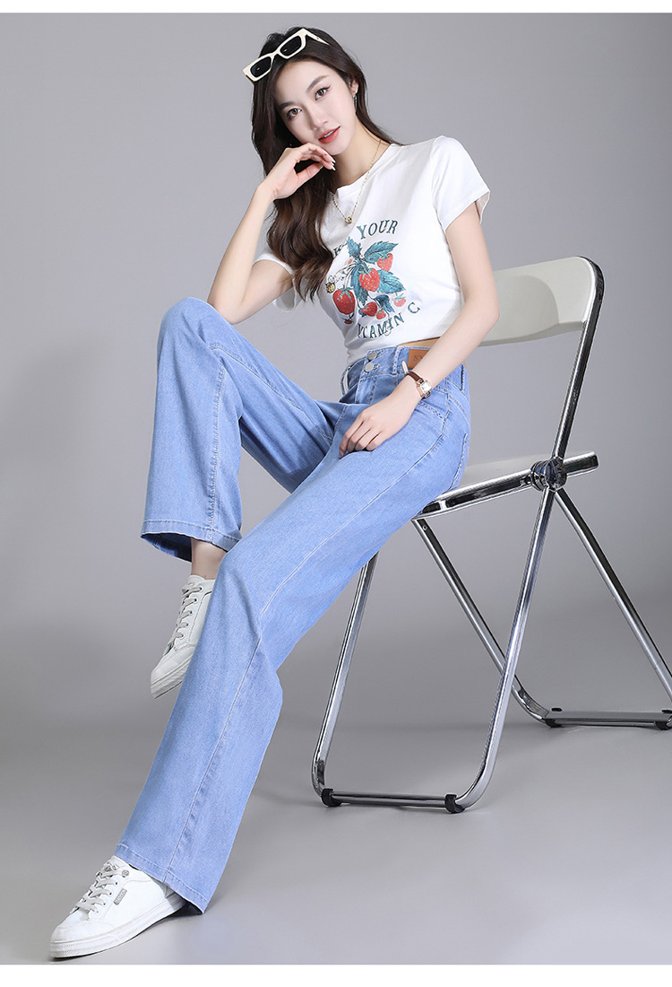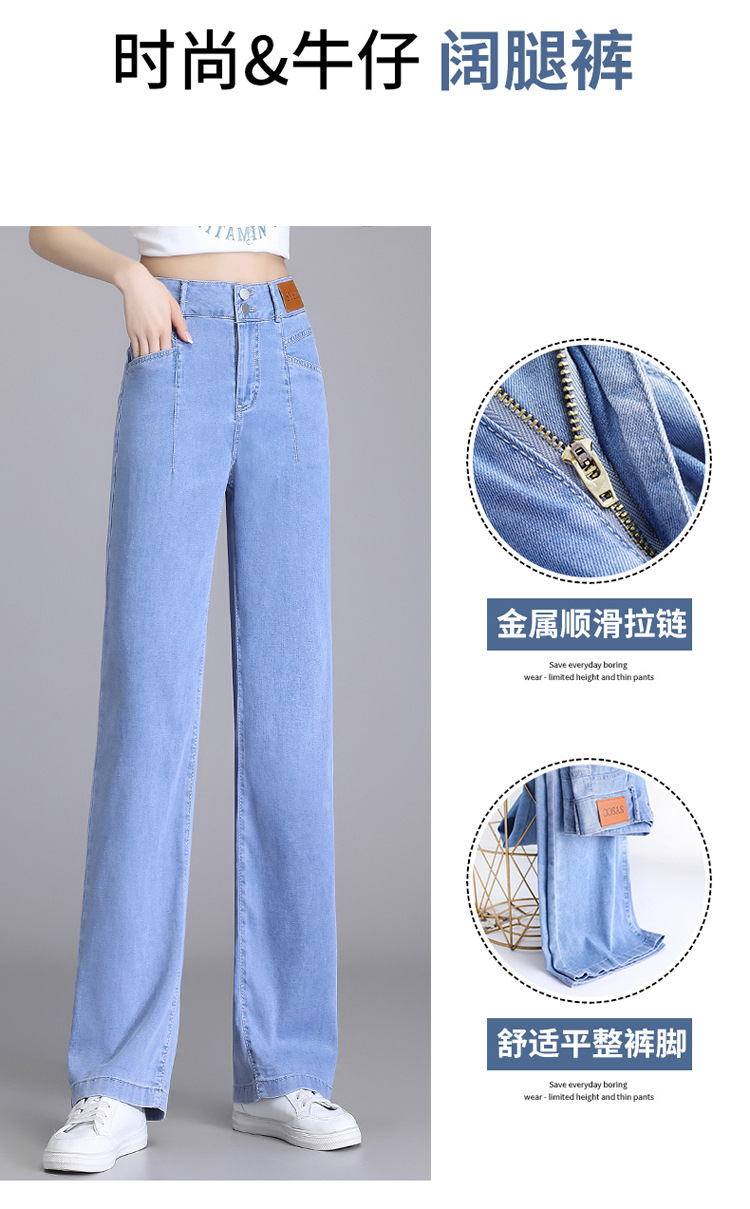 텐셀 청바지 여성용 여름 얇은 넓은 다리 바지 높은 허리 여성용 스트레이트 패션 데님 긴 바지스토어 가기