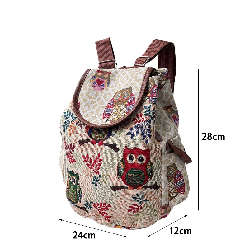 새로운 캔버스 백팩 여성의 에스닉 자수 자카드 아카데믹 스타일 대용량 버클 커버 졸라매는 끈 배낭