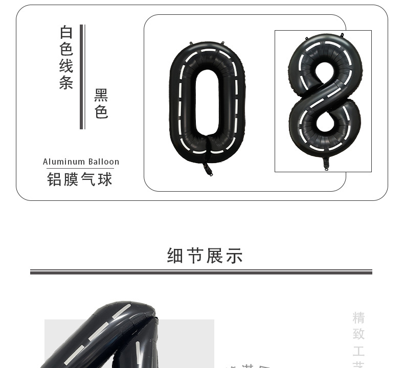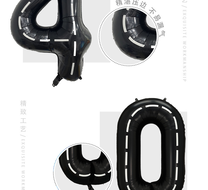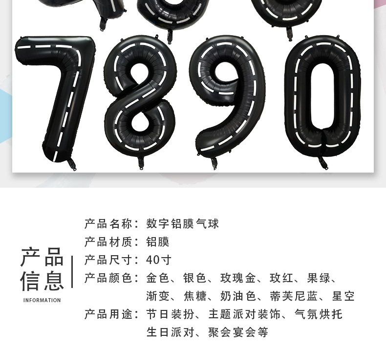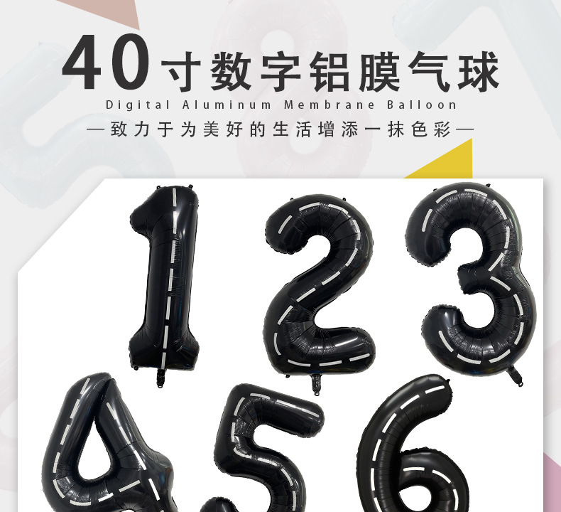40 인치 블랙 라인 알루미늄 호일 디지털 생일 파티 장식 레이아웃 대형 알루미늄 필름 디지털 풍선 독립 포장스토어 가기