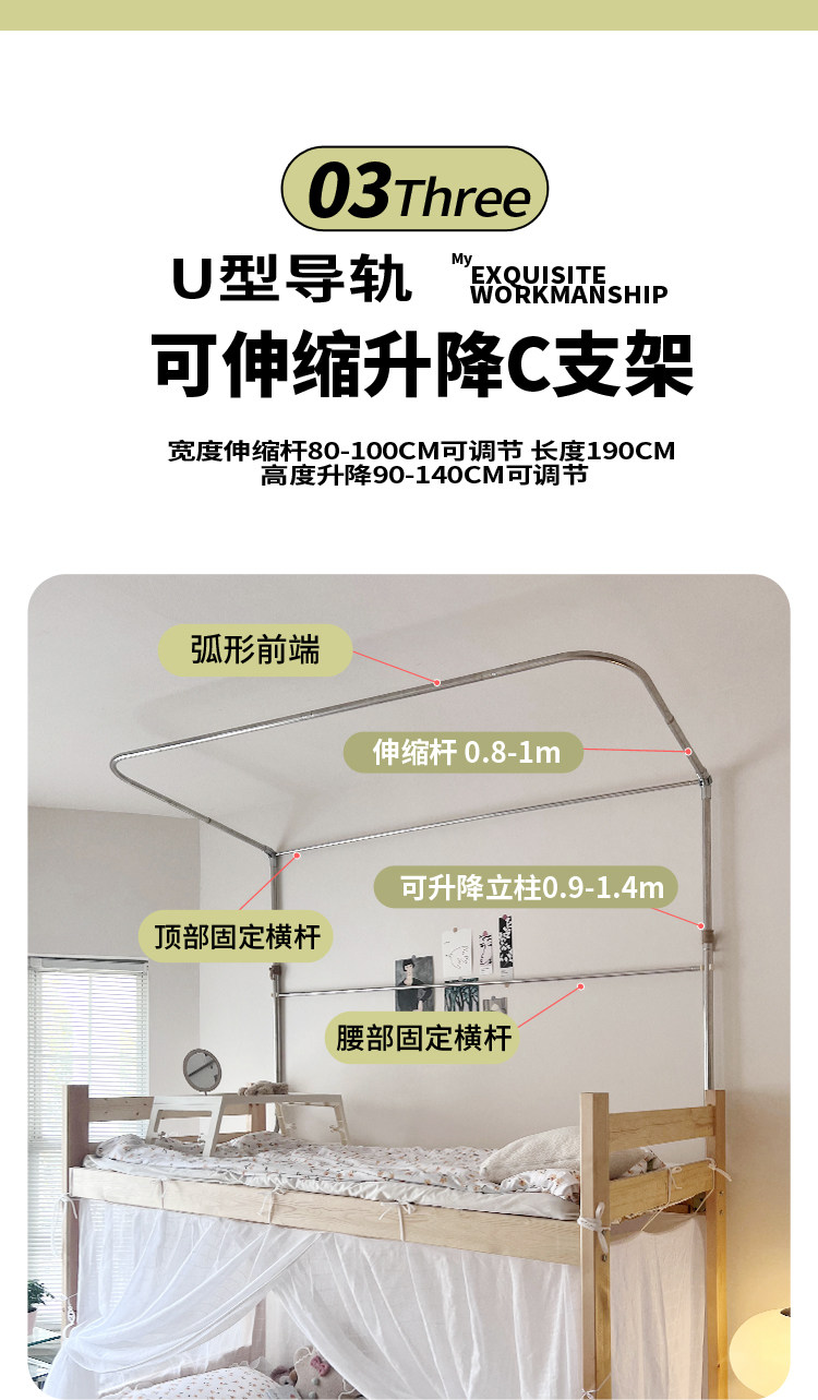 BB4C 도매 U자 브라켓 학생 기숙사 모기장 상층 하부 이층 일체형 침대 커튼 침실 더블 레이어 이하스토어 가기