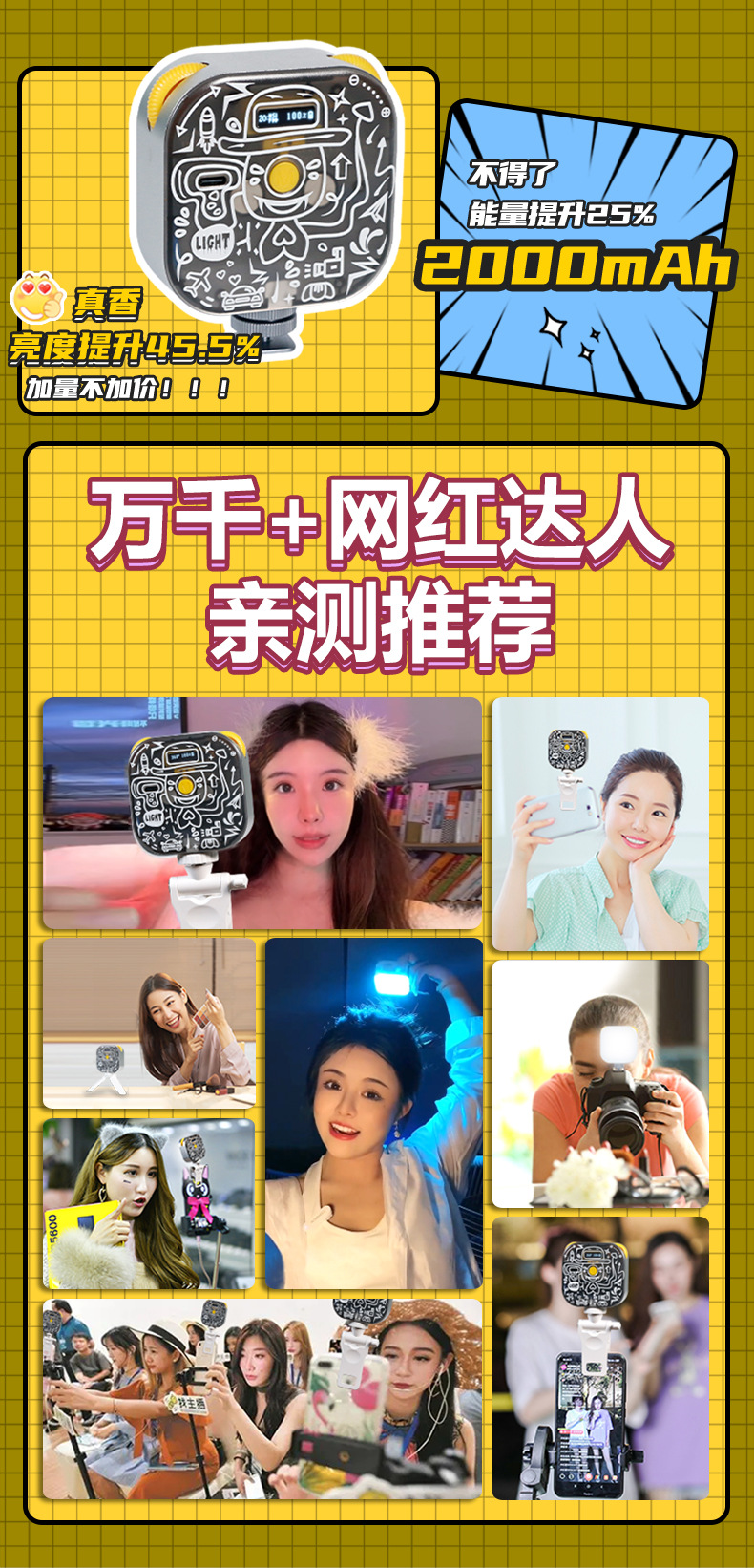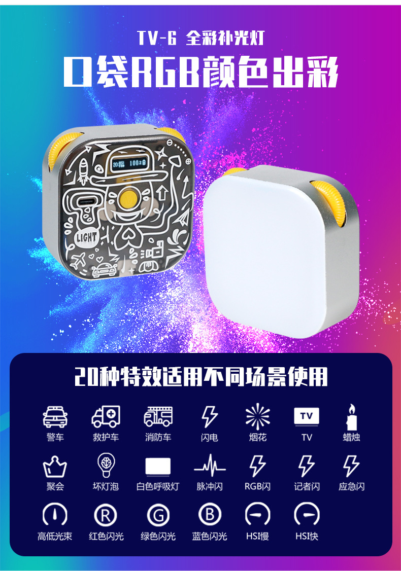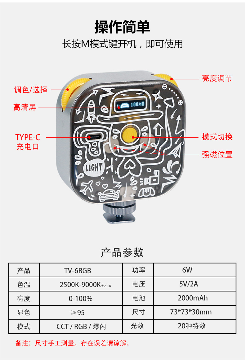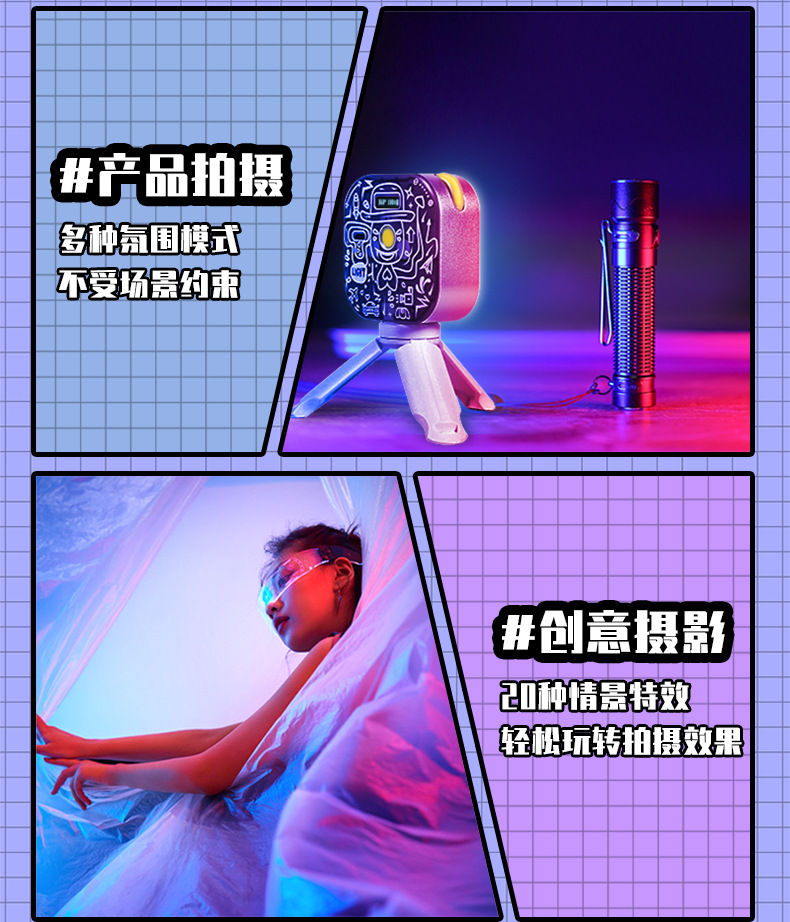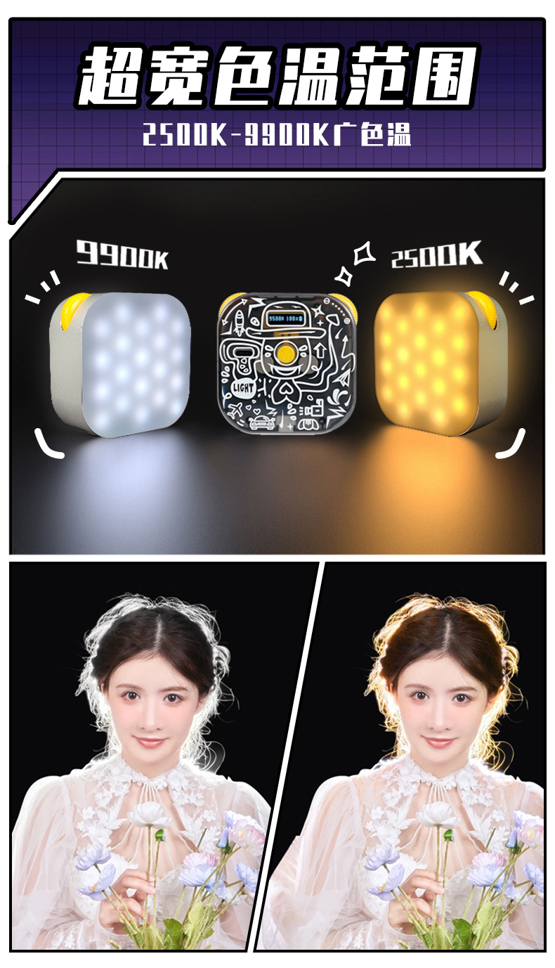 YONGEER 두부 미니 램프 핸드 헬드 RGB 필 라이트 포켓 마그네틱 앵커 휴대 전화 촬영 가벼운 사진스토어 가기