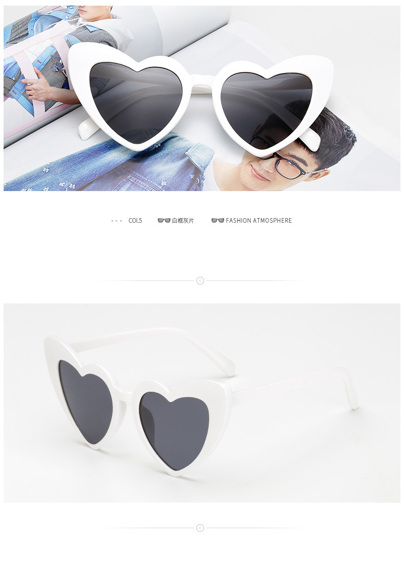 유럽과 미국 국경 간 소원 사랑 모양의 심장 모양의 선글라스 여성 패션 복숭아 심장 큰 프레임 선글라스 맞춤형 안경 도매스토어 가기