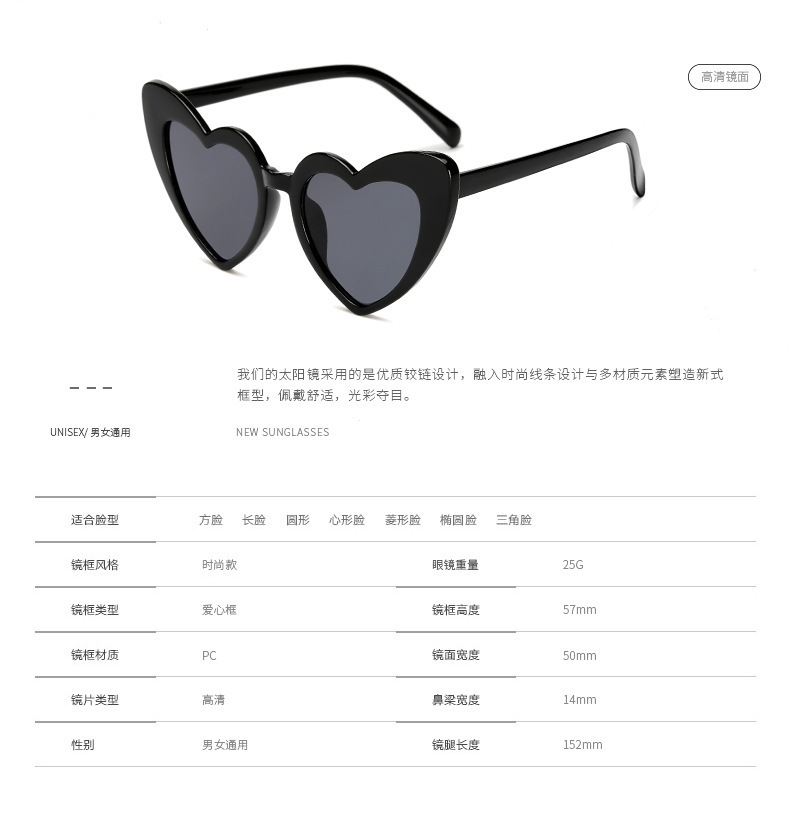 유럽과 미국 국경 간 소원 사랑 모양의 심장 모양의 선글라스 여성 패션 복숭아 심장 큰 프레임 선글라스 맞춤형 안경 도매