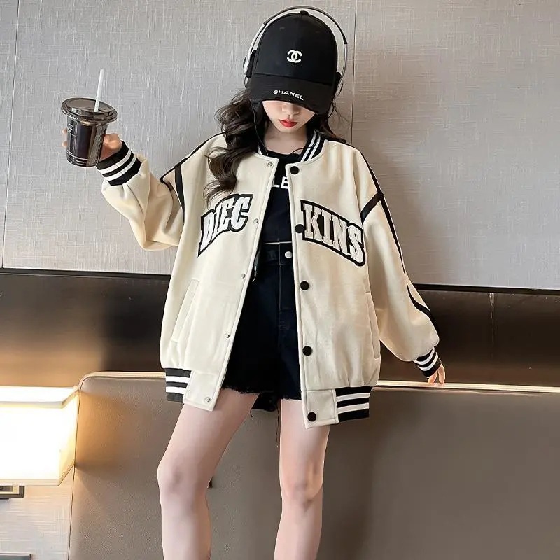 여아 코트 2025 봄 가을 새로운 스타일 아동 봄 의류 유행 인터넷 연예인 재킷 큰 어린이 캐주얼 야구 유니폼스토어 가기