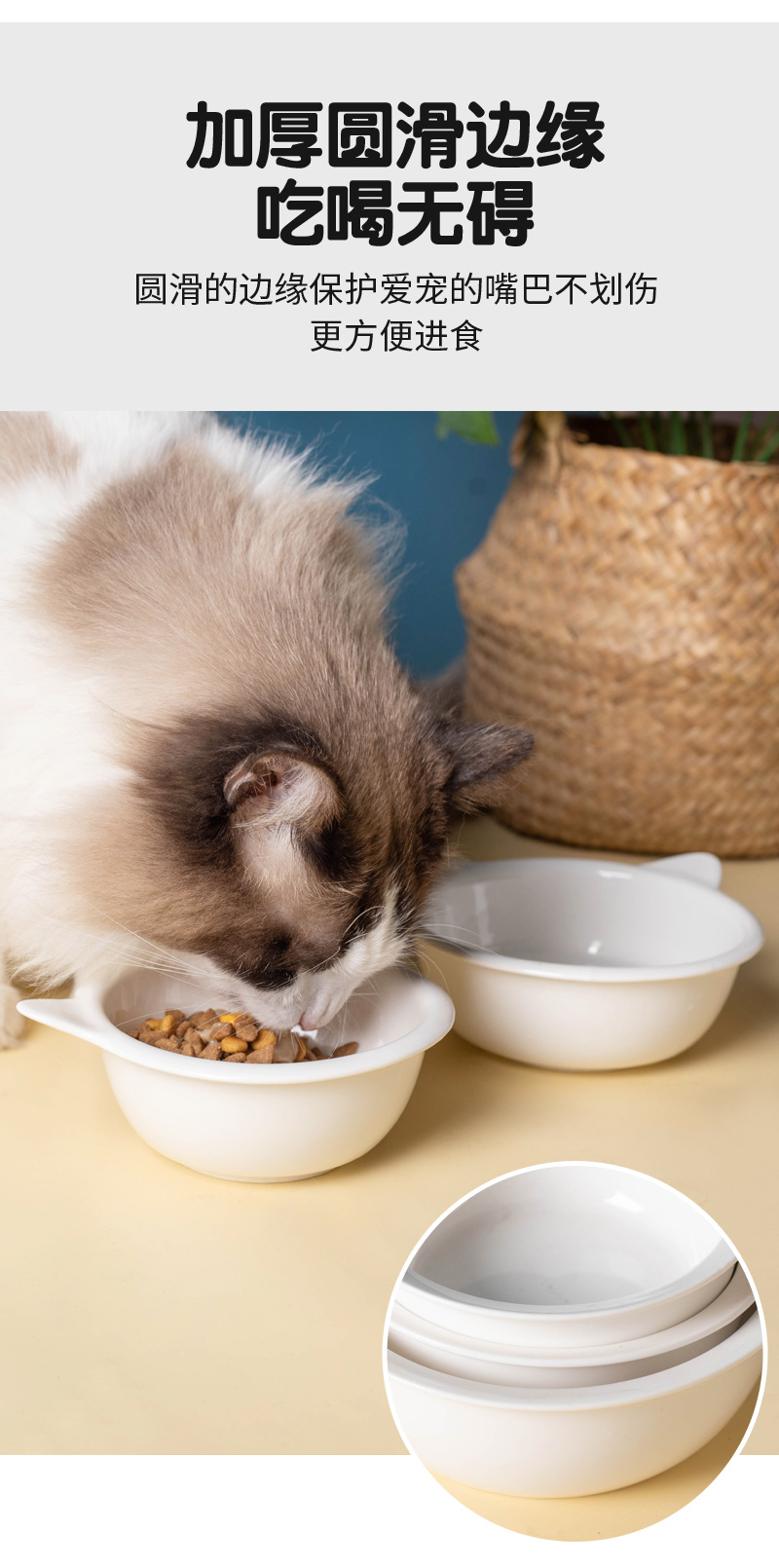 • 흰색 큰 고양이 귀 그릇 (14x14x5.5cm)