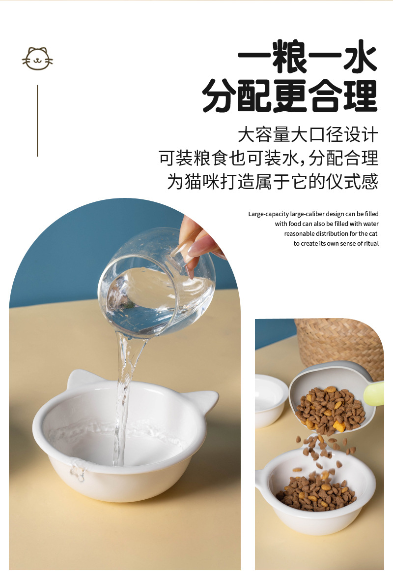 고양이 그릇 고양이 분지 애완 동물 그릇 개 분지 고양이 사료 분지 애완 동물 사료 분지 세라믹 더블 그릇 음식 분지 대나무 및 나무 선반 애완 동물 용품