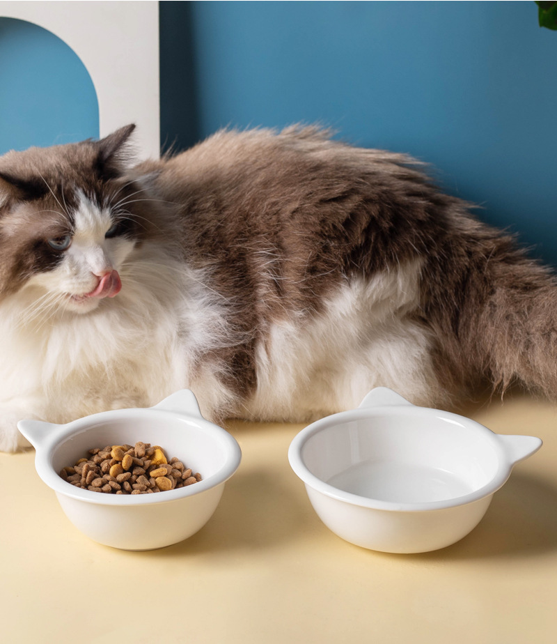 고양이 그릇 고양이 분지 애완 동물 그릇 개 분지 고양이 사료 분지 애완 동물 사료 분지 세라믹 더블 그릇 음식 분지 대나무 및 나무 선반 애완 동물 용품스토어 가기