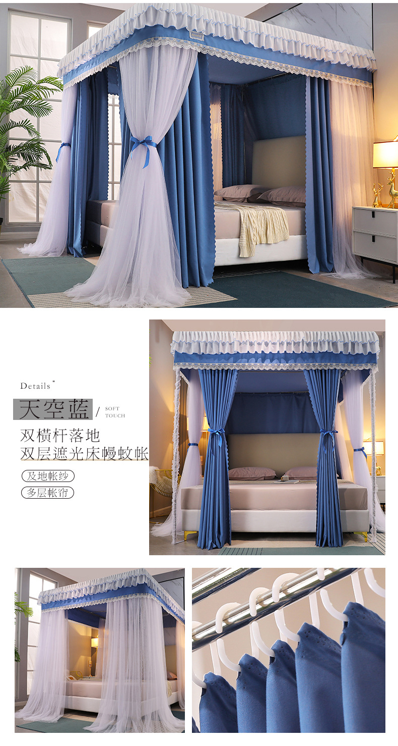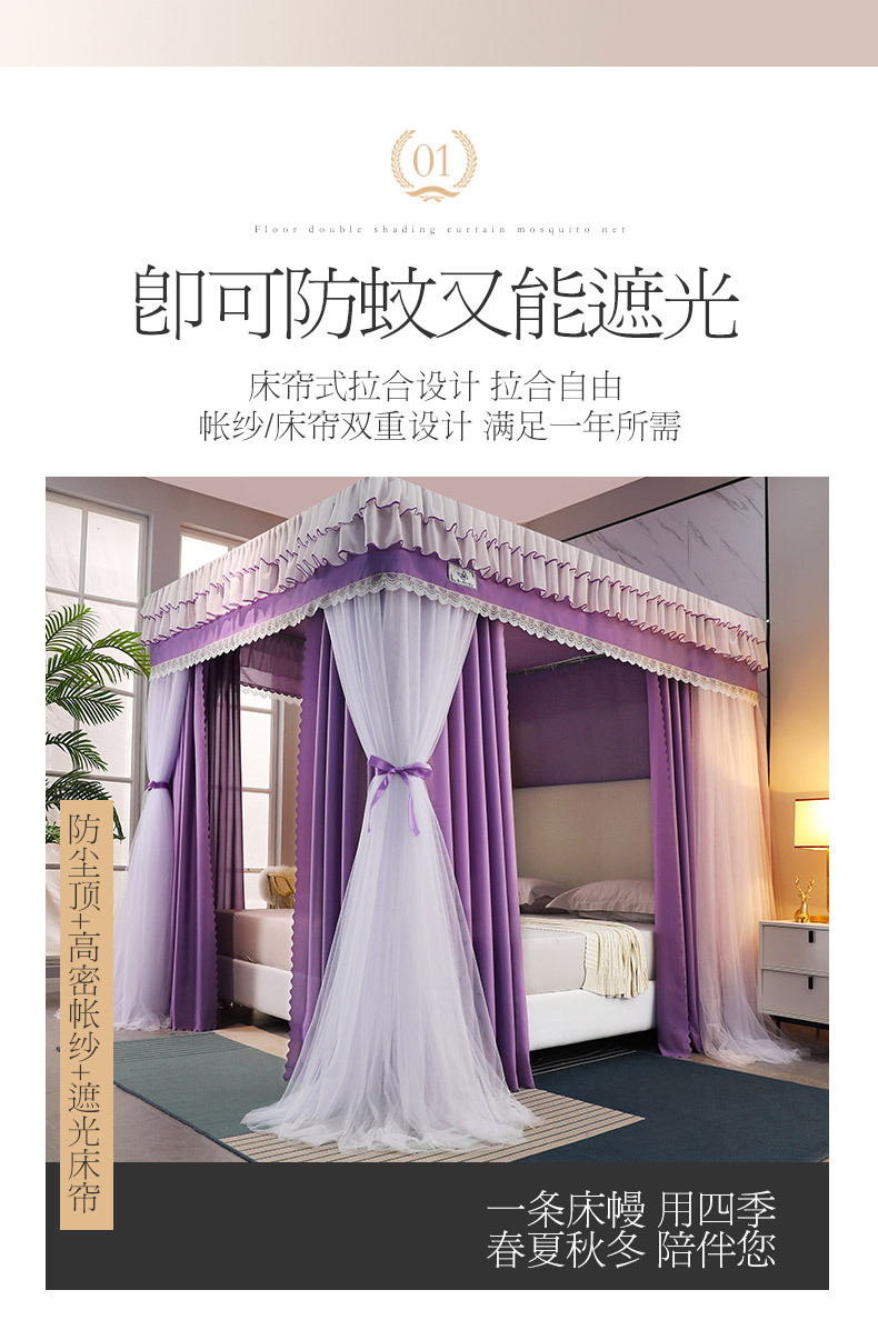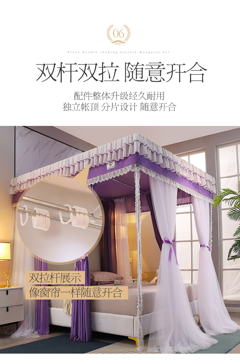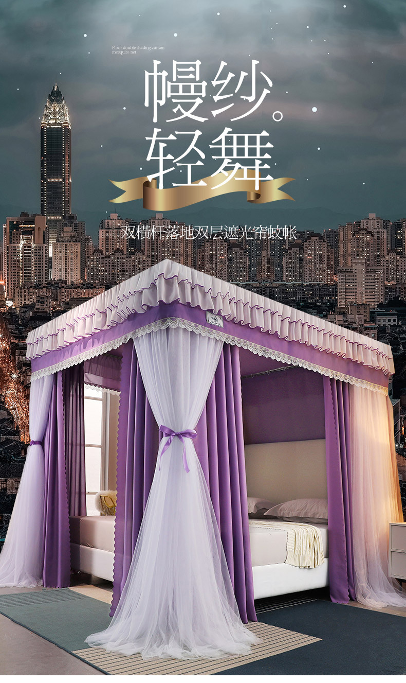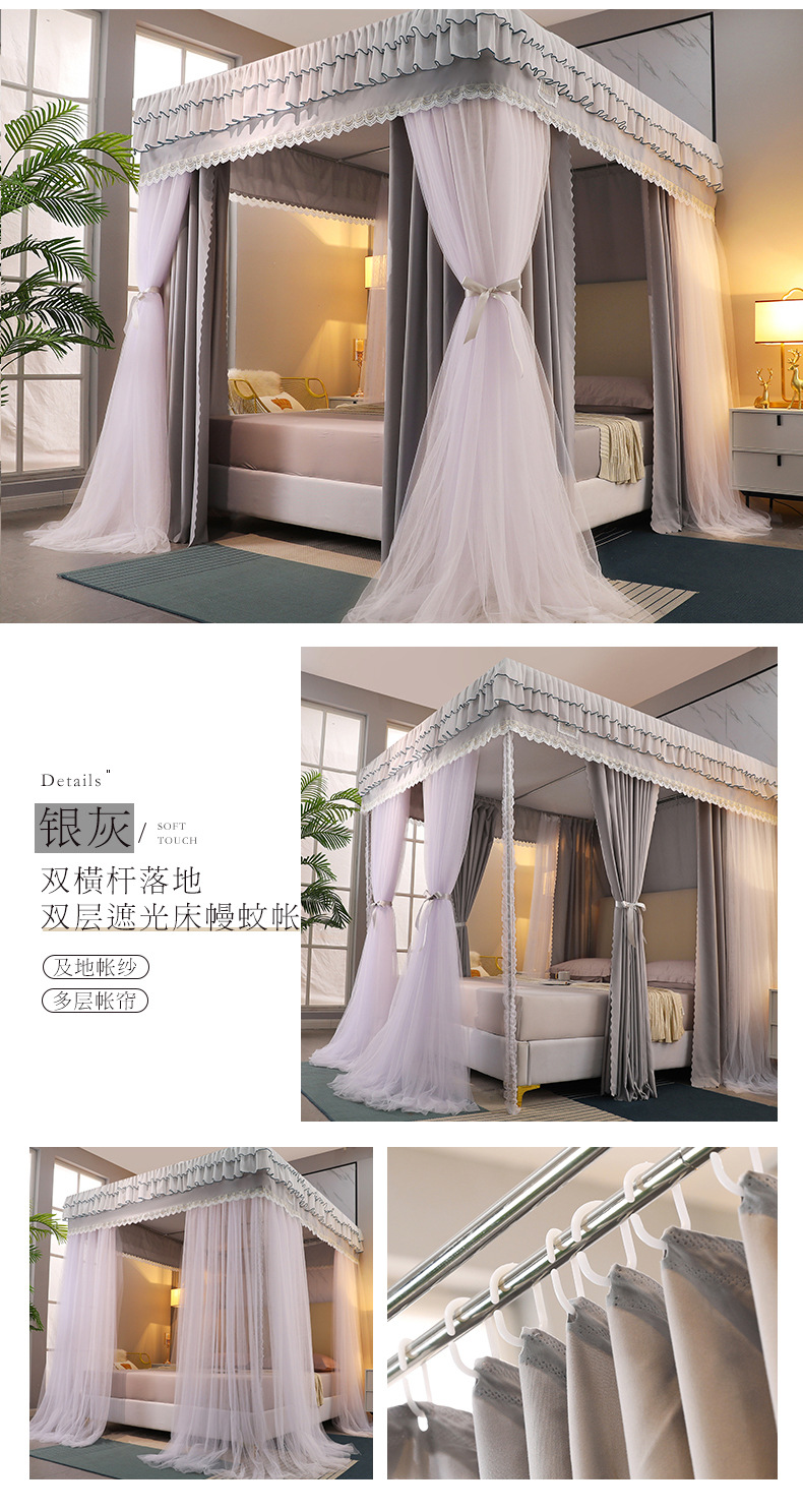 2023 새로운 고등 법원 바닥 스탠딩 모기장 홈 모기 차양 침실 두꺼운 두꺼운 브래킷 침대 맨틀 1.8M스토어 가기