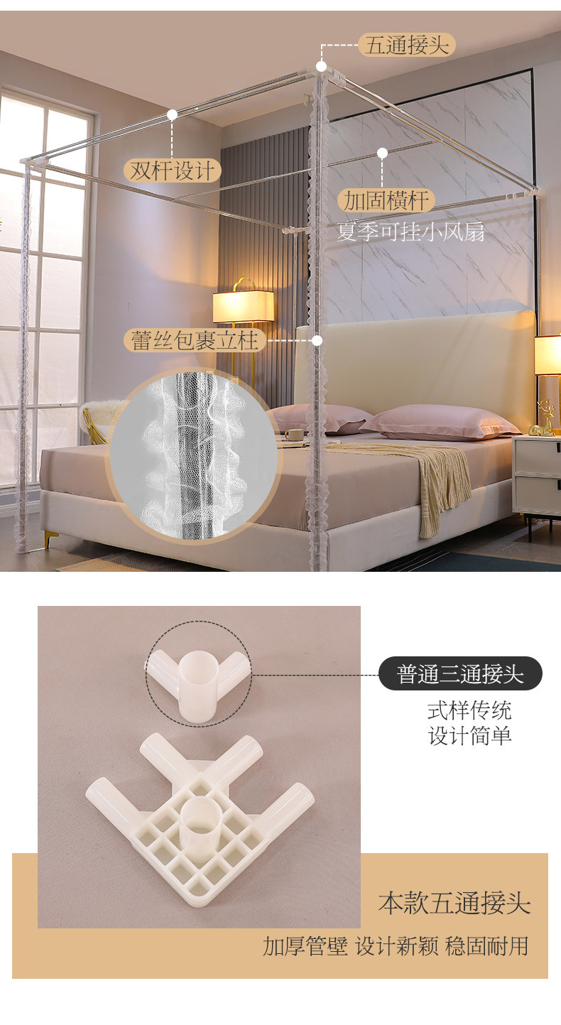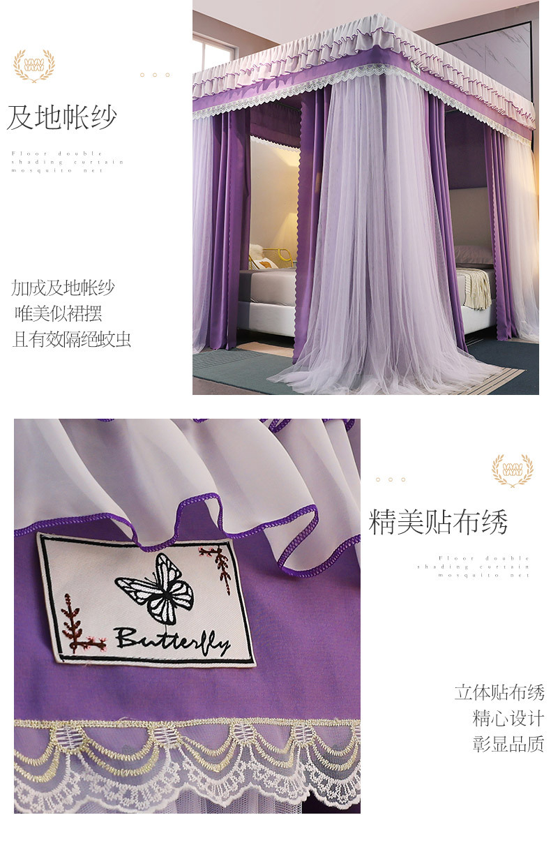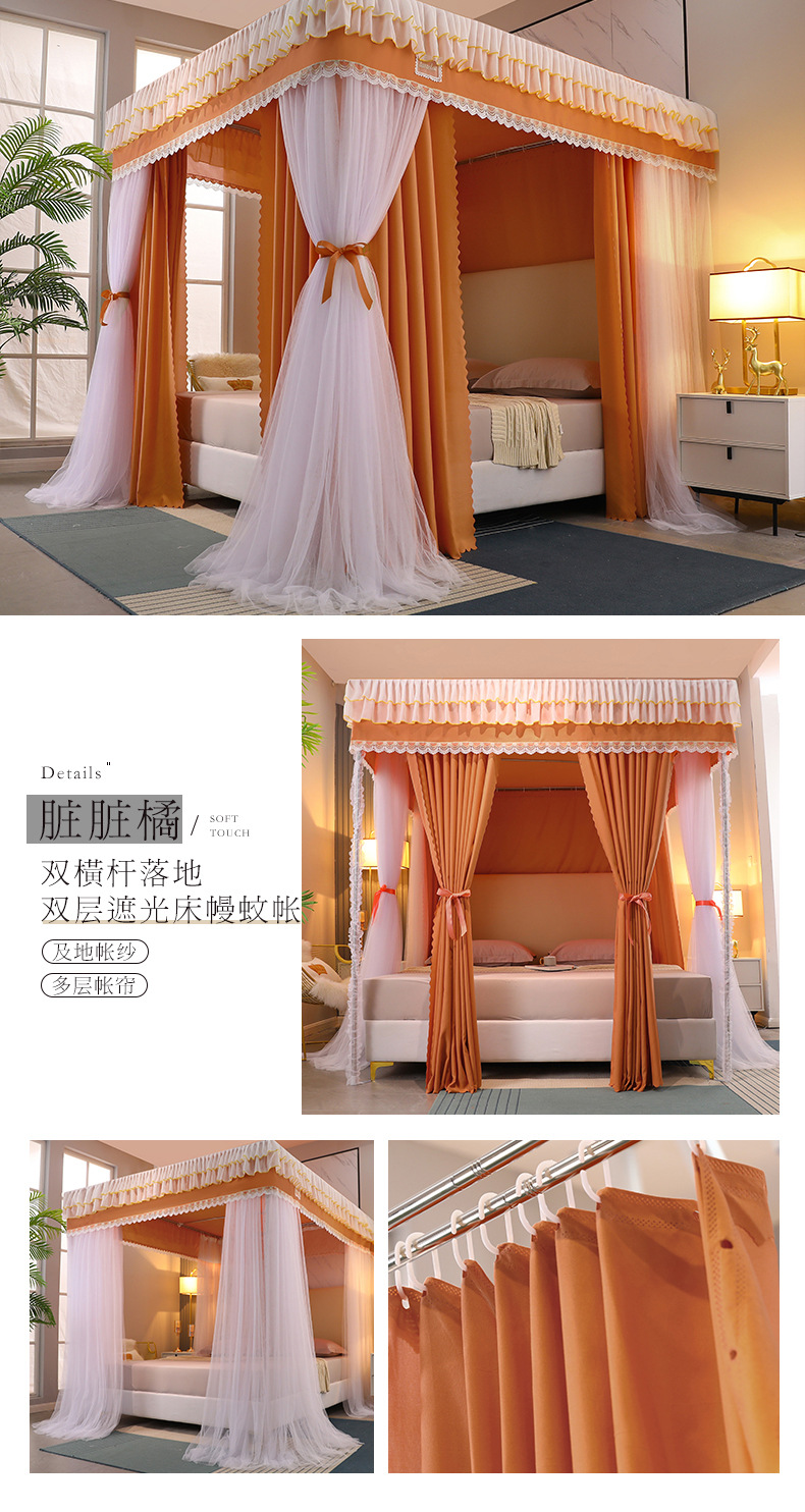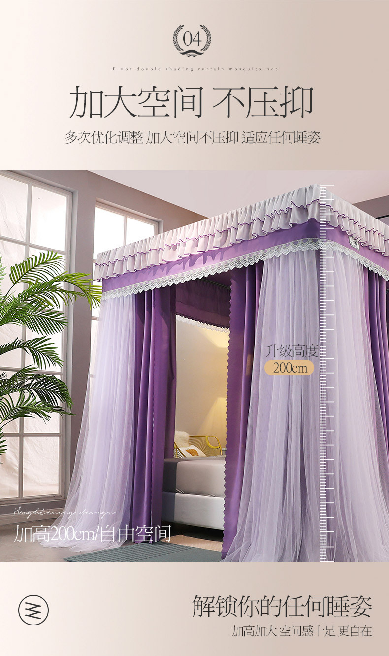 2023 새로운 고등 법원 바닥 스탠딩 모기장 홈 모기 차양 침실 두꺼운 두꺼운 브래킷 침대 맨틀 1.8M스토어 가기