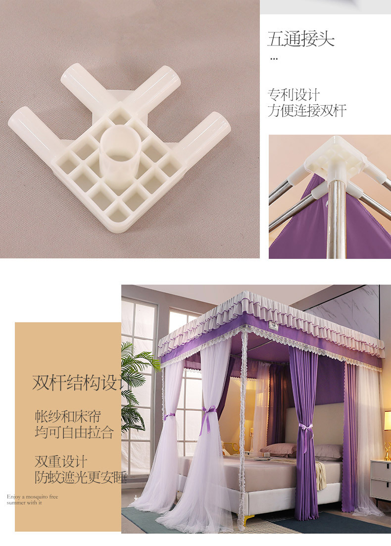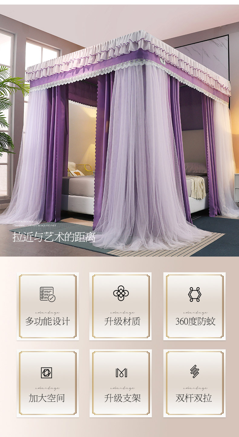 2023 새로운 고등 법원 바닥 스탠딩 모기장 홈 모기 차양 침실 두꺼운 두꺼운 브래킷 침대 맨틀 1.8M