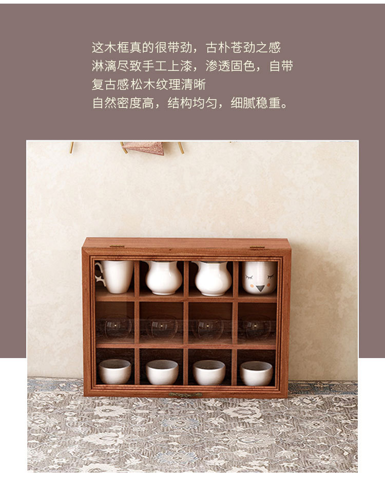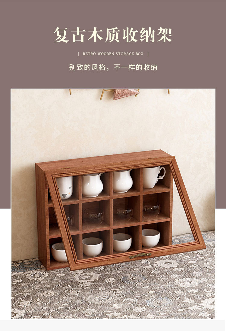 벽걸이 형 차 세트 보관 상자 단단한 나무 복고풍 데스크탑 차 세트 장식품 보관 랙 책상 테이블 컵 손으로 만든스토어 가기
