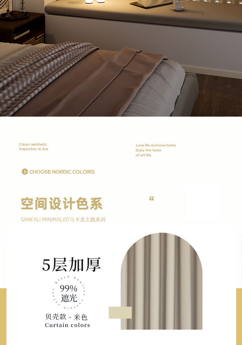 현대 간단한 태양 보호 방음 크림 스타일 침실 전체 정전 2025 새로운 베이 창 흡음 천 거실 커튼스토어 가기