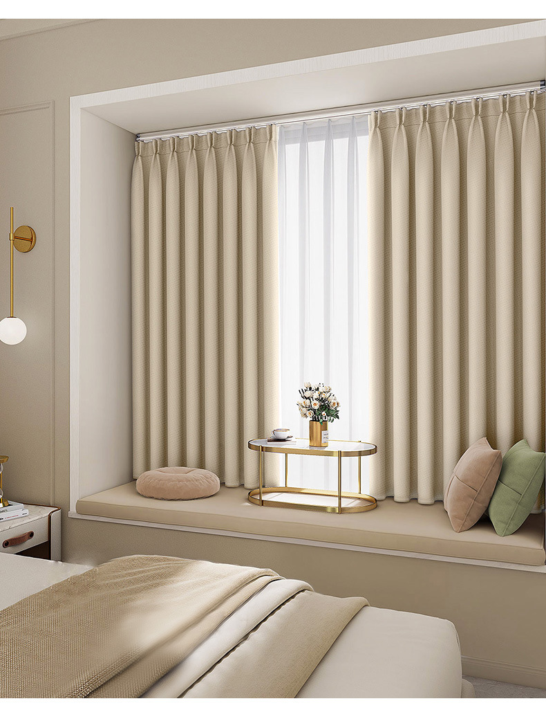 현대 간단한 태양 보호 방음 크림 스타일 침실 전체 정전 2025 새로운 베이 창 흡음 천 거실 커튼
