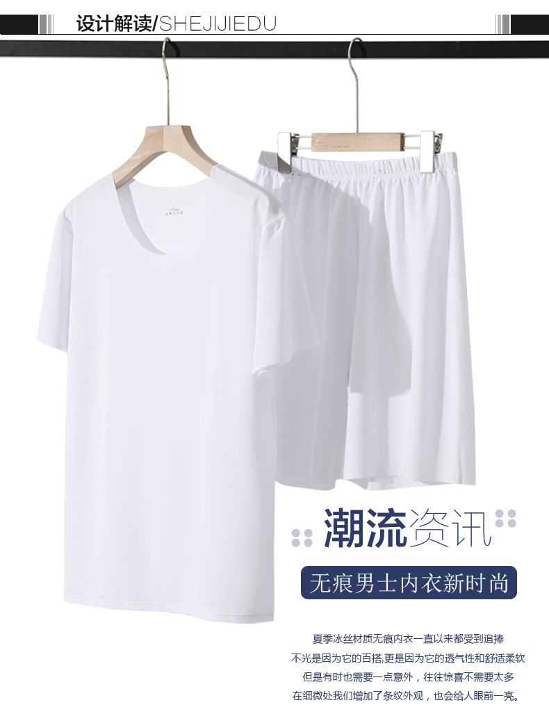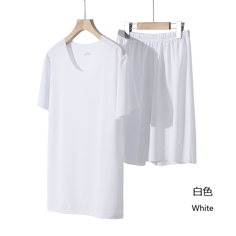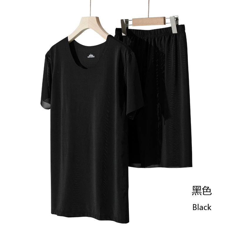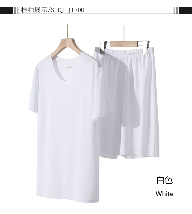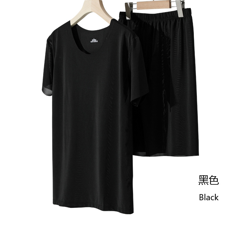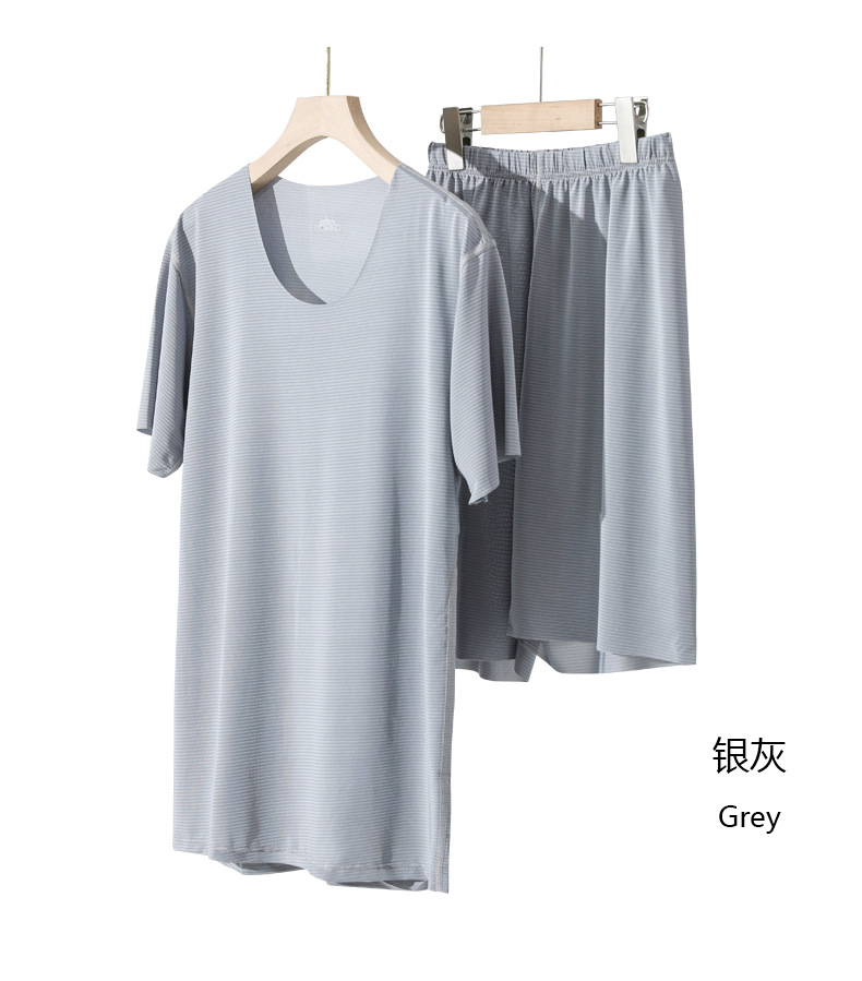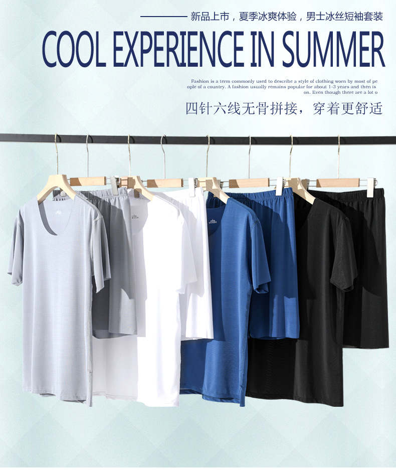 잠옷 세트 남자의 반팔 여름 얇은 얼음 실크 느슨한 라운드 넥 아웃웨어 남성 캐주얼 봄과 가을 가정 의류스토어 가기