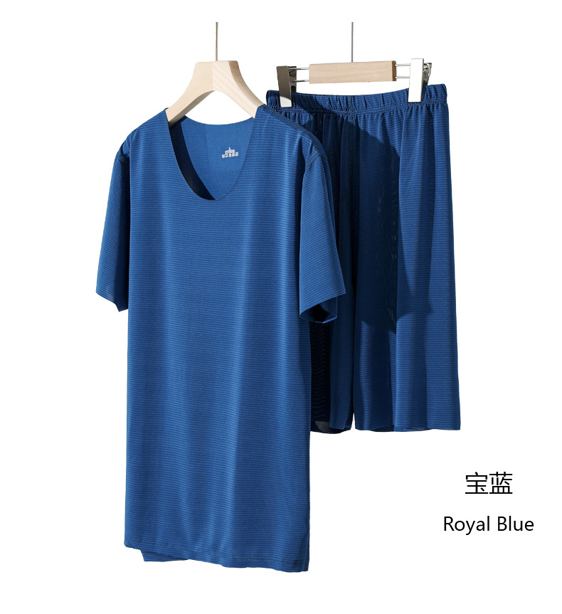 잠옷 세트 남자의 반팔 여름 얇은 얼음 실크 느슨한 라운드 넥 아웃웨어 남성 캐주얼 봄과 가을 가정 의류