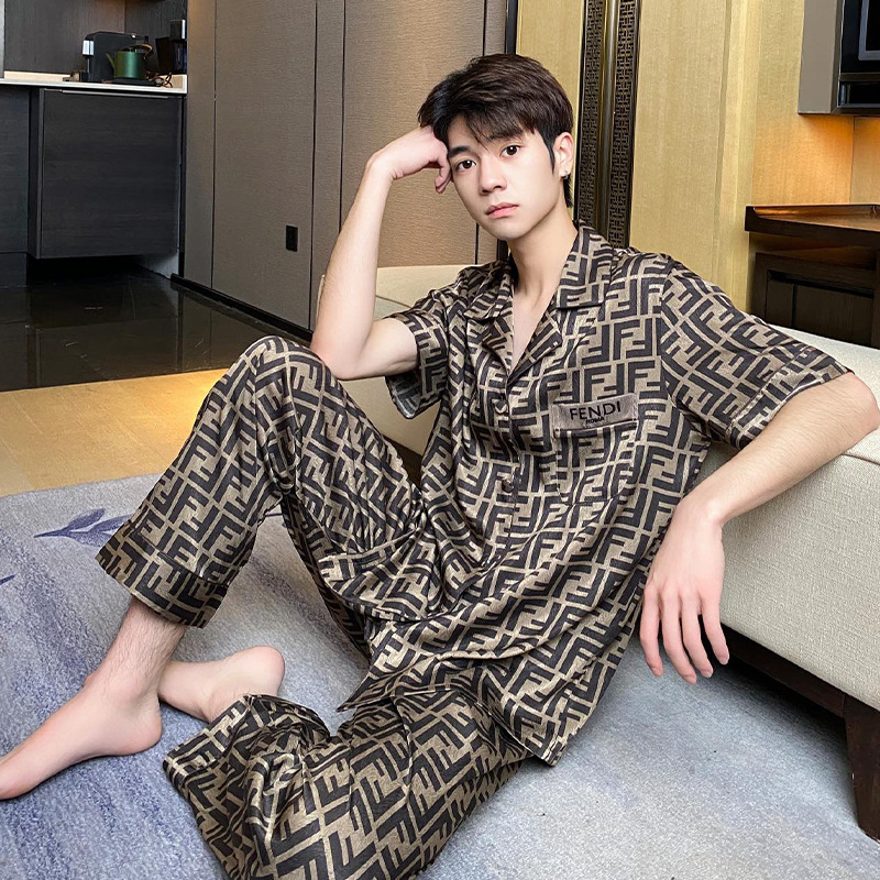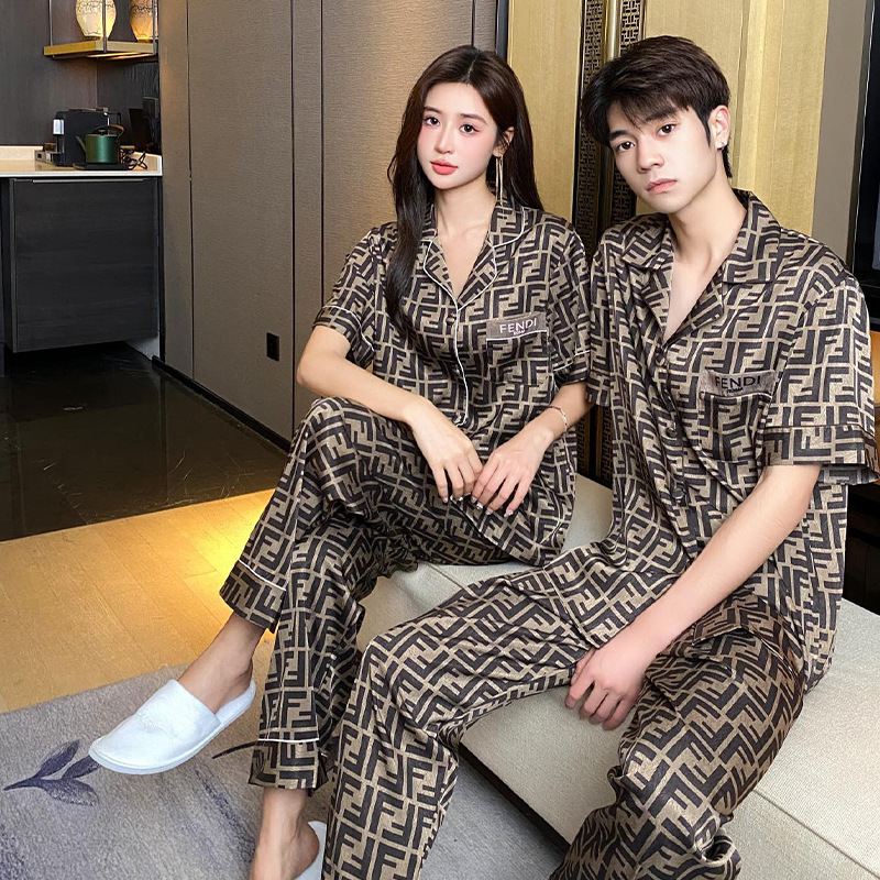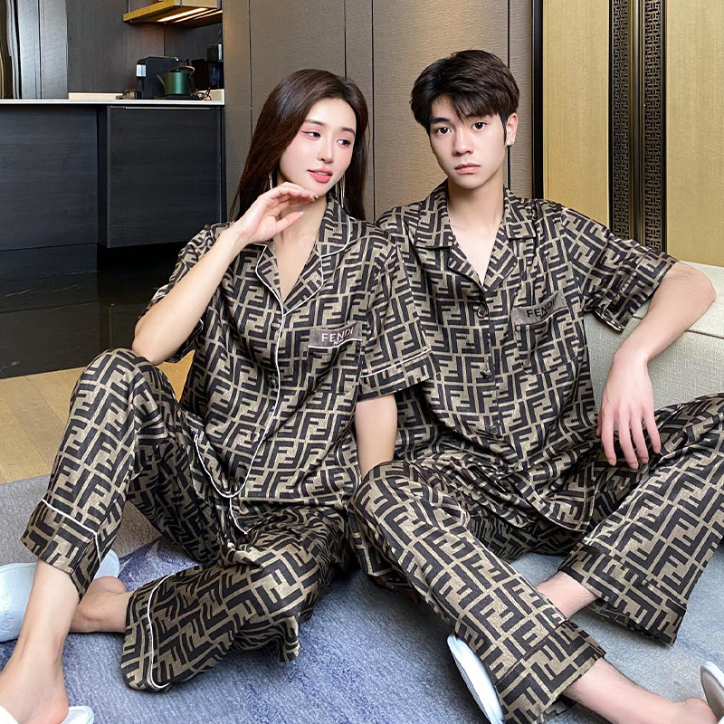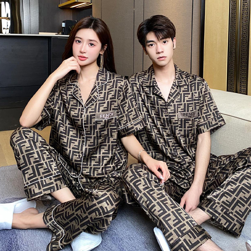 아이스 실크 잠옷 여성용 여름 새로운 실크 반팔 바지 심플 느슨한 캐주얼 고급 가정 의류 봄과 가을스토어 가기