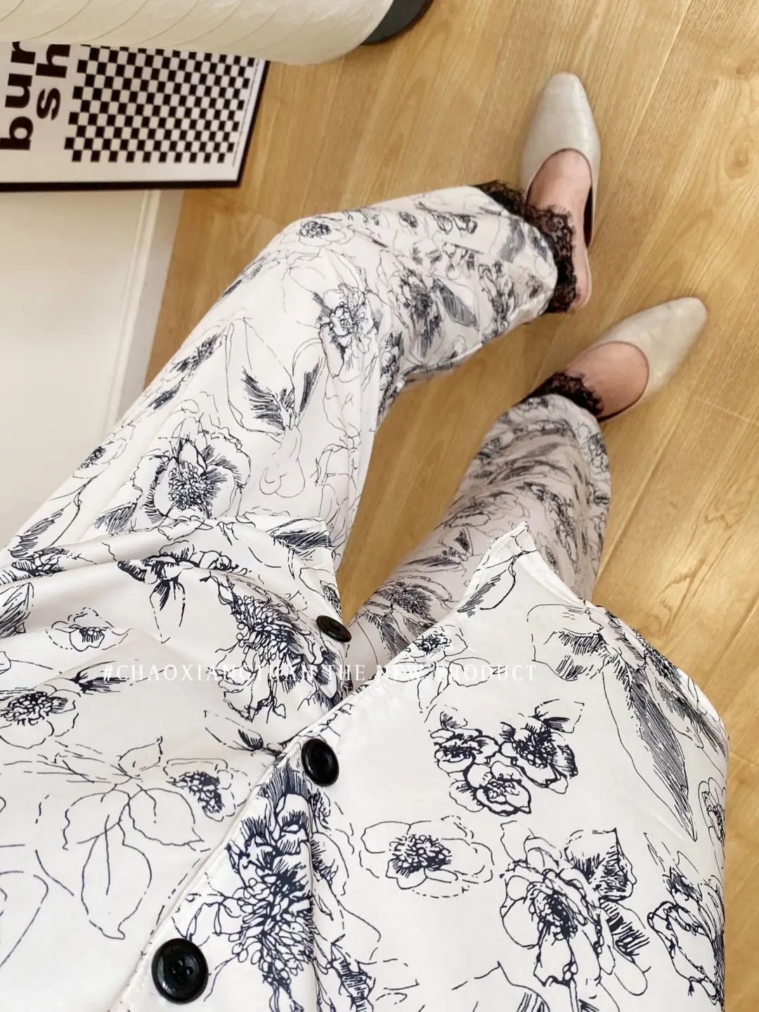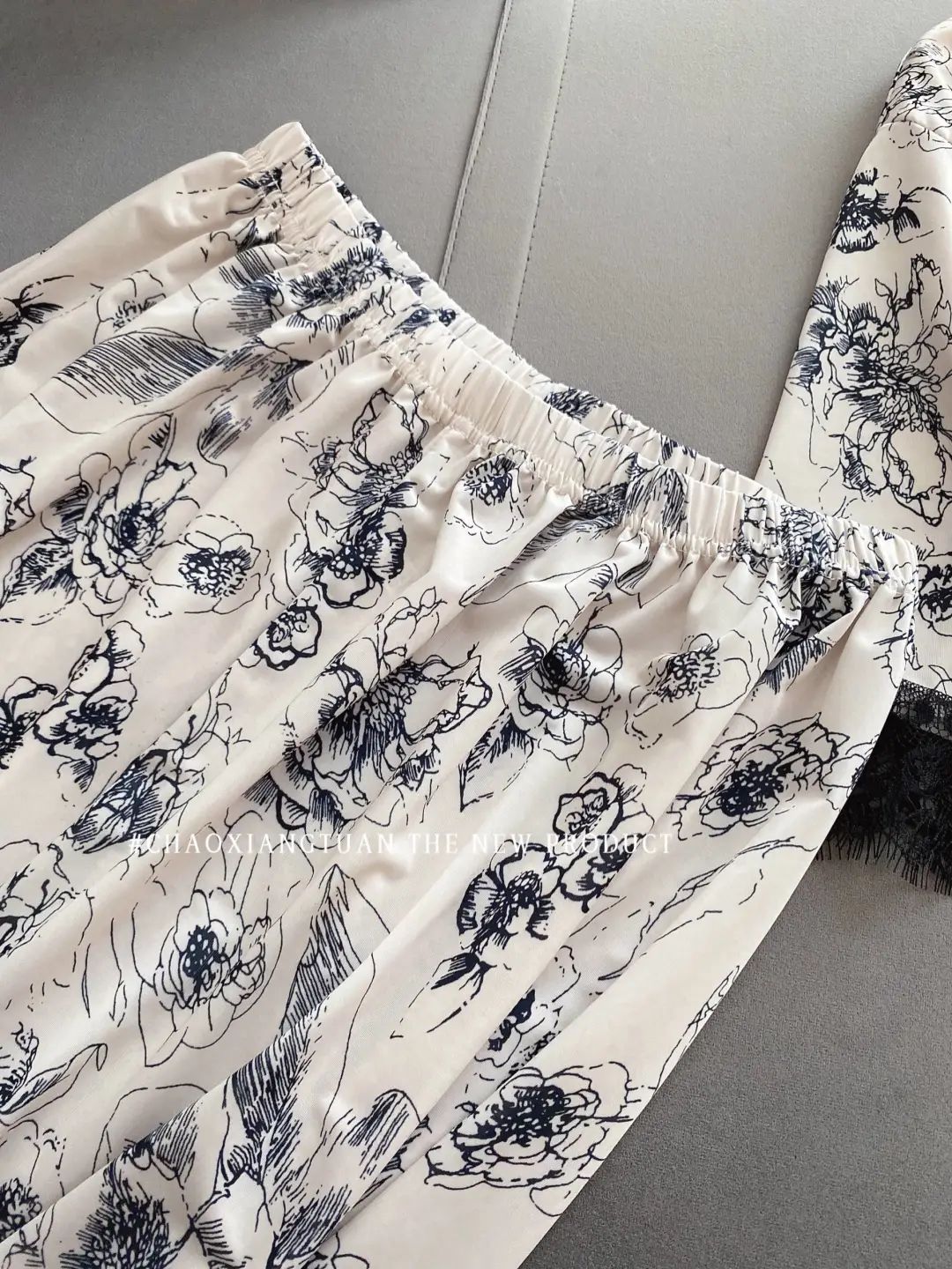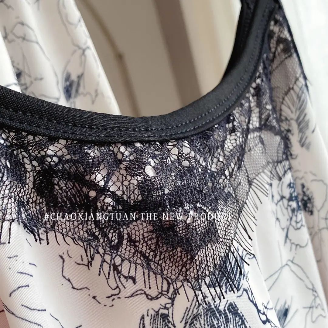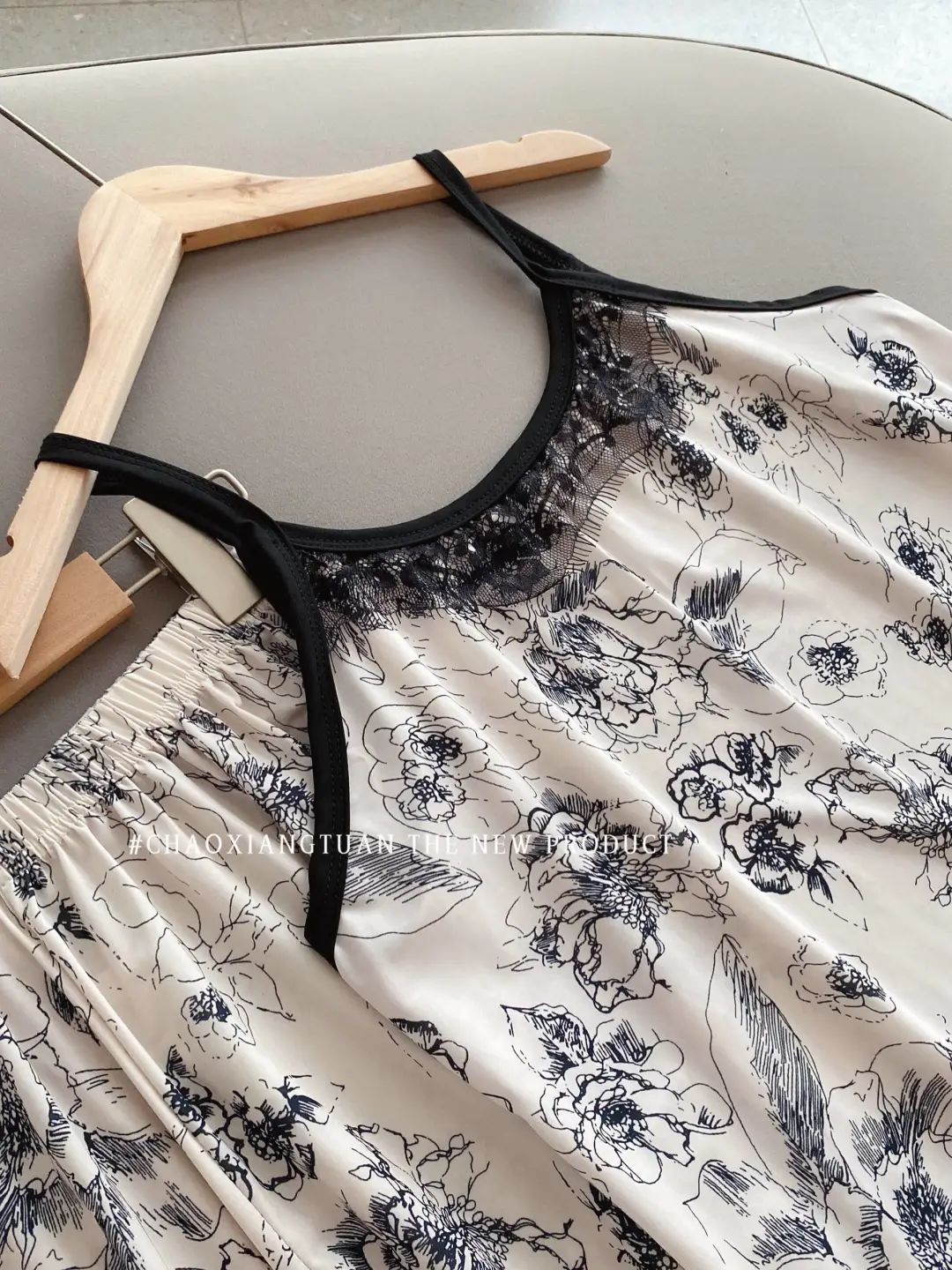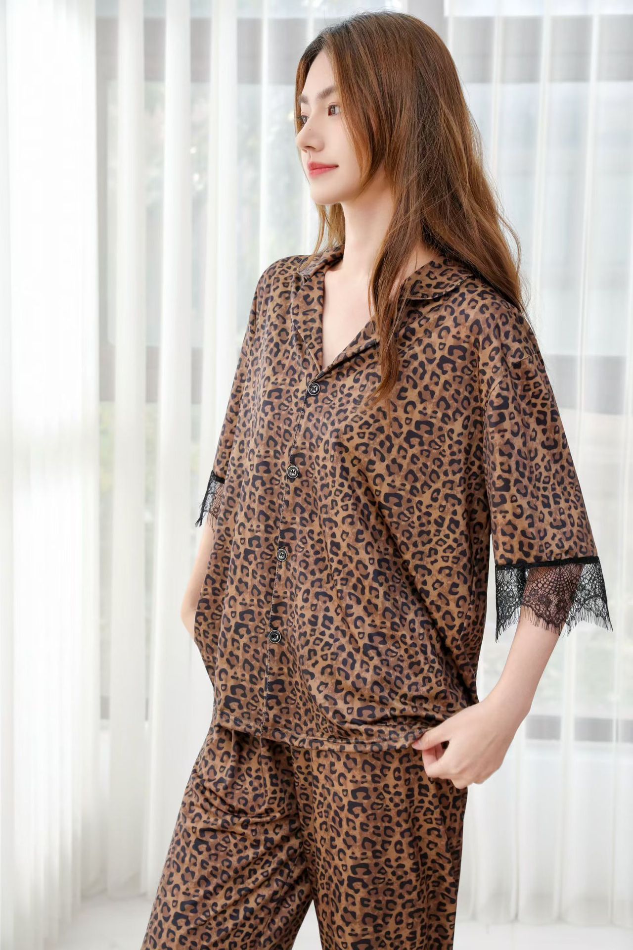 장미꽃 잠옷 4종 세트, 새로운 아이스 실크 수묵화 스타일, 편안하고 루즈하며 외출복으로도 착용 가능한 여성 홈웨어, 여름용스토어 가기