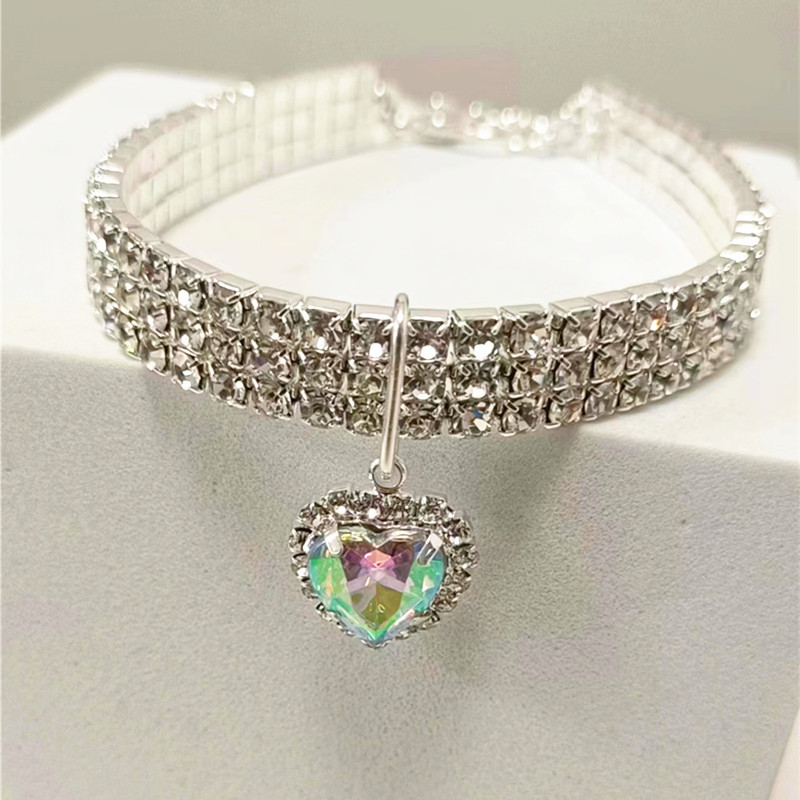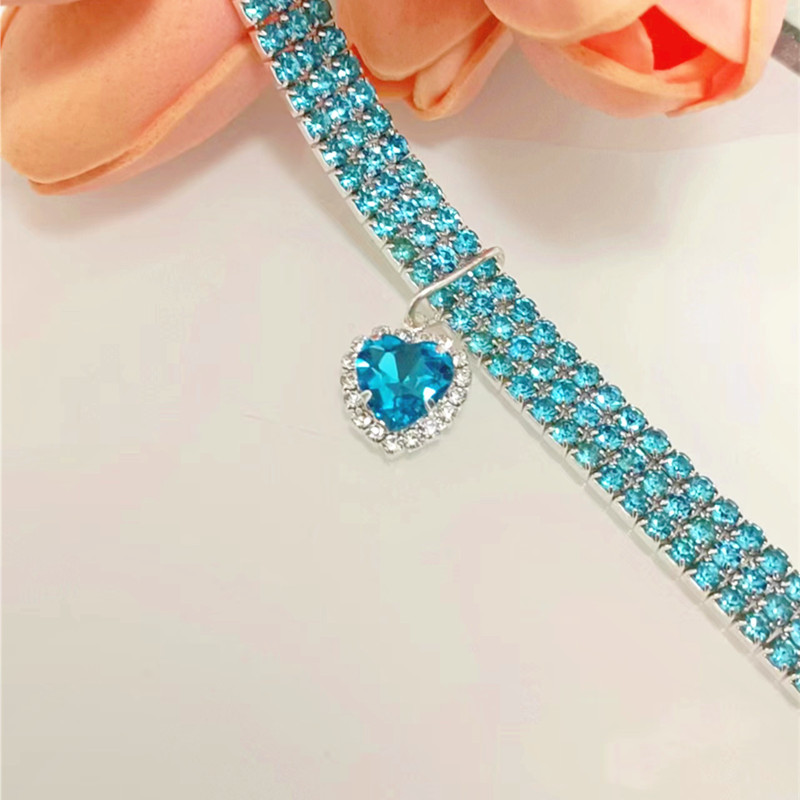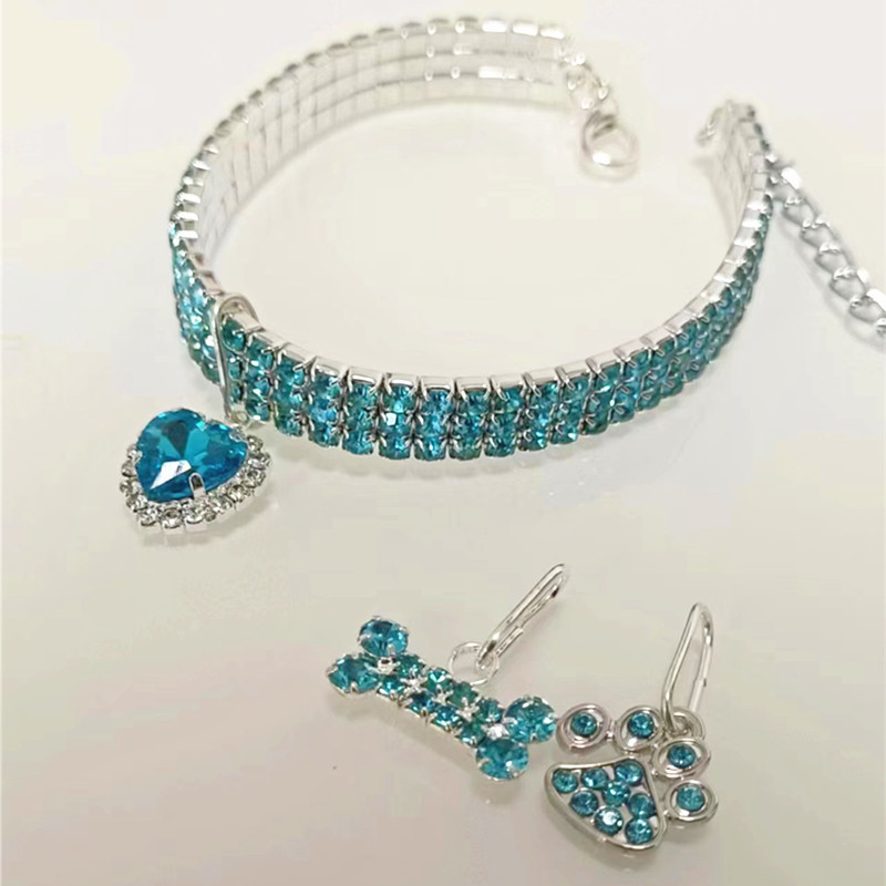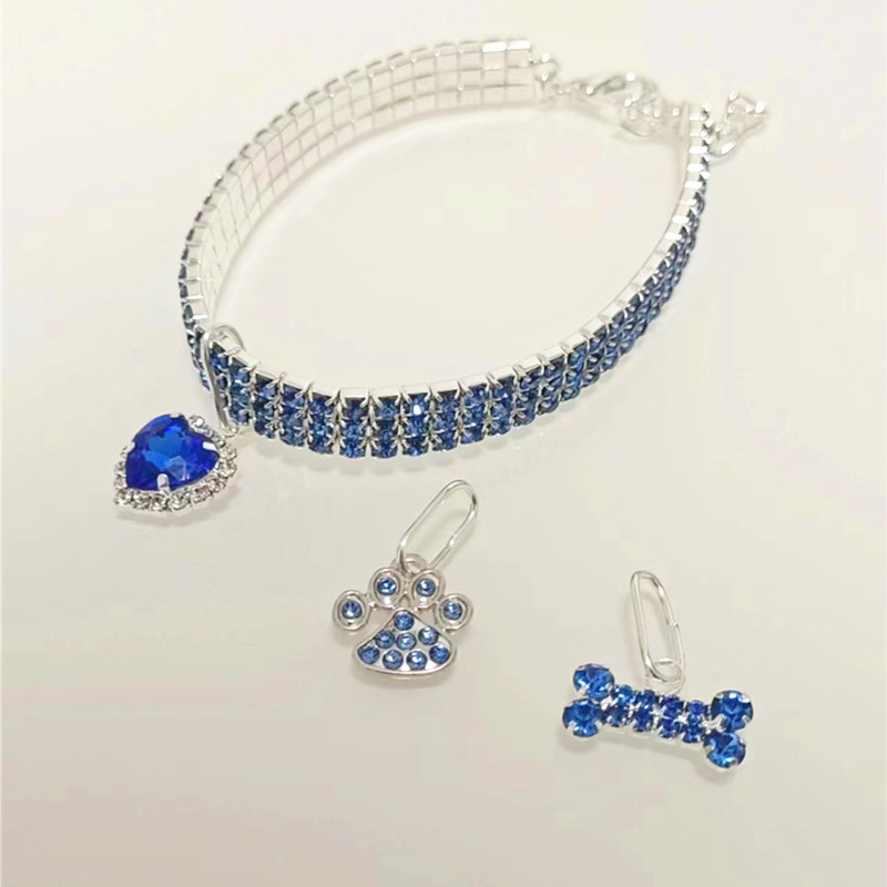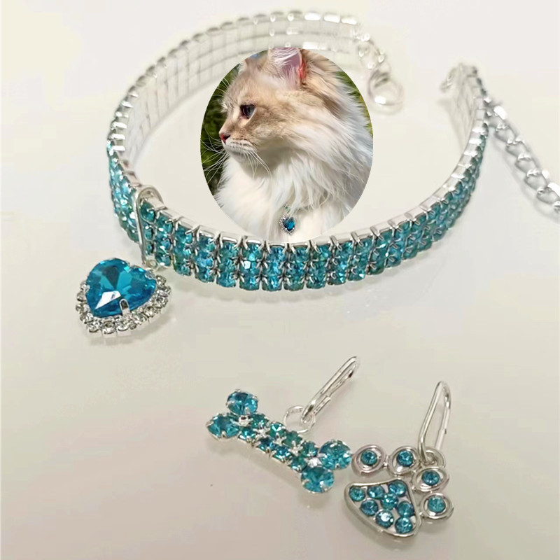 애완 동물 용품 탄성 모조 다이아몬드 고양이 개 목걸이 크리스탈 보석 모조 다이아몬드 칼라 크로스 보더 전자 상거래 3 열 New스토어 가기