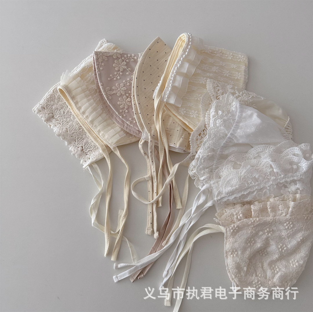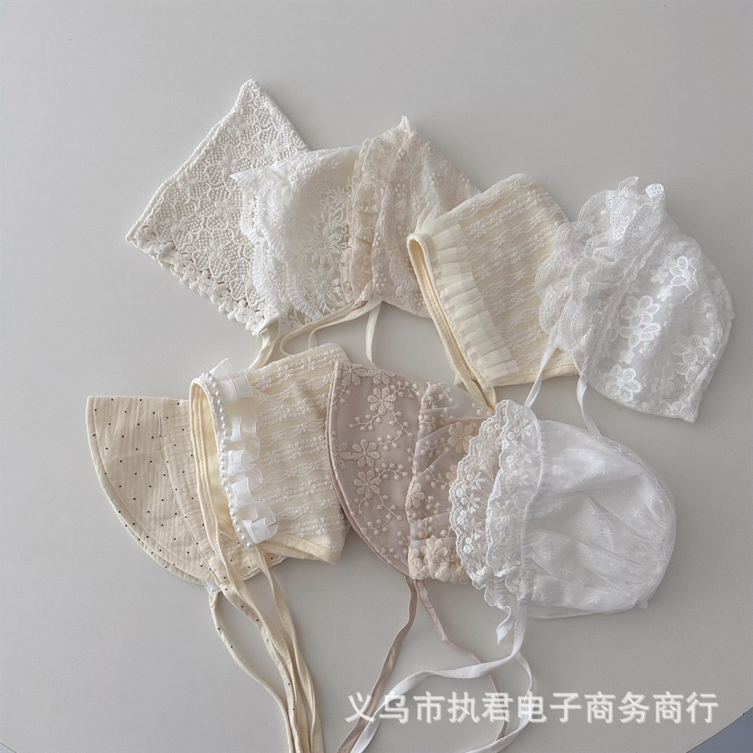 아기의 새로운 레이스 중공 통기성 풀오버 캡 아기의 서양식 레이스업 방풍 와이드 챙 0 ~ 6 개월 태아 모자스토어 가기
