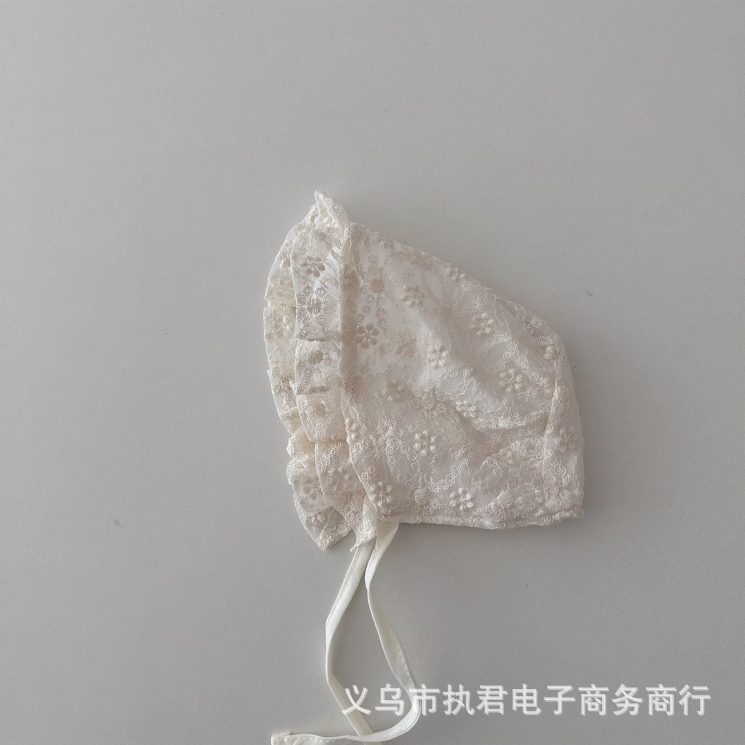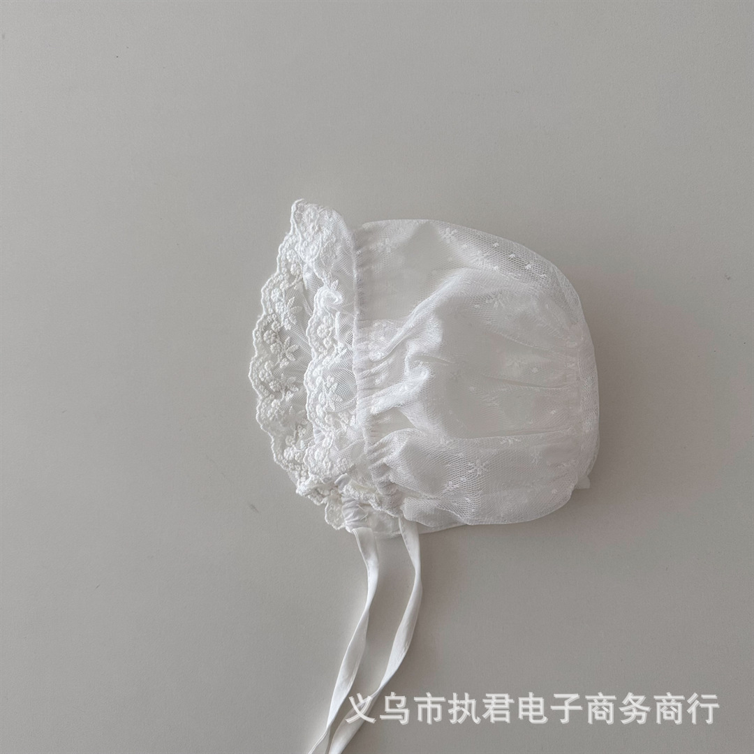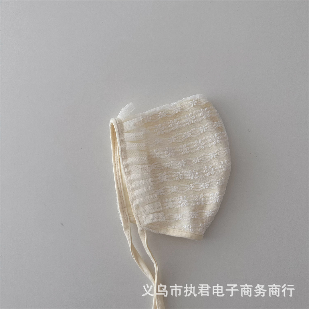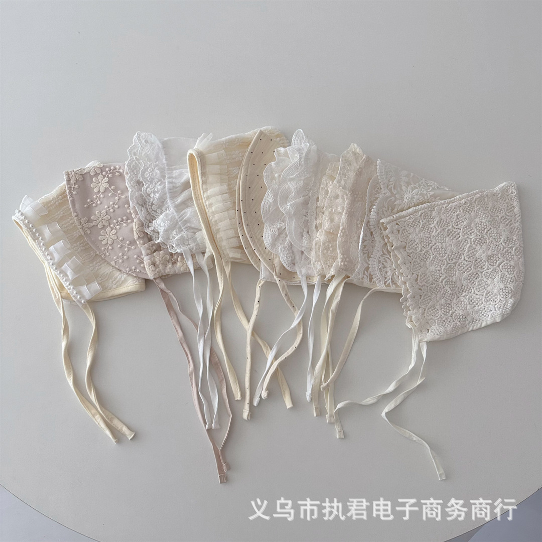 아기의 새로운 레이스 중공 통기성 풀오버 캡 아기의 서양식 레이스업 방풍 와이드 챙 0 ~ 6 개월 태아 모자
